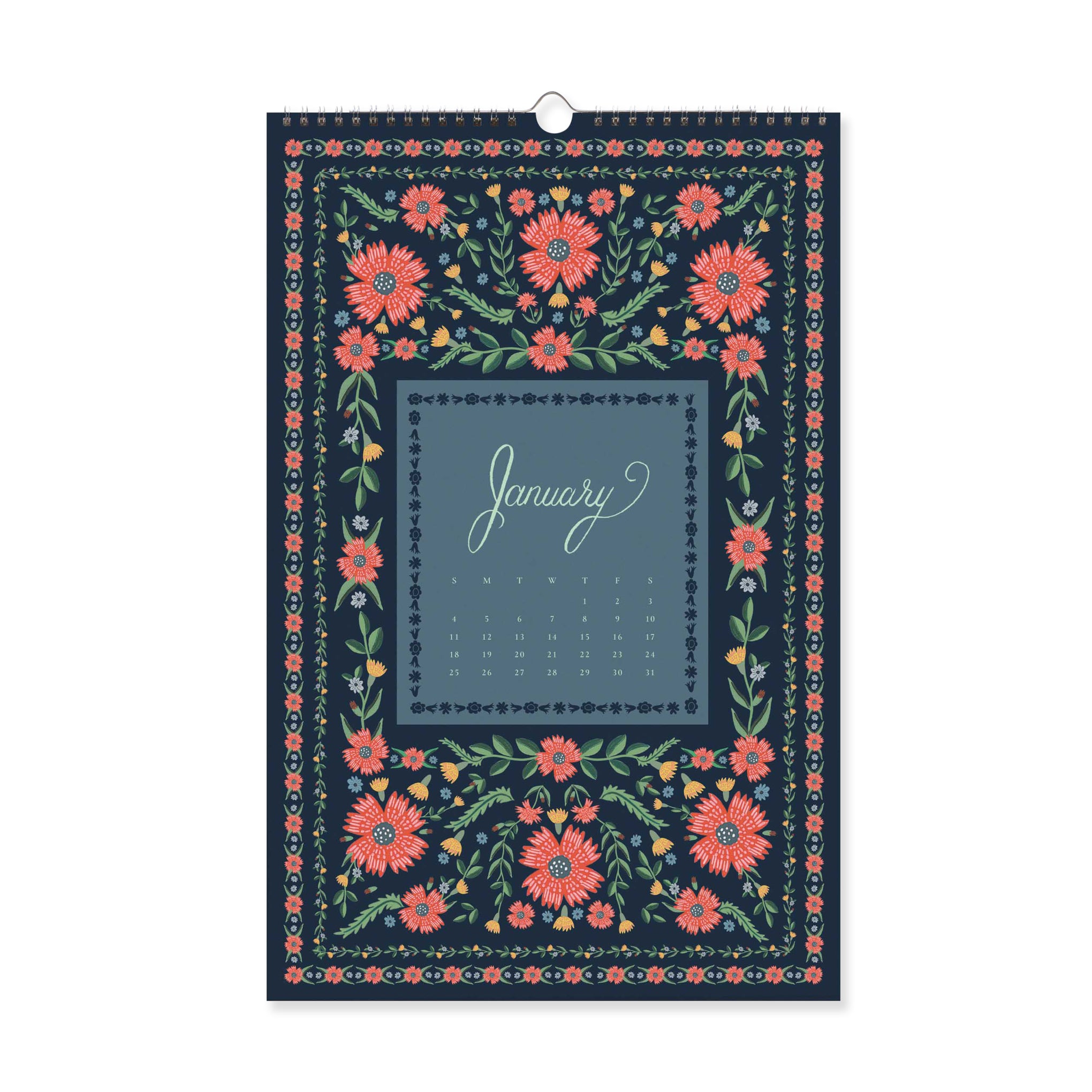 This spiral bound monthly wall calendar features 12 illustrations of flowers. Made in the USA.