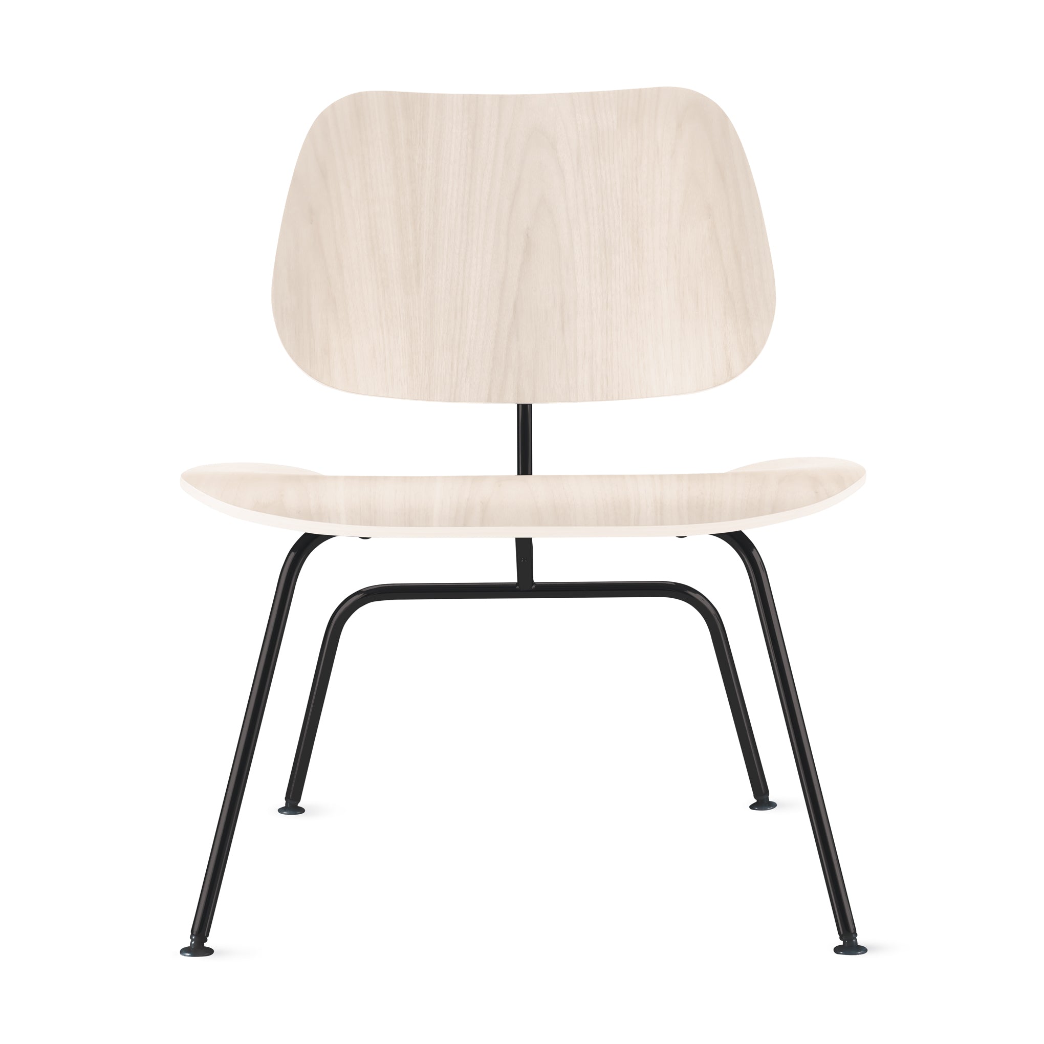 Conceived in 1946 by the husband-and-wife design team of Charles and Ray Eames. the LCM (lounge chair metal) is an icon of mid-century modern design and represented in MoMA’s collection. The Eames® Molded Plywood Lounge Chair (LCM) is composed of a molded-plywood seat and back that sit on a powder-coated black steel frame. with neoprene shock mounts in between. The separate back and seat provide visual interest—and they also initially simplified production in the early days of the chair. Set low to the ground. the LCM has a seat that is tilted back slightly. cradling the body and making it an excellent and comfortable chair for lounging. The Eames® Molded Plywood Lounge Chair (LCM) is made in the USA by Herman Miller®. a manufacturer represented in MoMA’s collection. and it measures 26.5h X 22w x 24d.