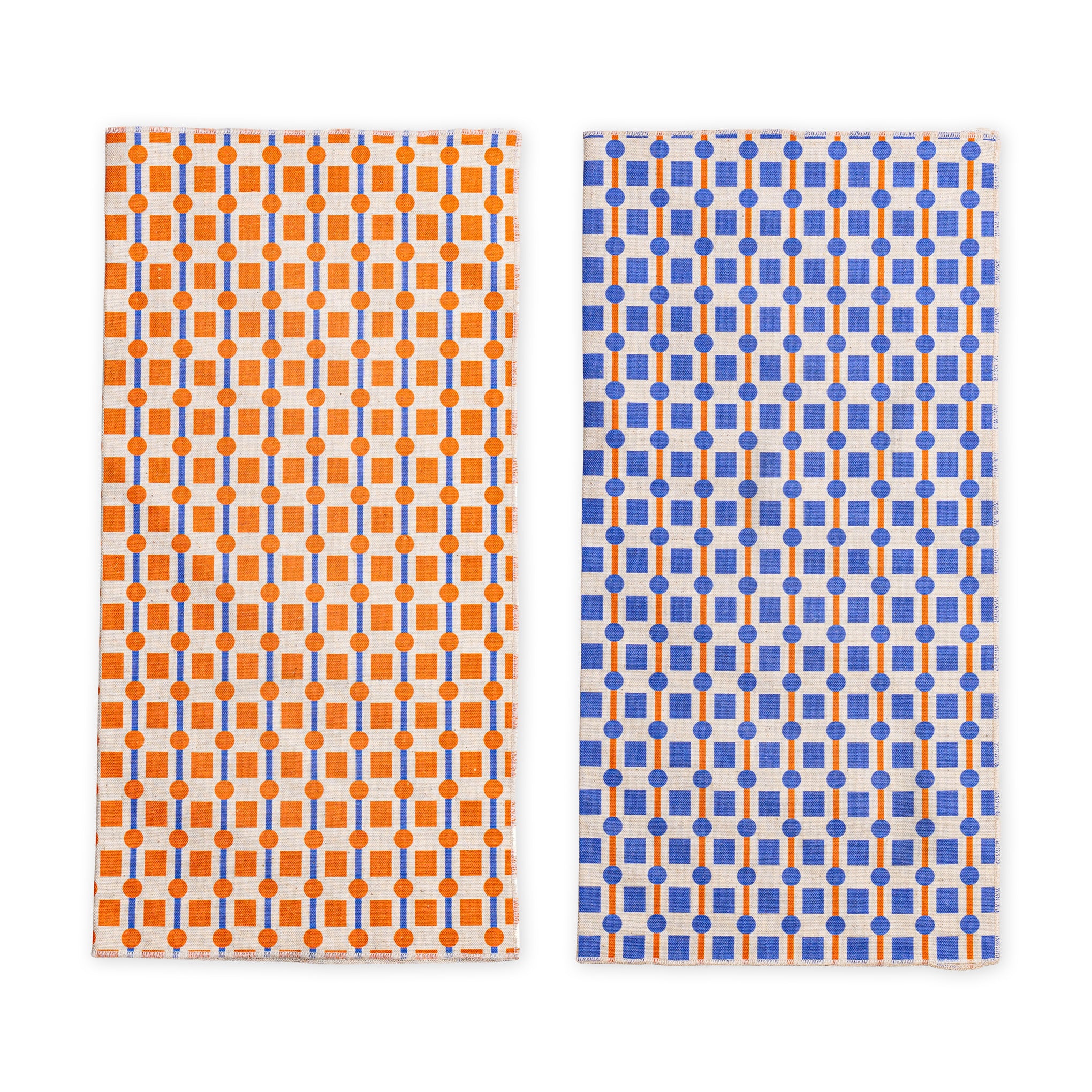 Geometric Cotton & Linen Napkins – Set of 2 – Orange/ Blue