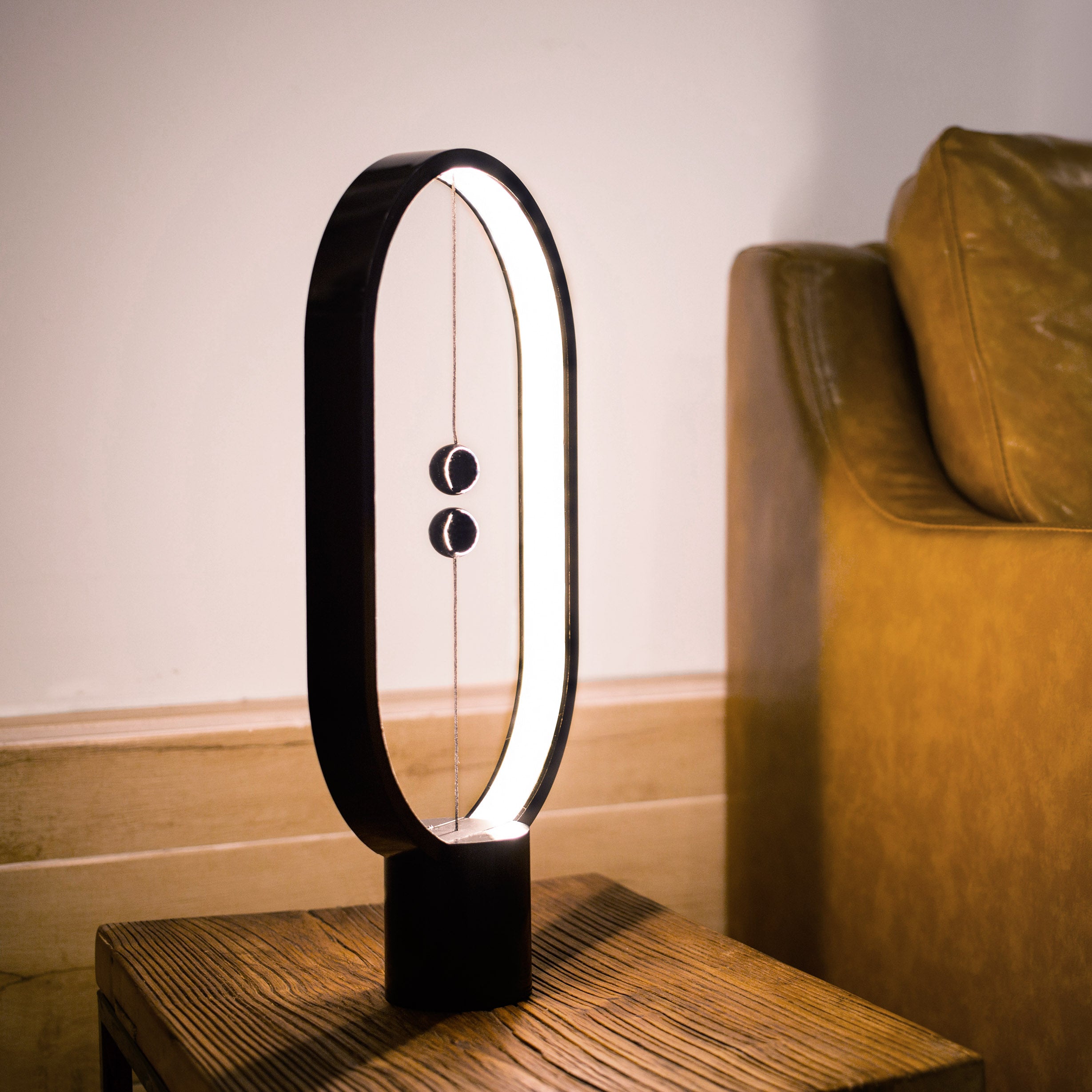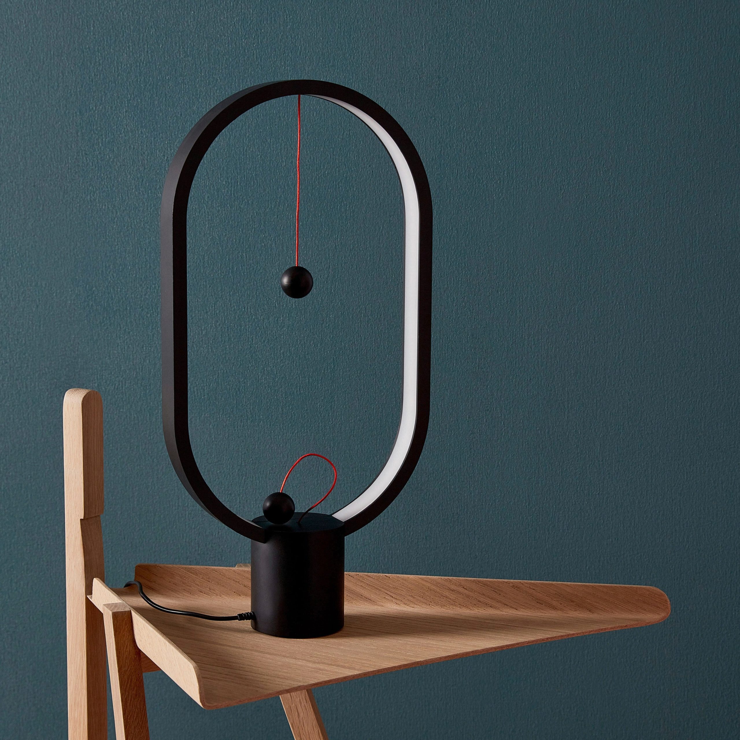 Within the frame of the pleasingly minimalist Heng Lamp is a surprising way to illuminate it. The lamp is lit by connecting the balls containing embedded magnets. Separating them turns off the light. The sleek design creates the illusion of light passing through the curved frame. Let the Large Heng live as an art piece in a favorite area of your space. Move the Mini around your home wherever you need light. Both the Large and Mini are powered by USB plug-in which can also be used with a wall-socket adapter (not included).
