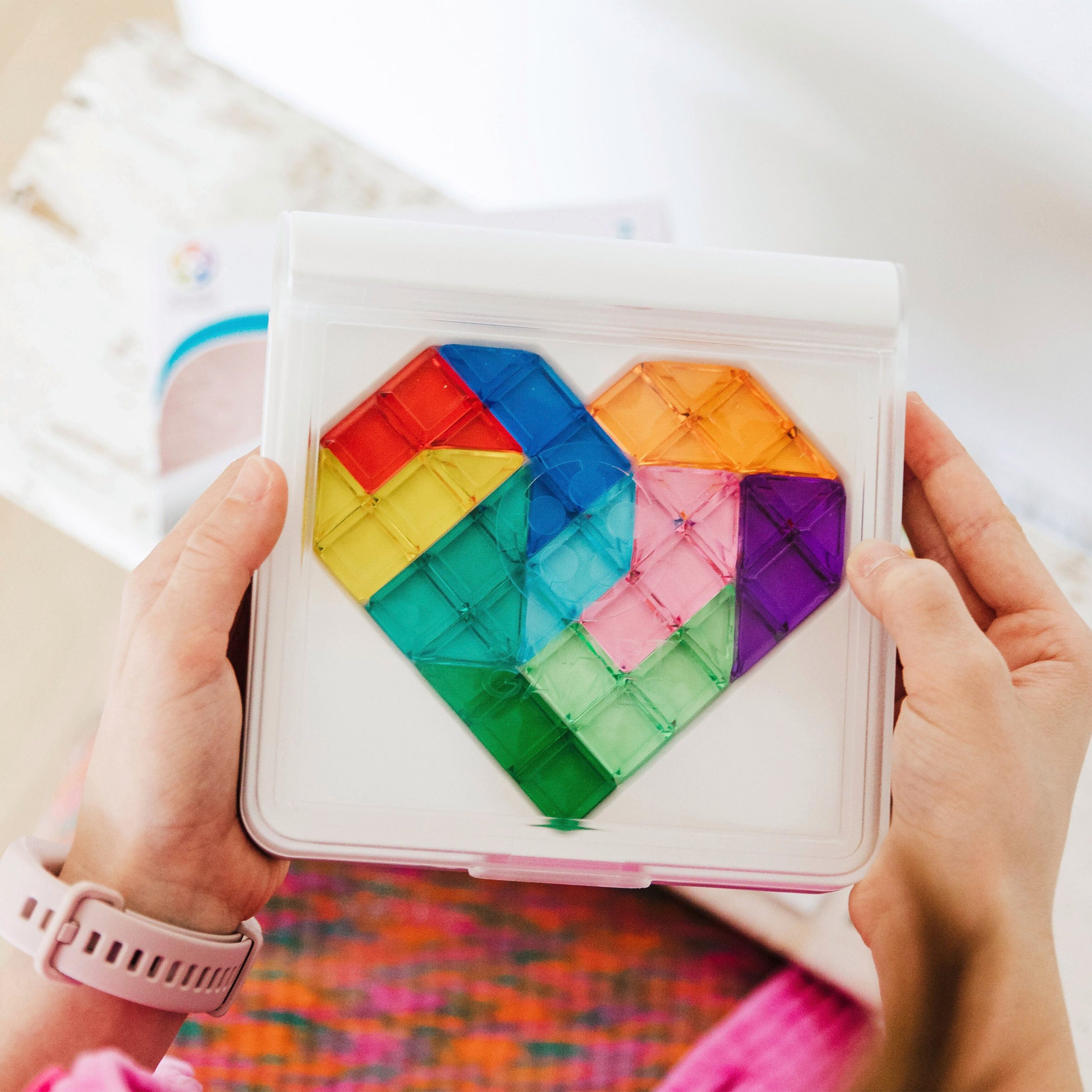 Show your brain some love with these colorful gemstones. Can you fit all the pieces on the heart-shaped game board? This travel-friendly puzzle game offers a great alternative to screen-based gemstone games. and comes with a double-sided game board and 120 challenges. The Smart Games IQ Love Puzzle measures 1.1h x 5.65w x 5.7d. Ages 7+.