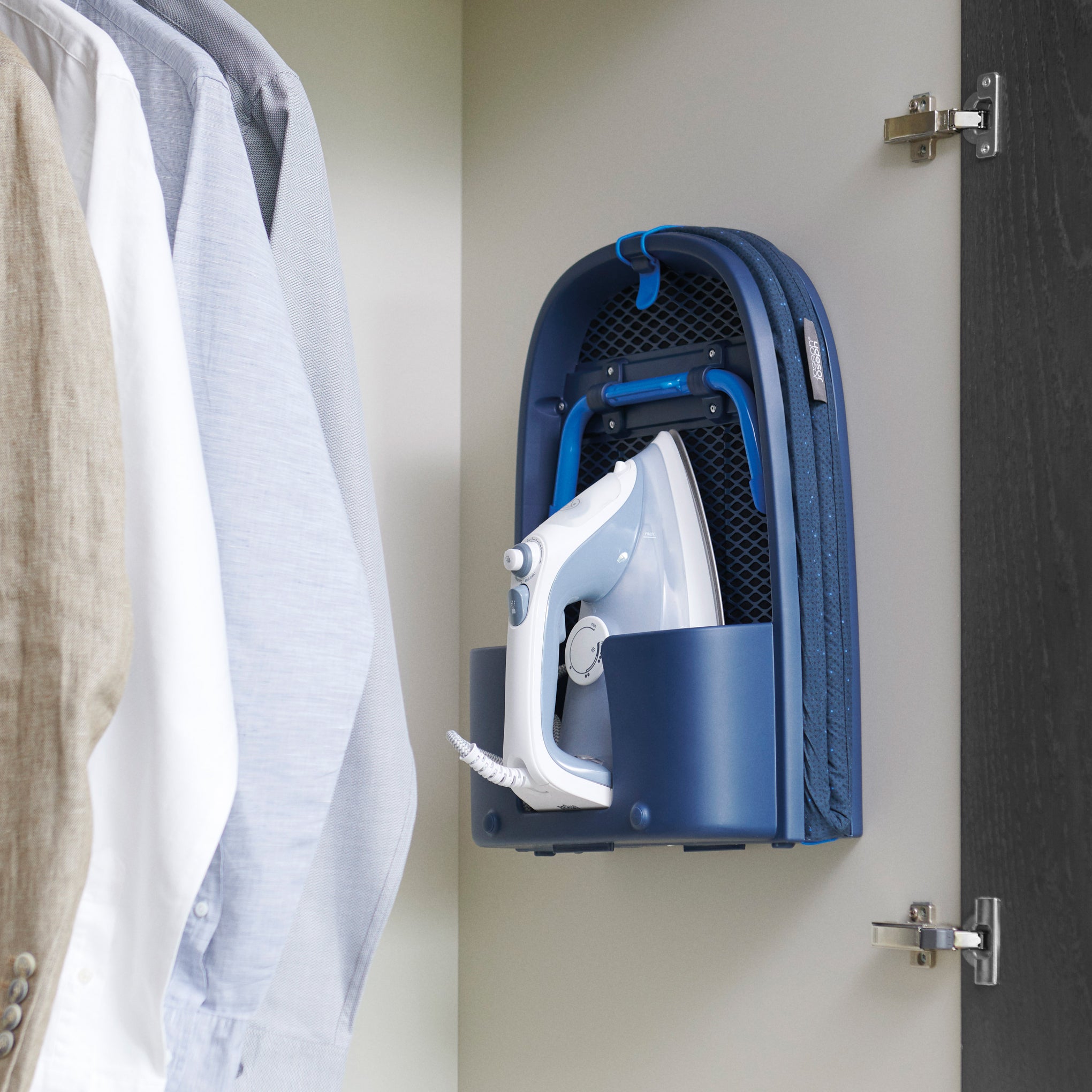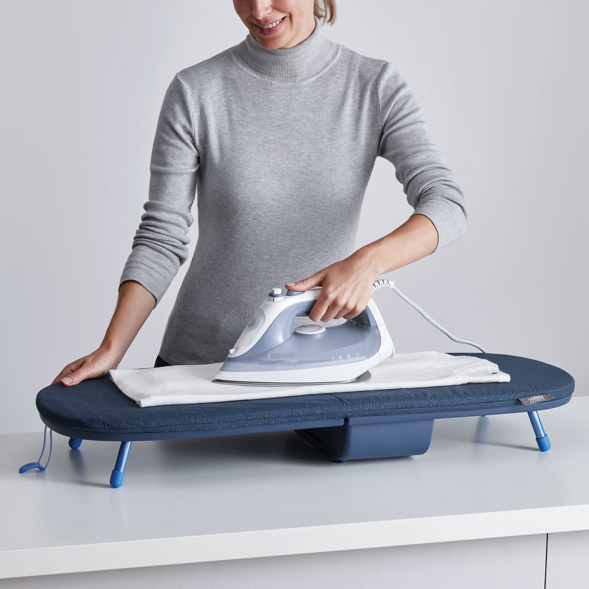 The Pocket Plus Folding Ironing Board is a game-changer in the world of ironing—no more unfolding a full-sized ironing board. looking for a place to store it. or giving up and just relying on a steamer. This innovative. table-top ironing board designed for function and easy storage has been updated with a waterproof layer of fabric that protects the board’s cushioning from steam and moisture. When not in use. simply fold the board in half and tuck it away where you please. The Pocket Folding Ironing Board also features an integrated storage compartment specifically designed to hold your iron. eliminating the need for additional storage space. and has a hanging hook that can be mounted on a wall or door. The board comes with an easy-change. perfect-fit cover made from a 100% cotton top-layer and a thick padded felt underlay to create a flawlessly smooth ironing experience. The Pocket Folding Ironing Board measures 18h x 13.5w x 6.25d. closed. and the ironing surface measures 4.5l x 13w. Iron not included.