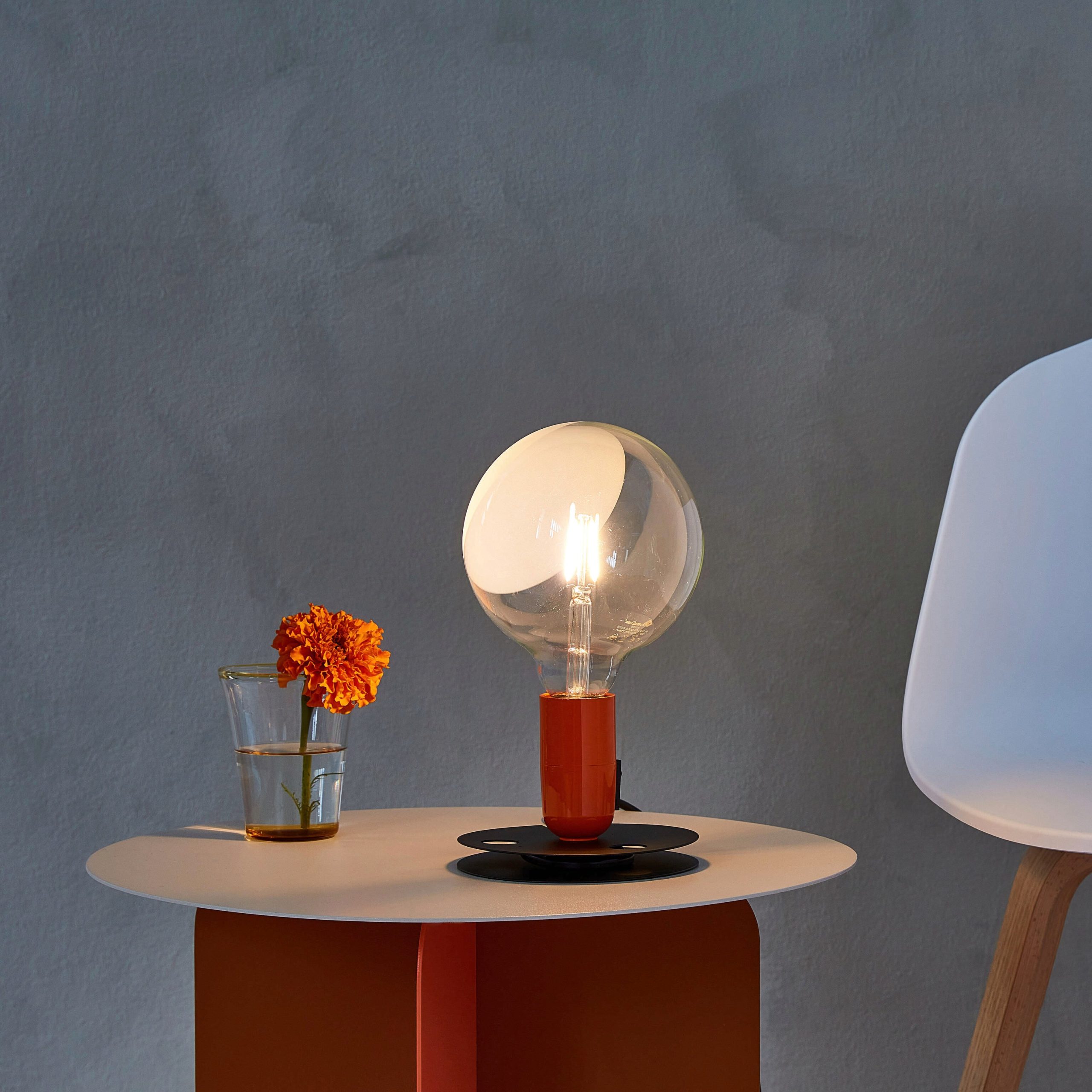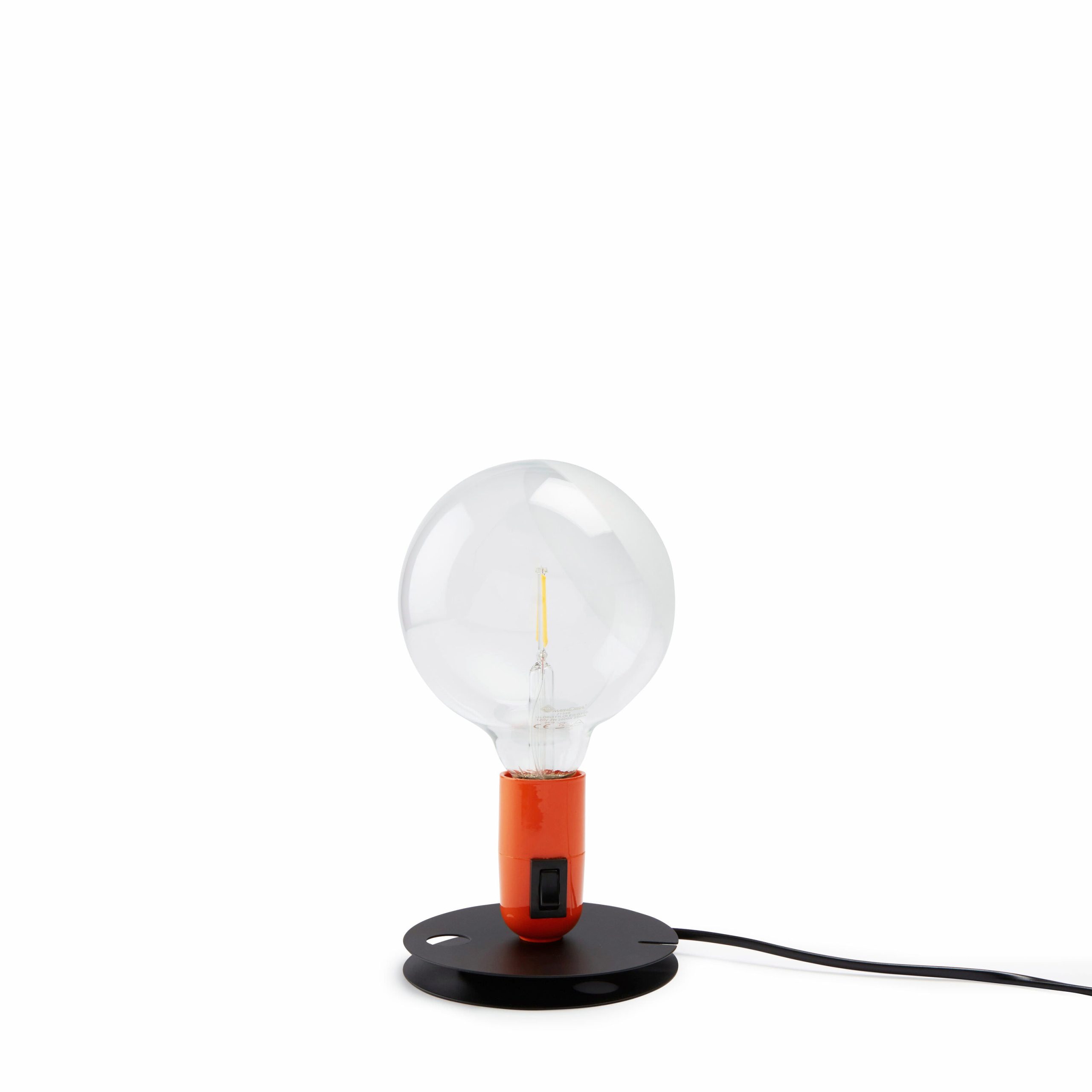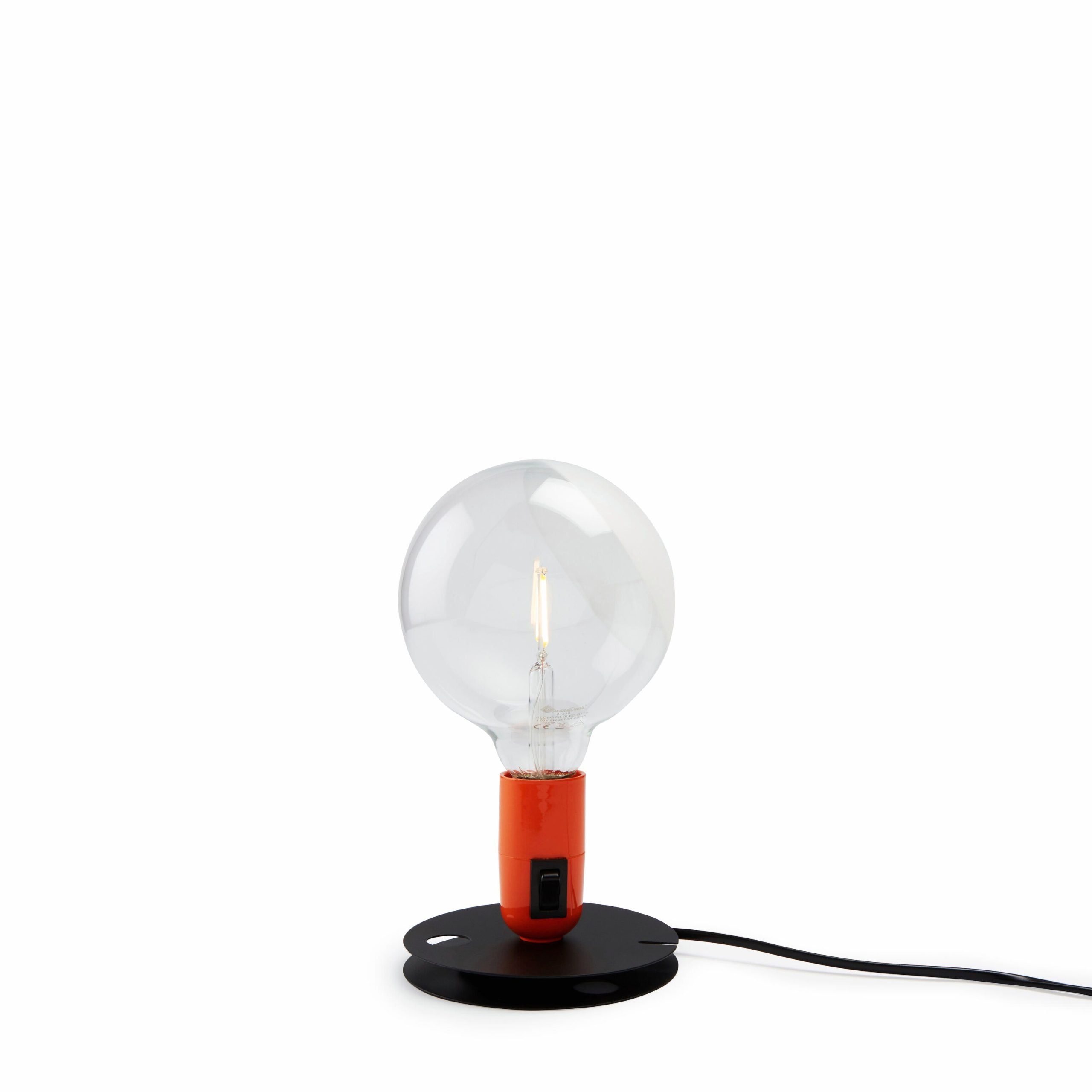 Designed by Achille Castiglioni in 1972 and an object in MoMA’s collection. the Lampadina Table Lamp combines a bulb that has a science-lab feel with a stand that evokes a film reel. In Italian. lampadina literally means light bulb and for this design. Castiglioni played with the concept of light through a decidedly meta recreation of a light bulb. The Lampadina’s clear bulb provides direct lighting. although a portion of it has been sandblasted to create a frosted circle that casts a more diffused light. The anodized aluminum base contains the excess power cord and the lamp is powered by a standard plug-in. Achille Castiglioni has work in MoMA’s collection. The Lampadina Table Lamp measures 9.4h x 4.9diam. with a 90 black cord. Bulb included. Made in Italy.