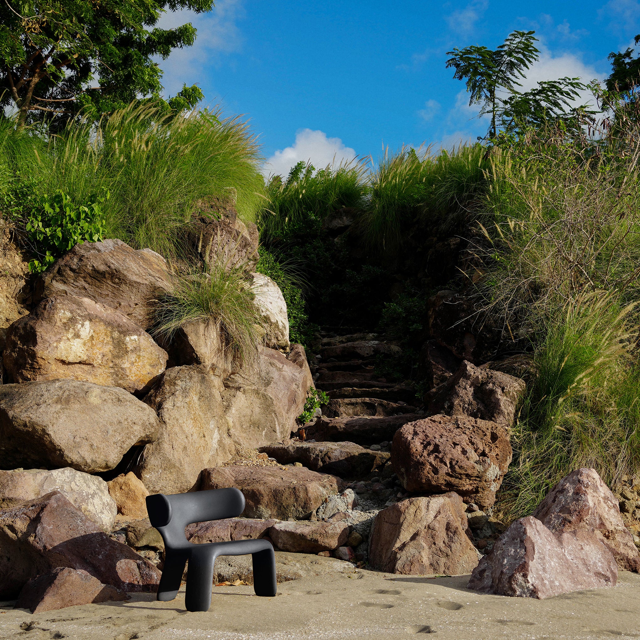 At once an eye-catching art piece and an everyday object. the Limbo Lounge Chair was conceived by Icelandic designer Hlynur Atlason. With its swooping. sculptural form. the Limbo holds your body in a comfortable position. Made in the state of Wisconsin from 25% recycled post-consumer polyethylene. the Limbo is also fully recyclable. The chair can be used indoors and outdoors and is sustainably produced. The Limbo Lounge Chair measures 27.5h x 30w x 28d with a 16.75 seat height. The chair is produced by Heller. a manufacturer with work in MoMA’s collection.