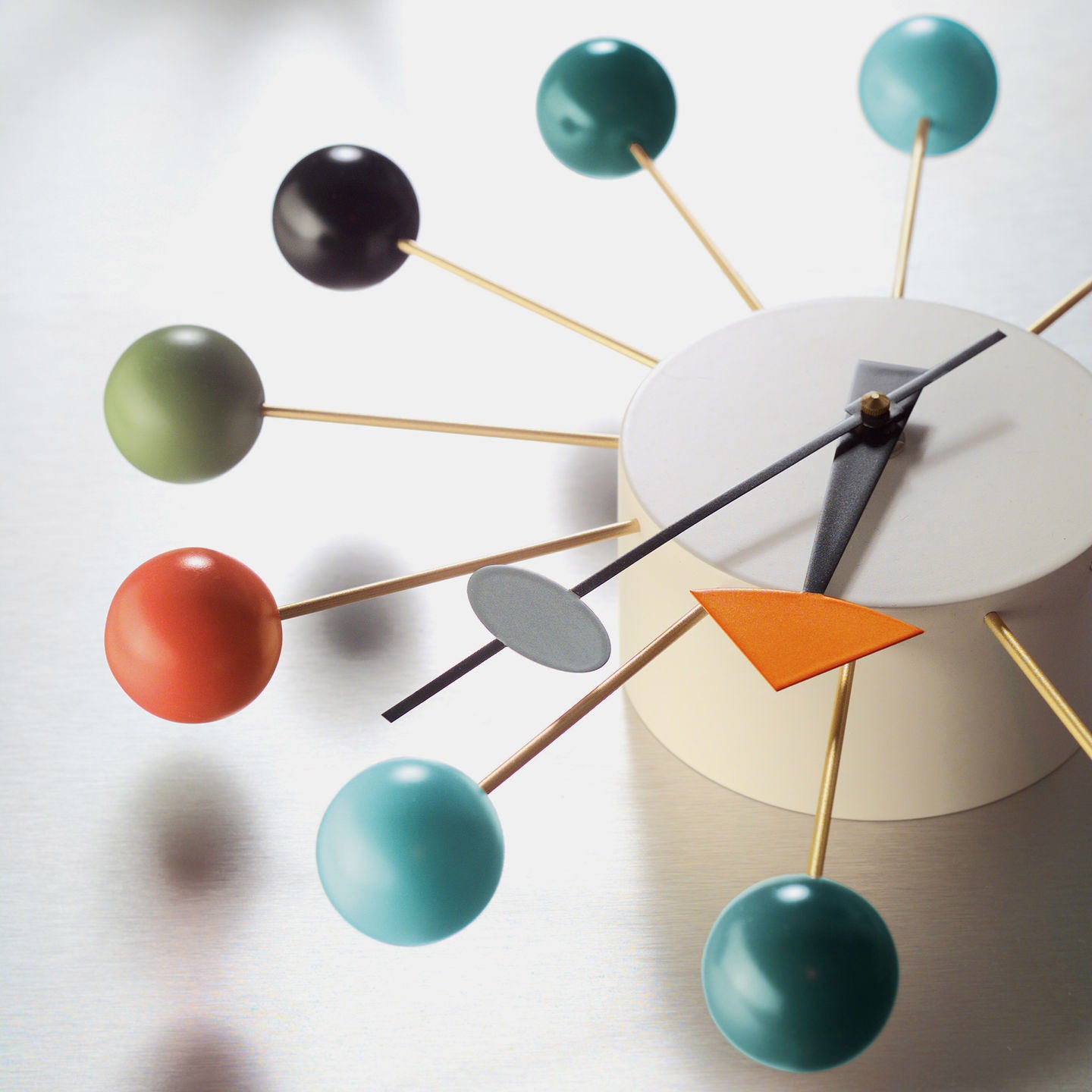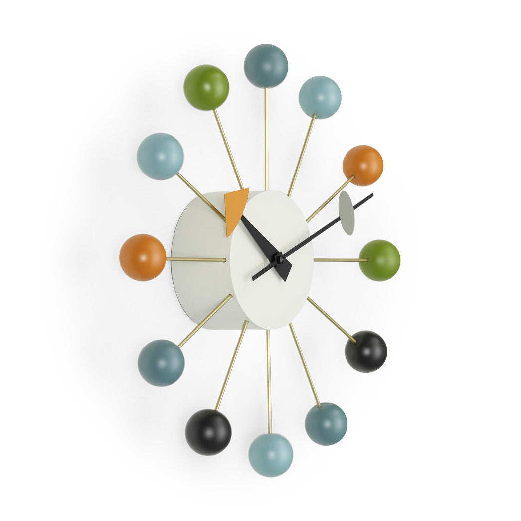 This clock symbolizes what defined George Nelson. whose work is featured in the Museum’s collection. as one of the 20th century’s signature designers: a joyous. often irreverent exploration of form and inspired simplicity. The Multicolor Ball Wall Clock is an exact replica of the original design. which was designed in 1948. It is made of wood and metal. and has been updated with a quartz movement. Produced by Vitra. One AA battery is included.