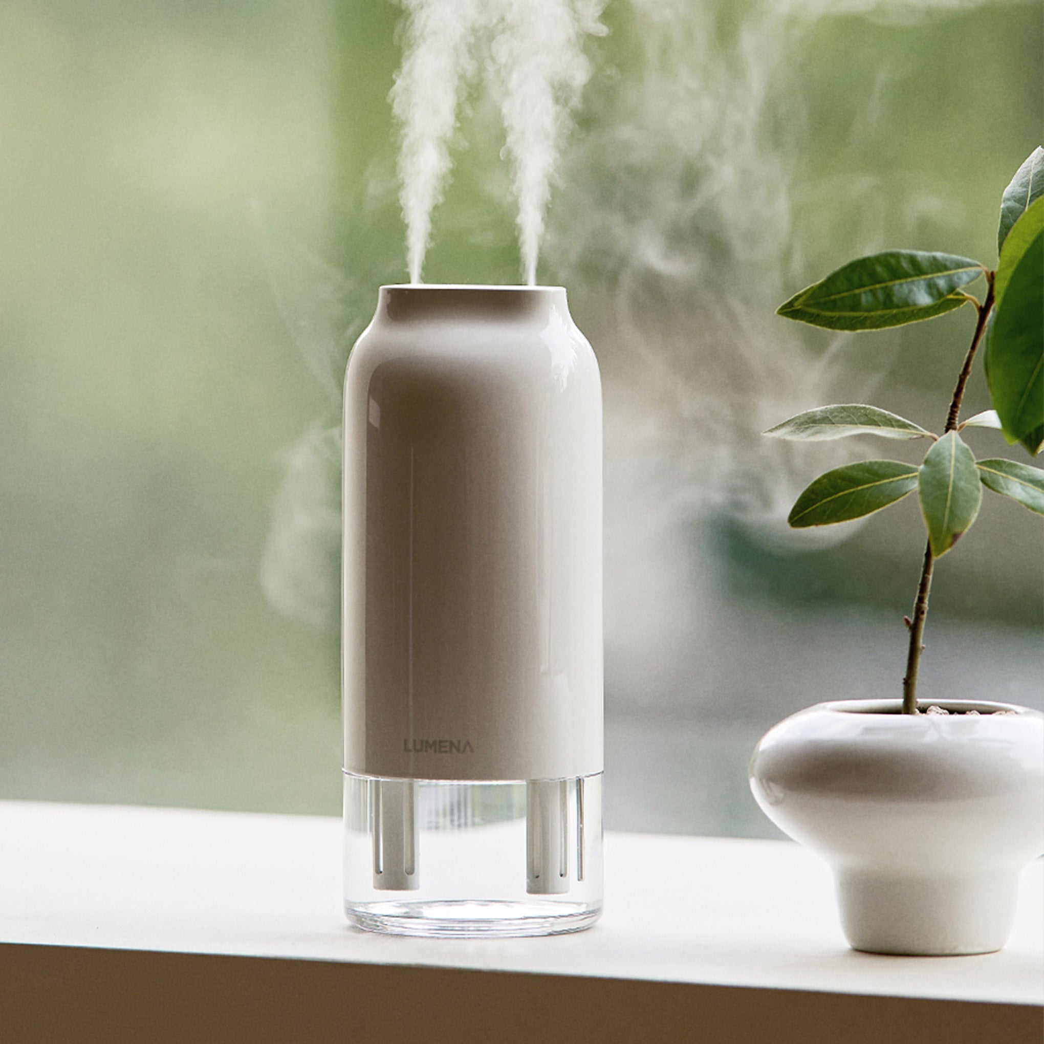 The compact Portable Humidifier H3X from Lumena makes traveling easier in dry climates. The double-hole design and updated tech use the 700ml reservoir to create a fine water mist that hydrates your environment and helps moisturize your skin. and its cylindrical shape tucks easily into your carry-on or hand luggage. Inspired by Chosun white porcelain. this humidifier boasts a glossy. durable glaze that repels liquids and enhances its elegant curves. It includes an independent LED mood lamp activated by a back button. with the power button adjusting humidification levels. A water level sensor ensures safety by automatically shutting off power when water levels are low. extending battery life. Set the HX3 to work while you’re away to help your hotel room reach the specified humidity level by the time you return.