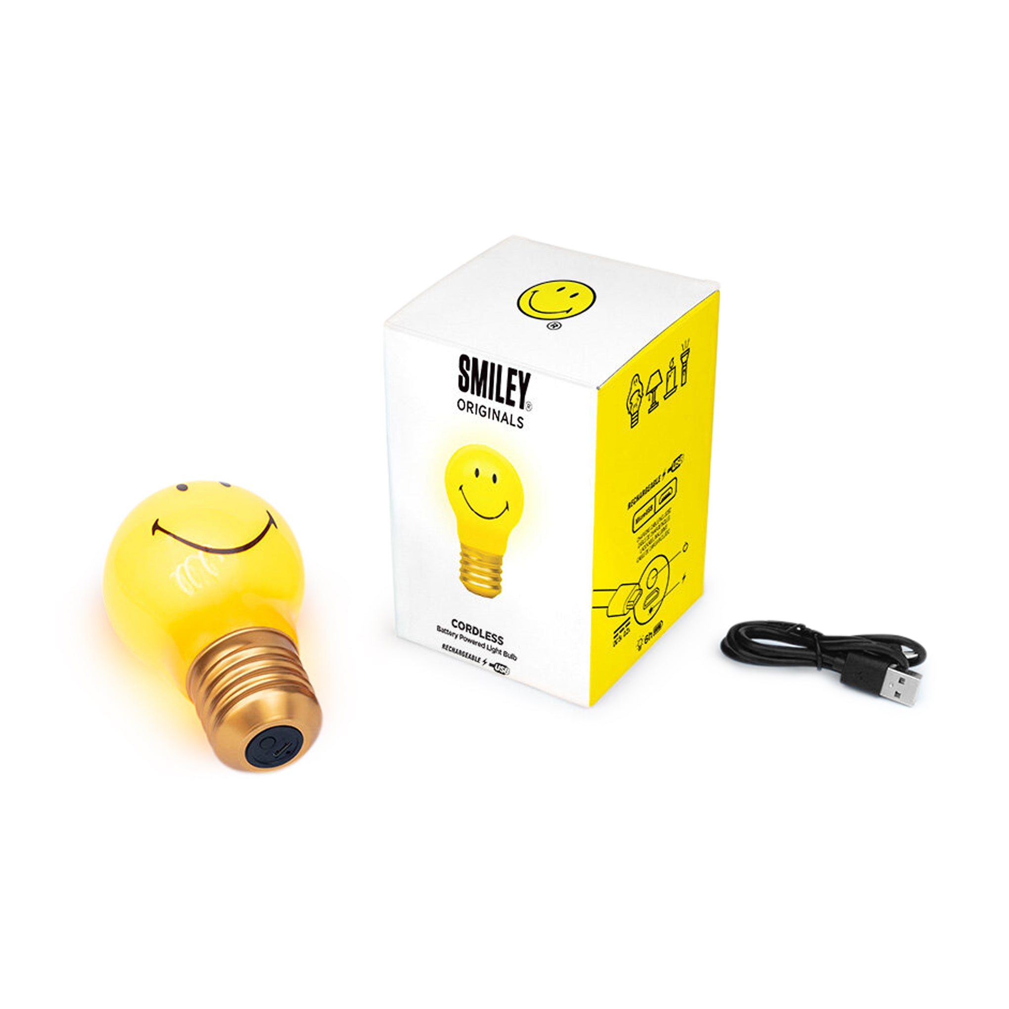 The Rechargeable Bulb Light features colored filament within a clear bulb. Powered by a USB-rechargeable battery (cord included) that delivers 5 hours of light after about 90 minutes of charging time. the bulb can be held safely in your hands and has a flat bottom so it can stand on a table or desk. It’s also equipped with a realistic base that is nevertheless just a bit too large to be screwed into a standard outlet—thus preventing unsafe use. The Rechargeable Bulb Light measures 4.75h x 2.5 diam.