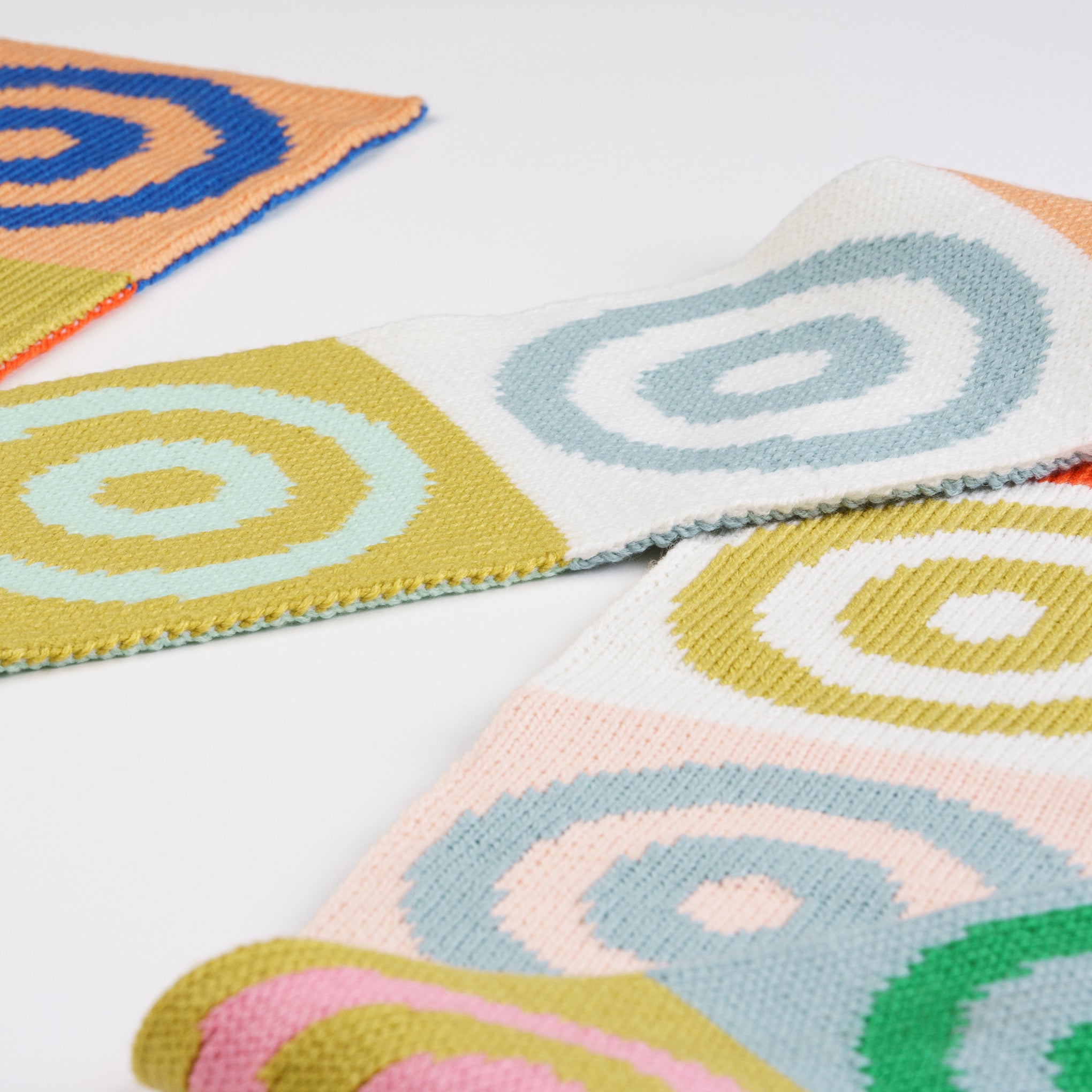 MoMA Exclusive: Made from soft. repurposed deadstock material. the Skinny Rotate Circles Scarf from Verloop (which means process in Dutch) is expertly and sustainably produced at founder Ella Lim’s family-owned factory in the Philippines. This vintage-inspired accessory is jacquard-knit with a patchwork of concentric circle blocks that will brighten up your look and your day. Tie or wrap it in a variety of ways depending on your mood. The Verloop Skinny Rotate Circles Scarf measures 85.5l x 5w.
