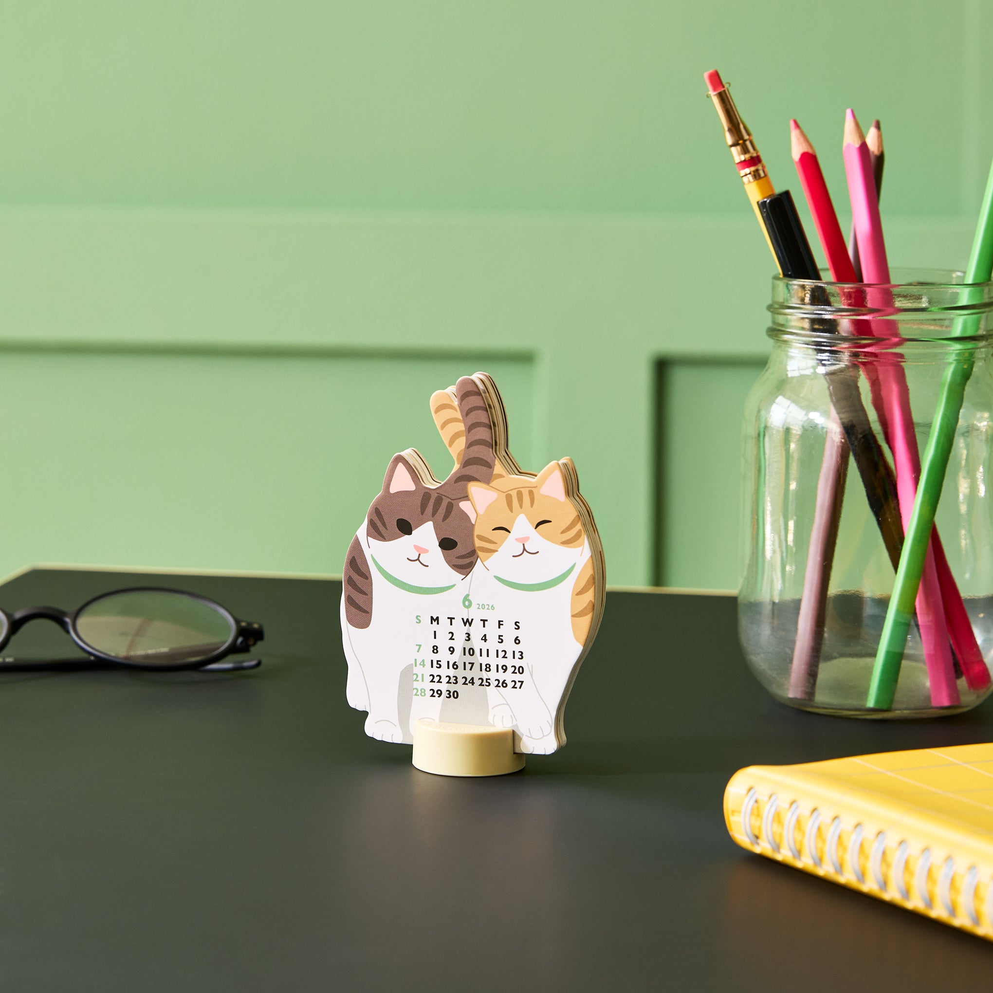 This 2026 3D monthly desk calendar includes 12 charming cat calendars with display stand. Each cat measures 6h x 4w x 2d.