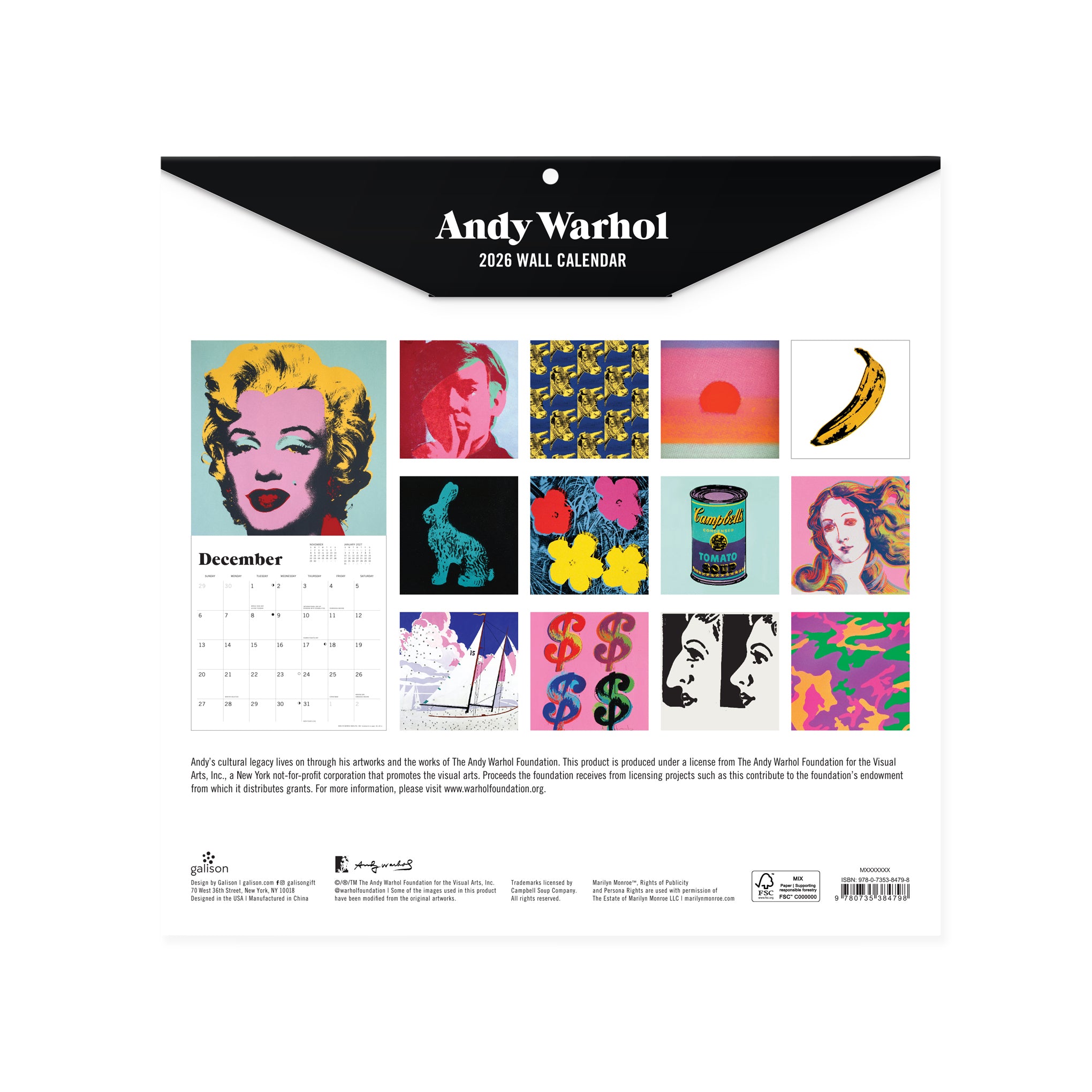 The Andy Warhol 2026 Wall Calendar features an iconic Warhol artwork. Each month of the calendar features a different work by Andy Warhol.