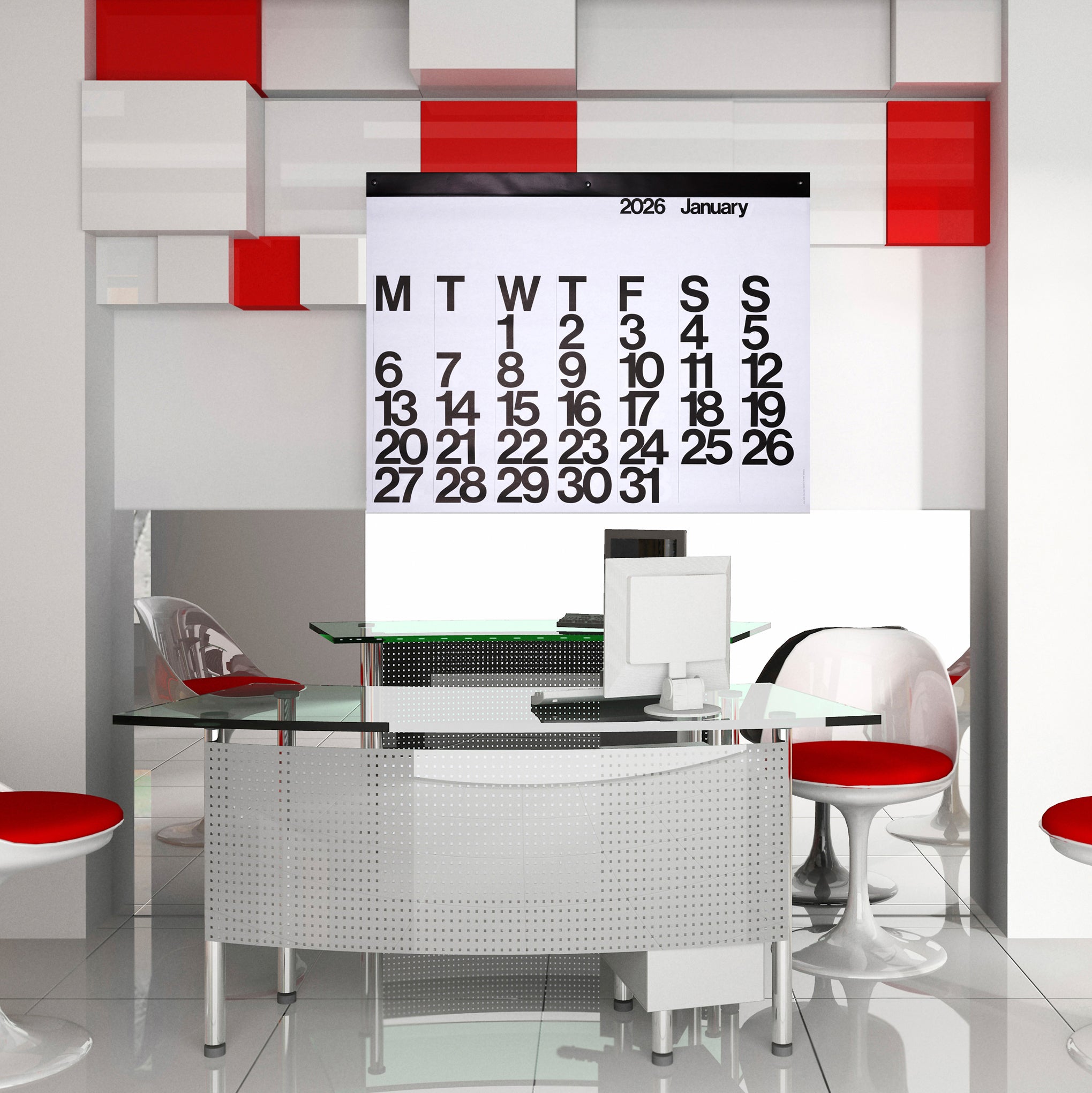 Featured in MoMA’s collection. the Stendig Art Calendar is a bold. oversized date-keeper by Massimo Vignelli that endures as a powerful example of excellence in graphic design. Made in the USA. The 2026 Stendig Art Calendar measures 36h x 48w.