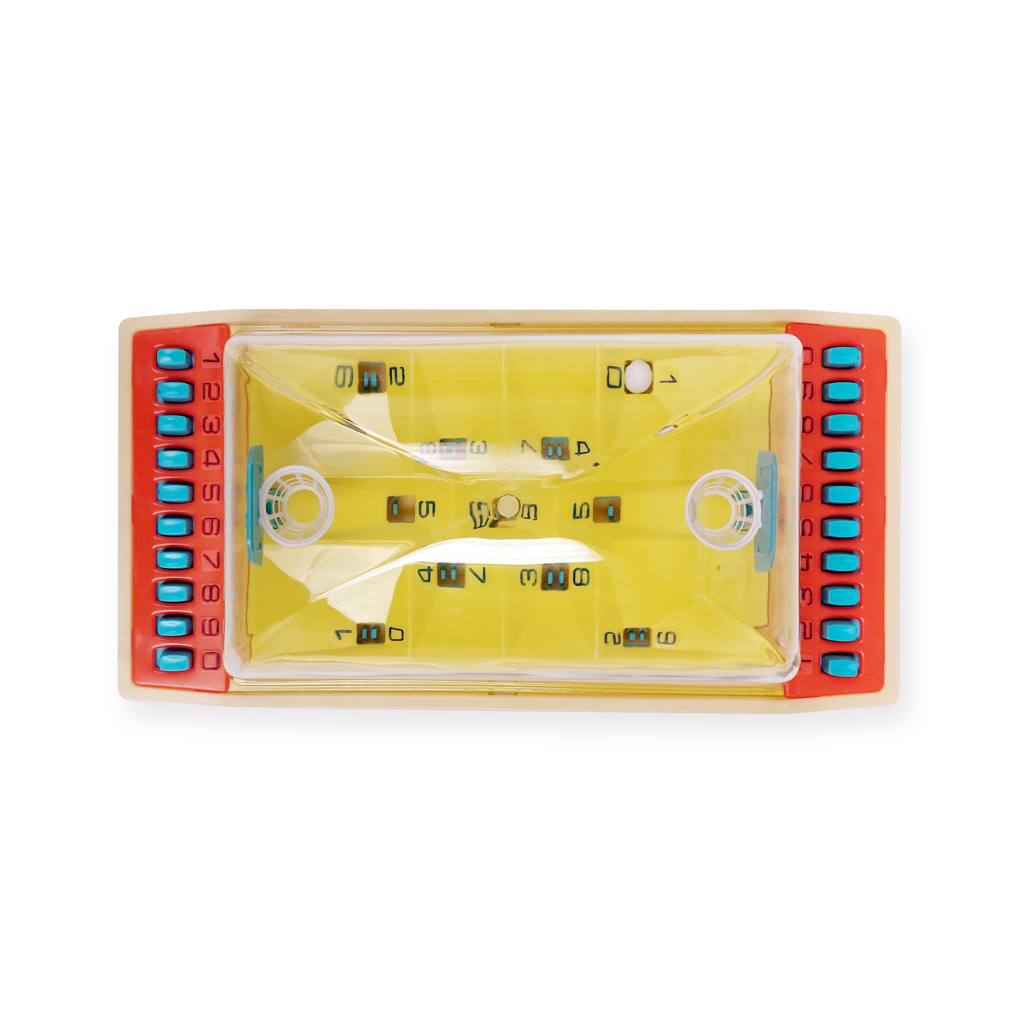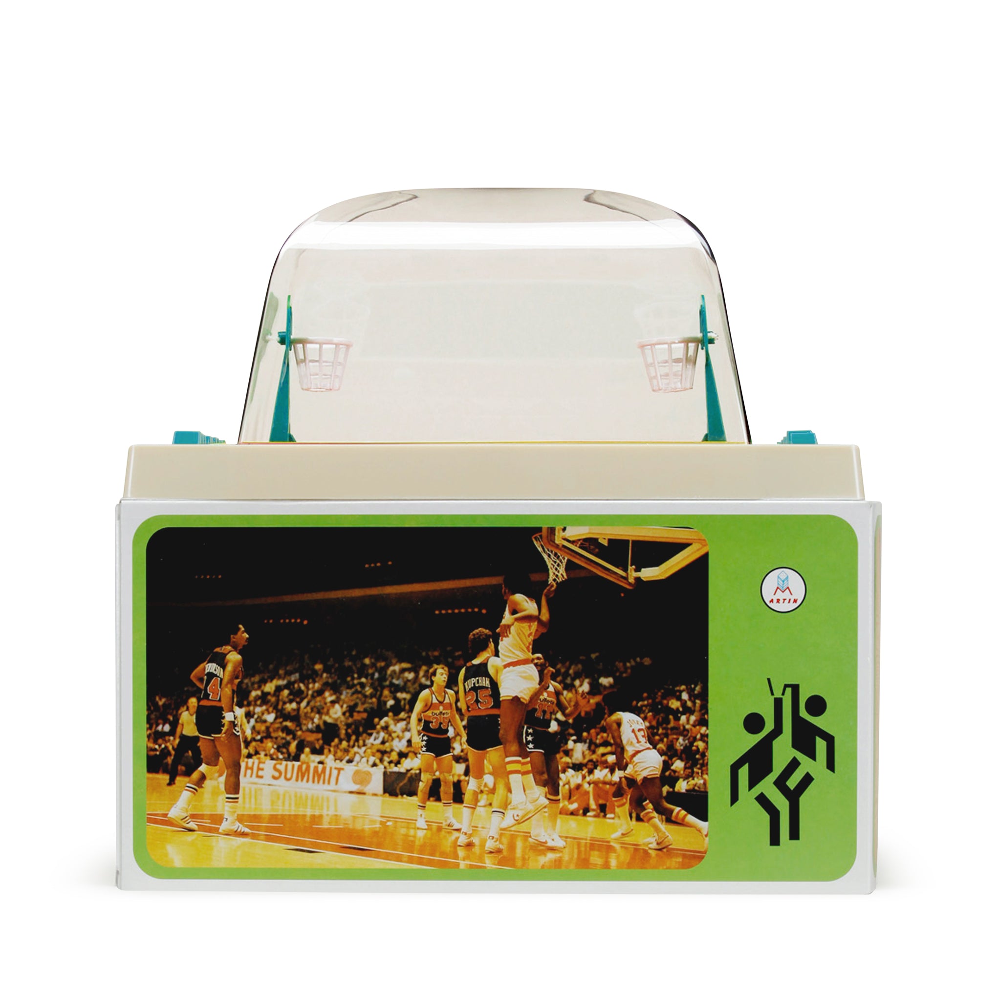 This Mini Basketball Game is a simple and analogue way to keep kids (or even yourself) entertained. Founded in 1970. Portuguese company MoldeMartin was manufacturing steel molds for plastic products when a trip to the United States inspired them to create a small toy based on the growing popularity of basketball. The Lisbon-based. women-owned shop A Vida Portuguesa helps bring this vintage game back to life. Each side of the miniature court has a net and a series of buttons that cause the ball to fly in the air. As in any match. whoever scores the most. wins! This novel time capsule of Portugal culture is sure to provide endless amusement. The A Vida Portuguesa Mini Basketball Game measures 11.81l x 6.29w x 5.51d.