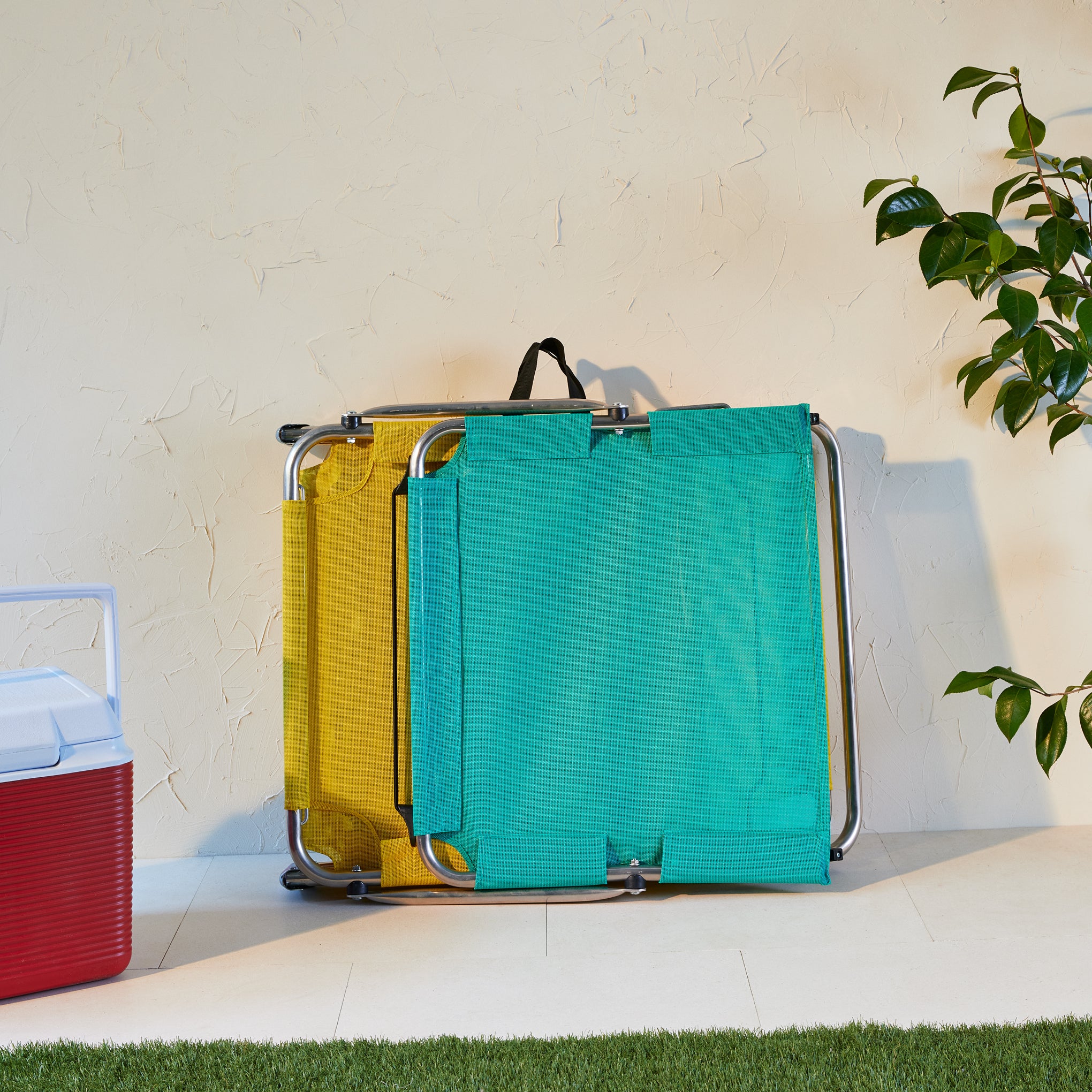 Amigo Outdoor Lounge Chair with Sun Shield – Yellow/ Teal