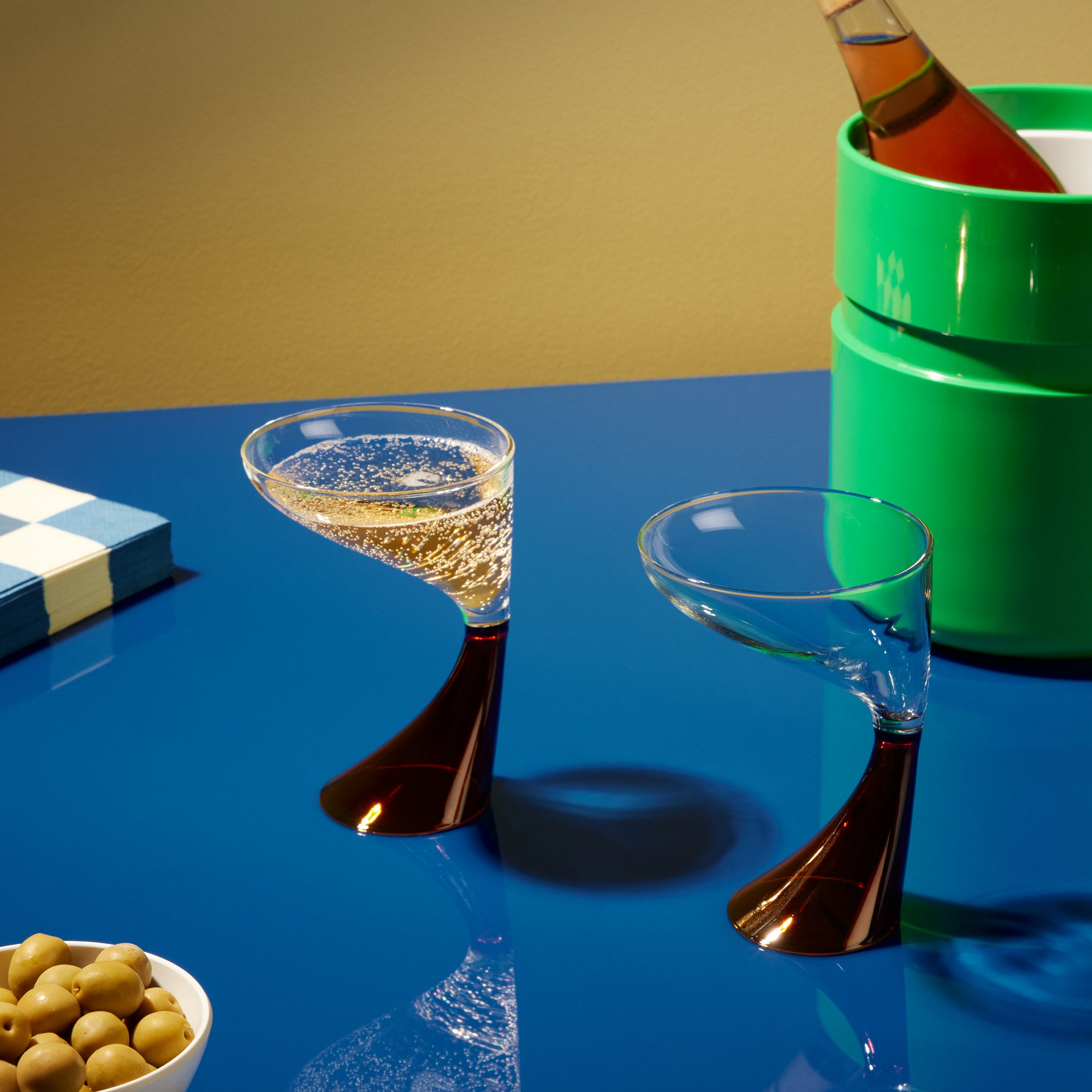 MoMA Exclusive: With their swooping shape and bright pop of colors. these Arch Cocktail Glasses are sure to be the center of attention at your gatherings. They’re from the Black-owned. New Jersey-based brand Homa Studios and designed by the studio’s founder. Altarik Banks. Crafted from durable borosilicate glass. each glass is composed of a clear vessel and translucent colored stem that widens into the glass’s hollow base. Use the Arch glasses for Martinis. Negronis. Manhattans. Cosmopolitans—they’re even ideal for serving Champagne. When the glass is inverted. the hollow base becomes a smaller vessel for enjoying aperitifs. digestifs or whiskey. Each glass in this set of two measures 5.5h x 3.8diam. and holds 6.5oz. Hand wash only.