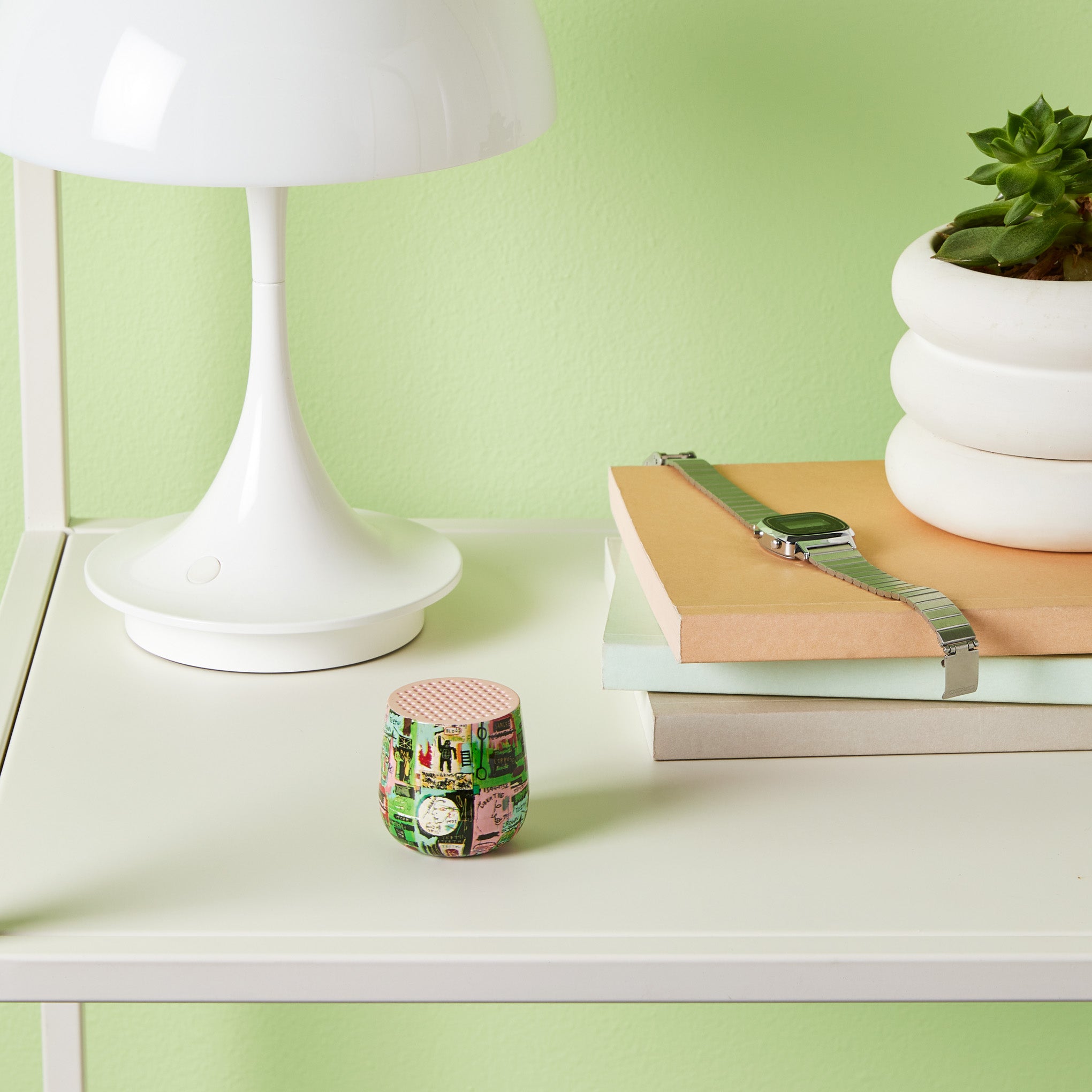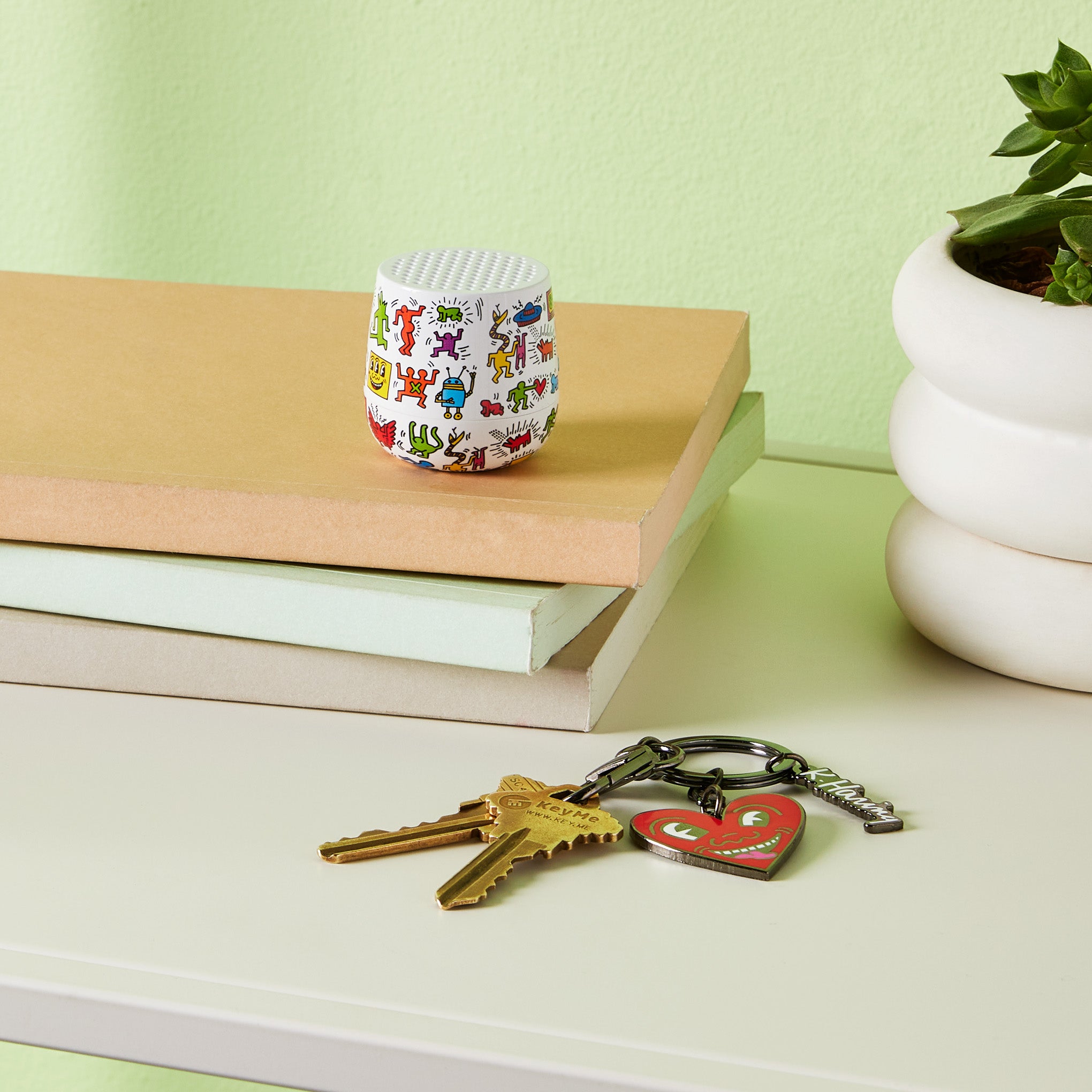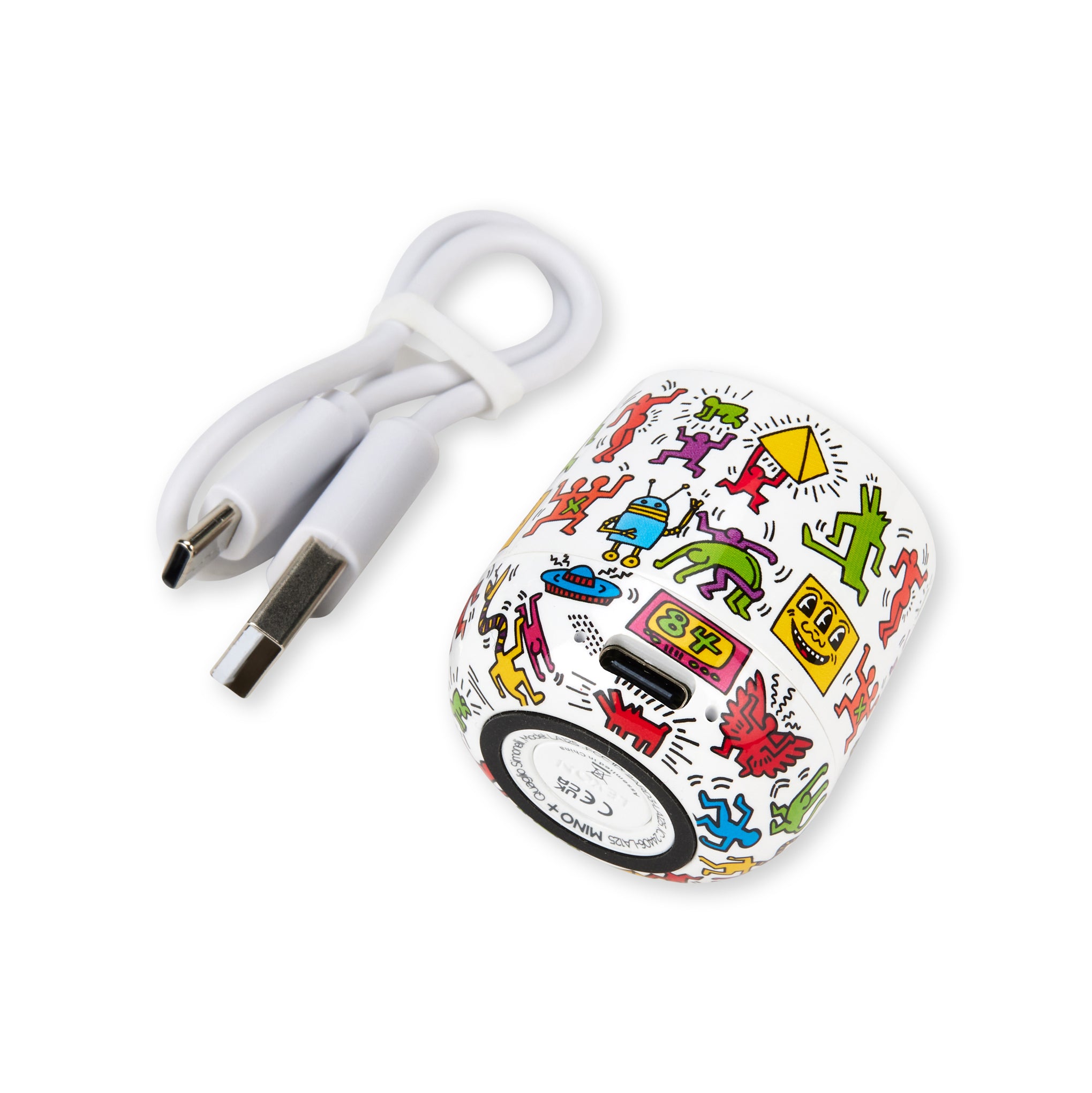 The popular Lexon Mino+ Speaker has been given an artistic makeover. with reproductions of works by artists represented in MoMA’s collection. (Choose from Keith Haring and Jean-Michel Basquiat.) The Lexon Mino+ Speaker fits in the palm of your hand and delivers powerful 3W sound quality. The Mino+ offers two charging methods: wirelessly with any Qi-enabled charging pad or via its USB-C port. Use the Mino+ to enjoy portable music in your office. home or wherever you travel. Pair two of them together for an unparalleled stereo sound experience. The speaker can also be used to make and receive hands-free calls. and its remote button helps you take the perfect selfie with your smartphone. Lexon has work in MoMA’s collection.?