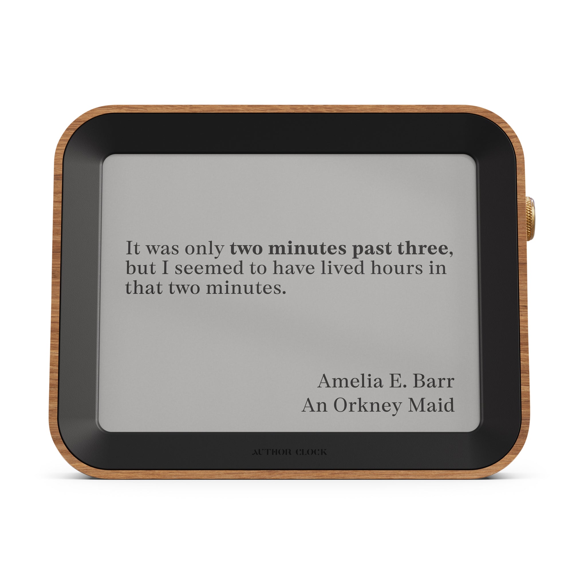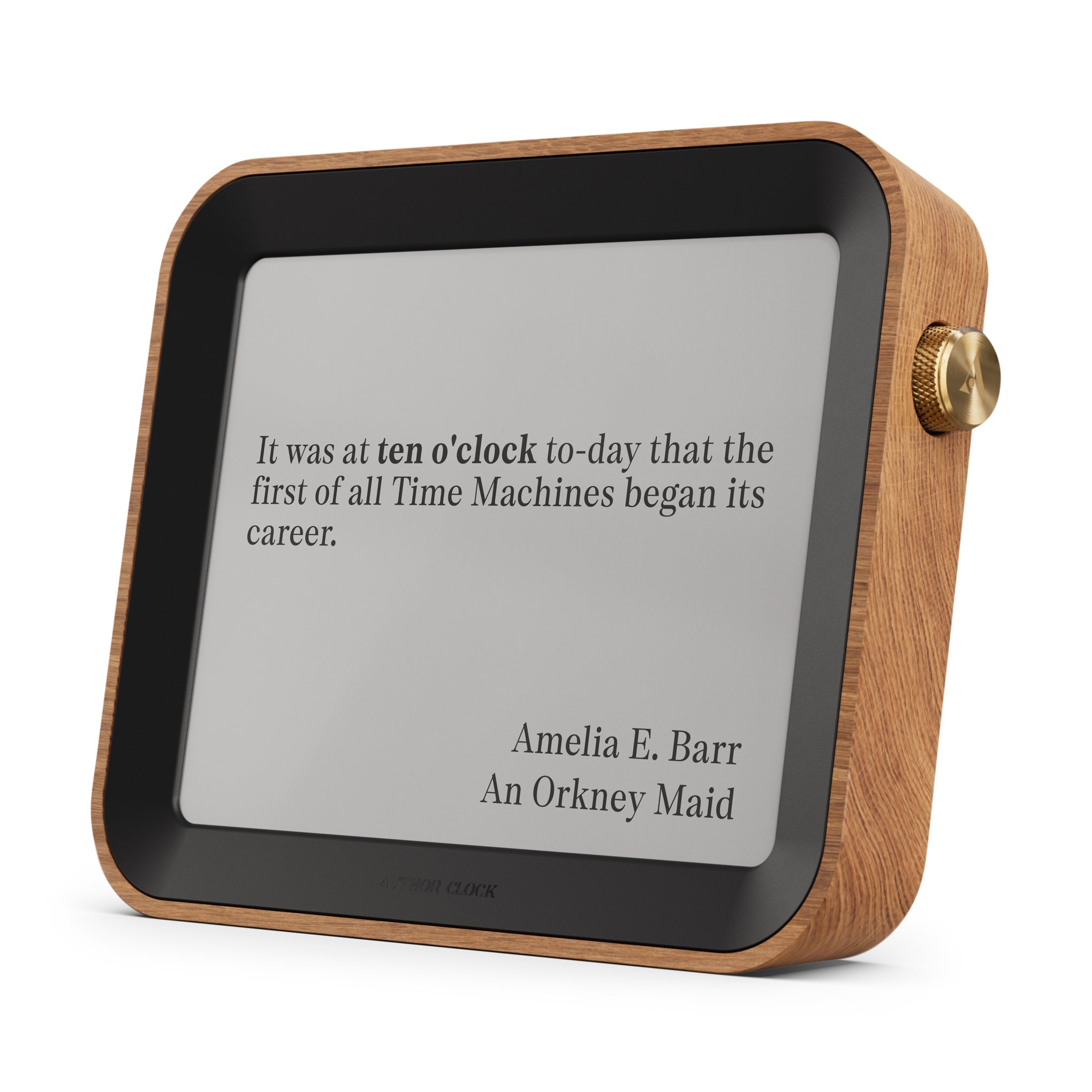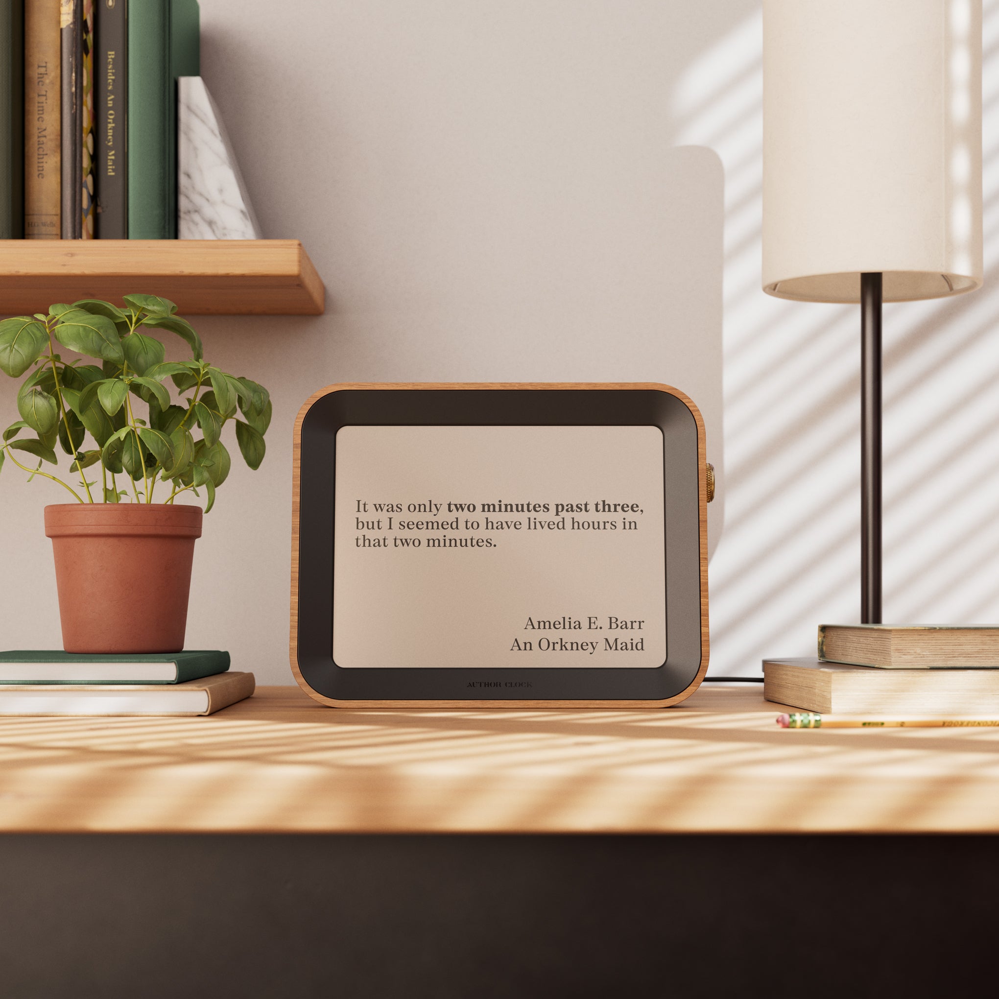 This innovative Author Clock is designed by Jose Cardona and Luke Gray. More than just a timepiece. this remarkable clock revolutionizes the concept of time-telling by incorporating quotes from books spanning six centuries. With thousands of carefully curated quotes. each minute brings forth a fresh and inspiring message. inviting you to embark on a journey of discovery with every glance. The quotes are available in four languages — English. French. Spanish. and German — and continually expands its repertoire. with new quotes added every day.