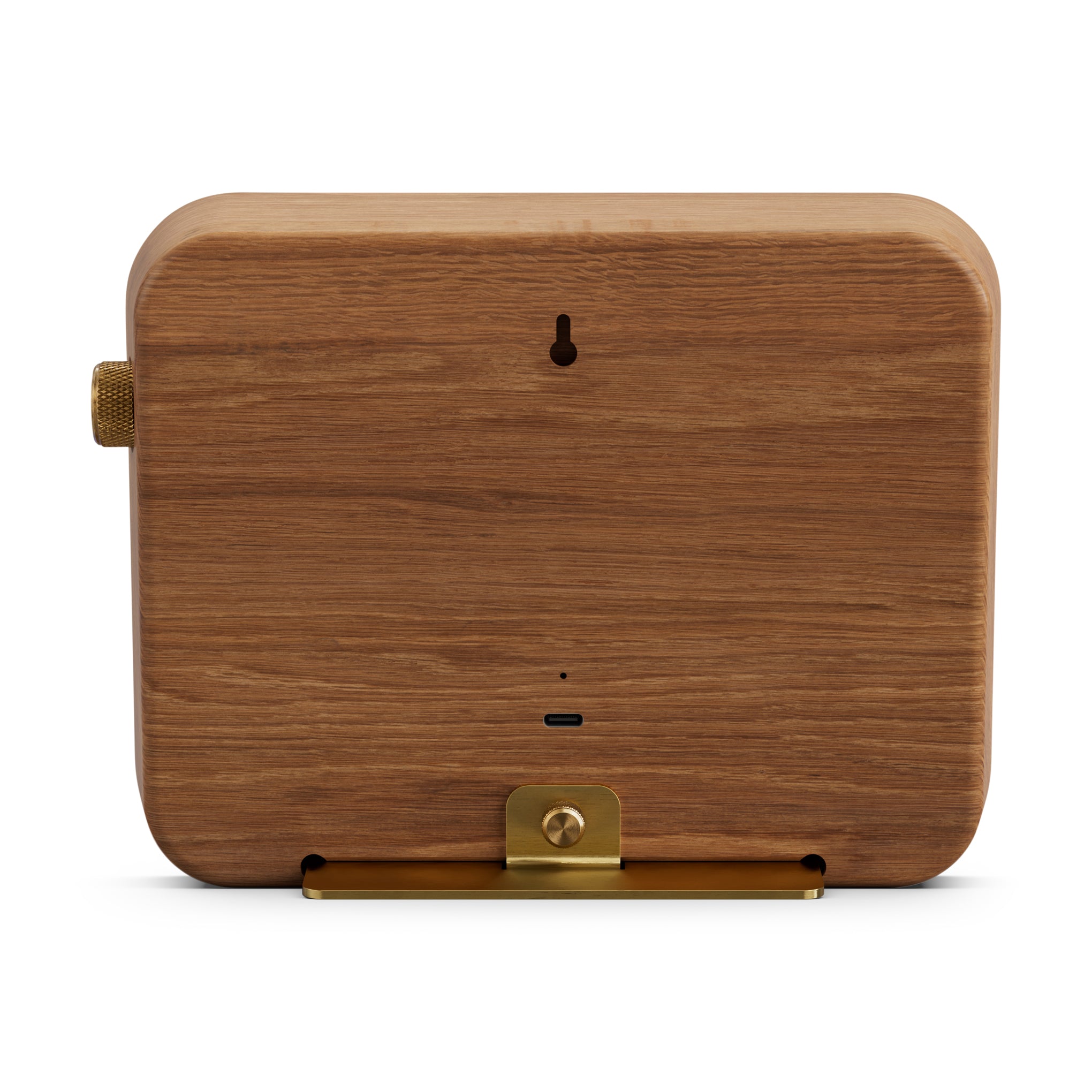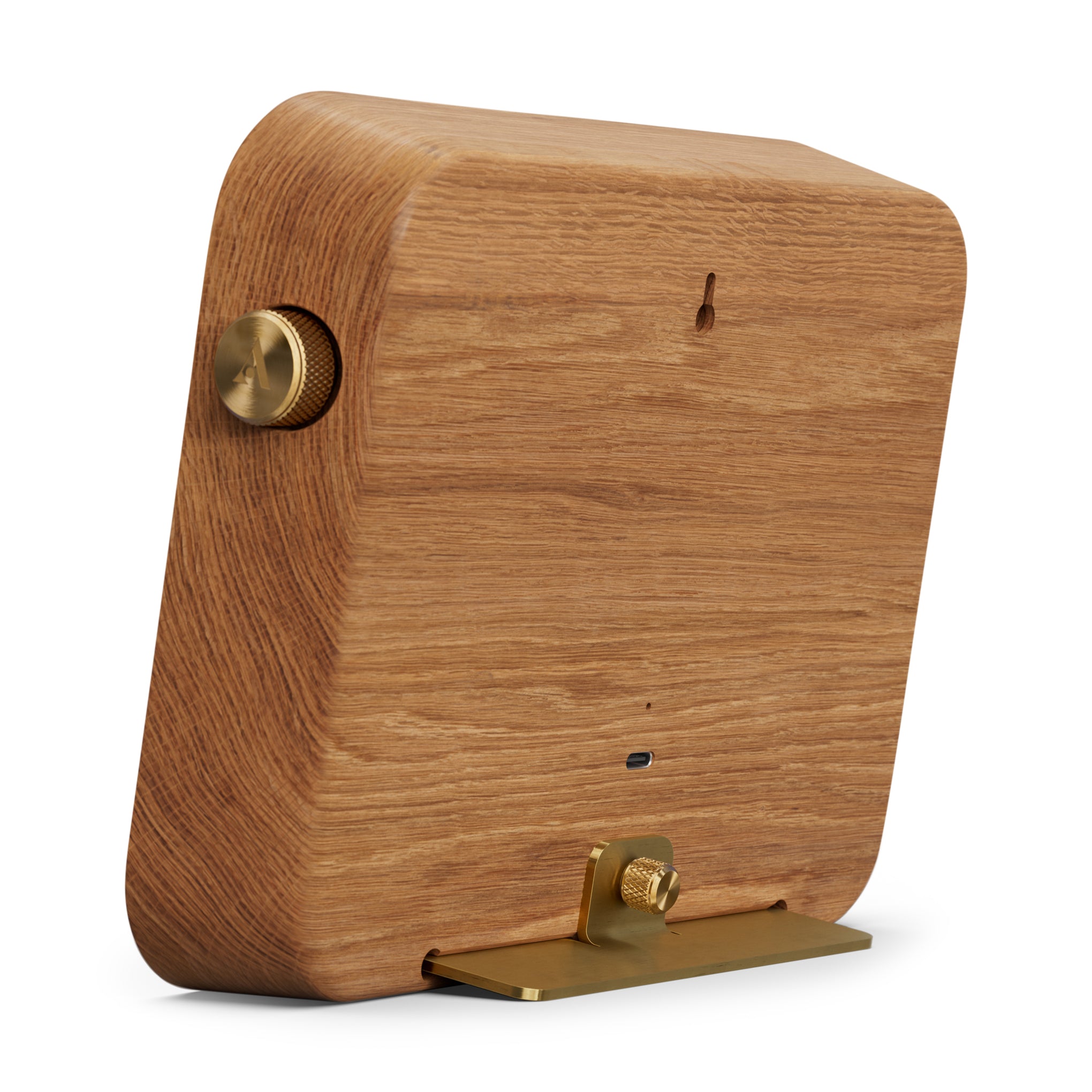 The Author Clock is rechargeable via USB-C. ensuring hassle-free use without the need for constant battery replacements. and can be connected to WiFi. Additionally. you can personalize your clock by selecting the font that best reflects your style and preferences. Let it become a focal point in your home or office. inspiring meaningful conversations and creating an atmosphere of intellectual curiosity. To clean. gently wipe the wood with a dry cloth. The Author Clock is available in small and large. Large clock can be wall mounted.