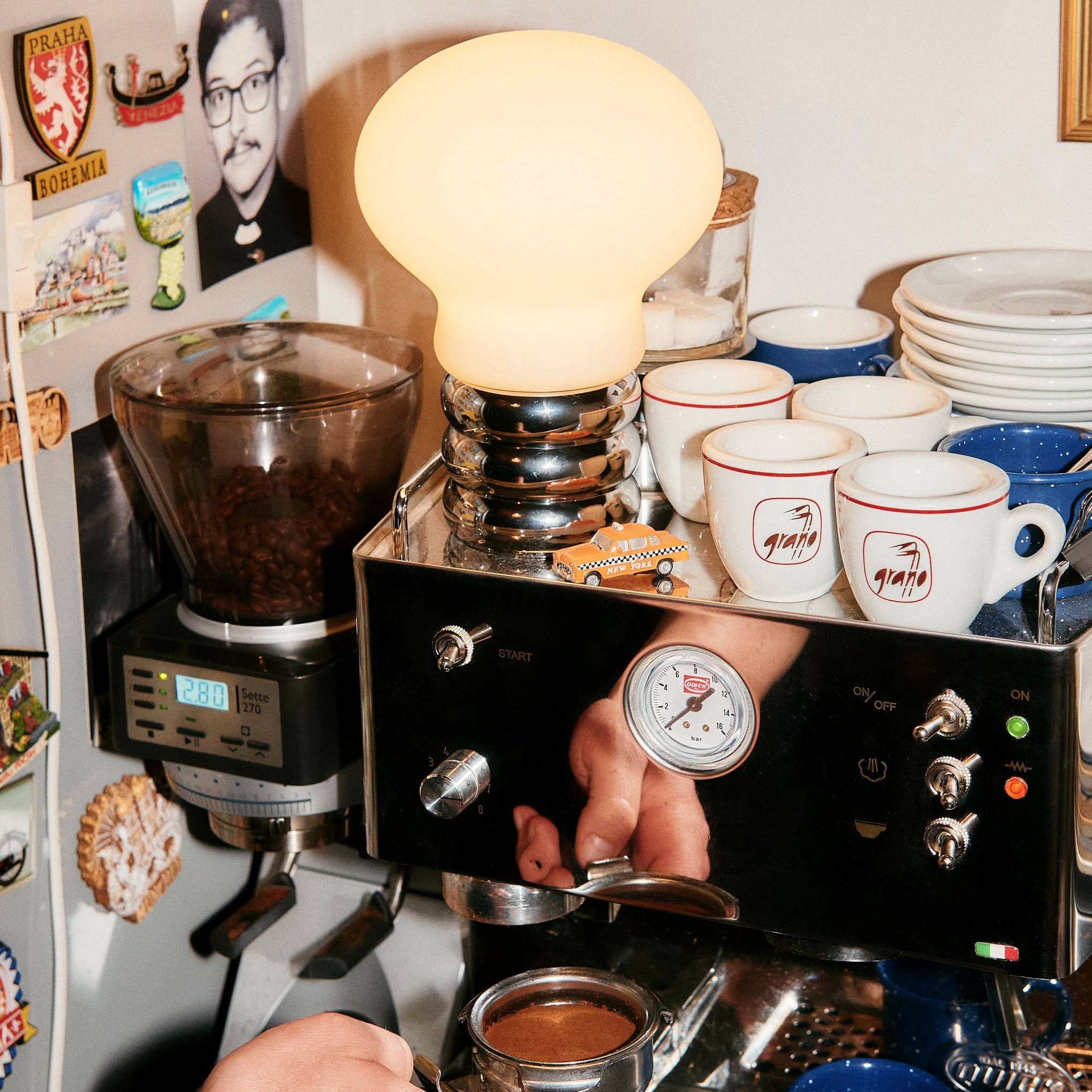 The B.Bulb Portable LED Lamp is a tribute to designer Ingo Maurer’s first design from 1966. the Bulb. an object in MoMA’s collection. This rechargeable version riffs on the original design. with a light-bulb-shaped glass head and stand that resembles a light bulb’s screw-in component. An on/off switch is located under the case. which also functions as a dimmer. The Portable B.Bulb sits well in the palm of your hand and can be placed down wherever you need mood light. from your living room to bedside table. to your patio as a conversation piece at your outdoor gatherings. (Please do not leave the lamp outdoors.) It has an integrated LED light source of 100–240v/2W and charges via USB-C cable (included) for ten hours of light. The B.Bulb Portable LED Lamp measures 7.9h x 5.5diam.