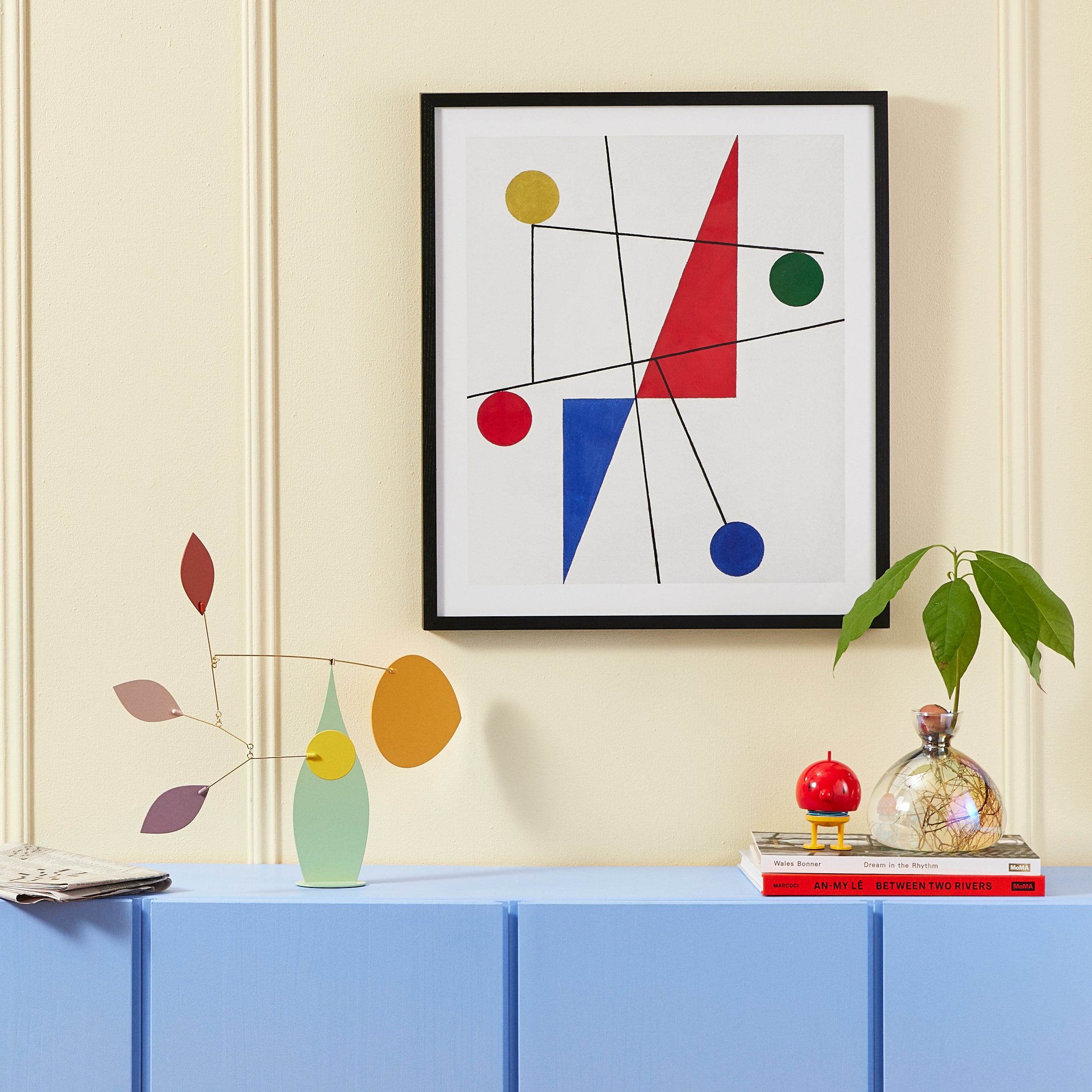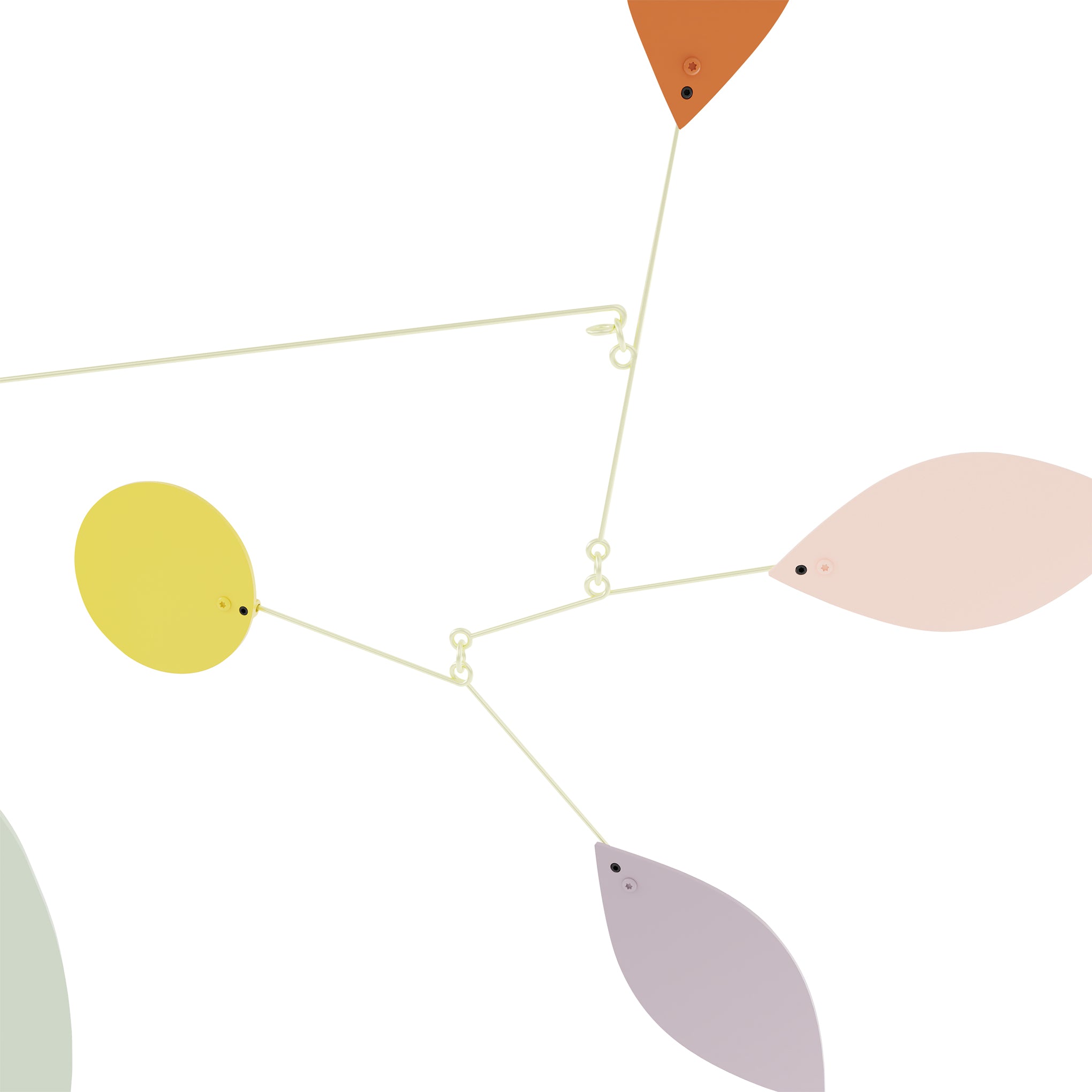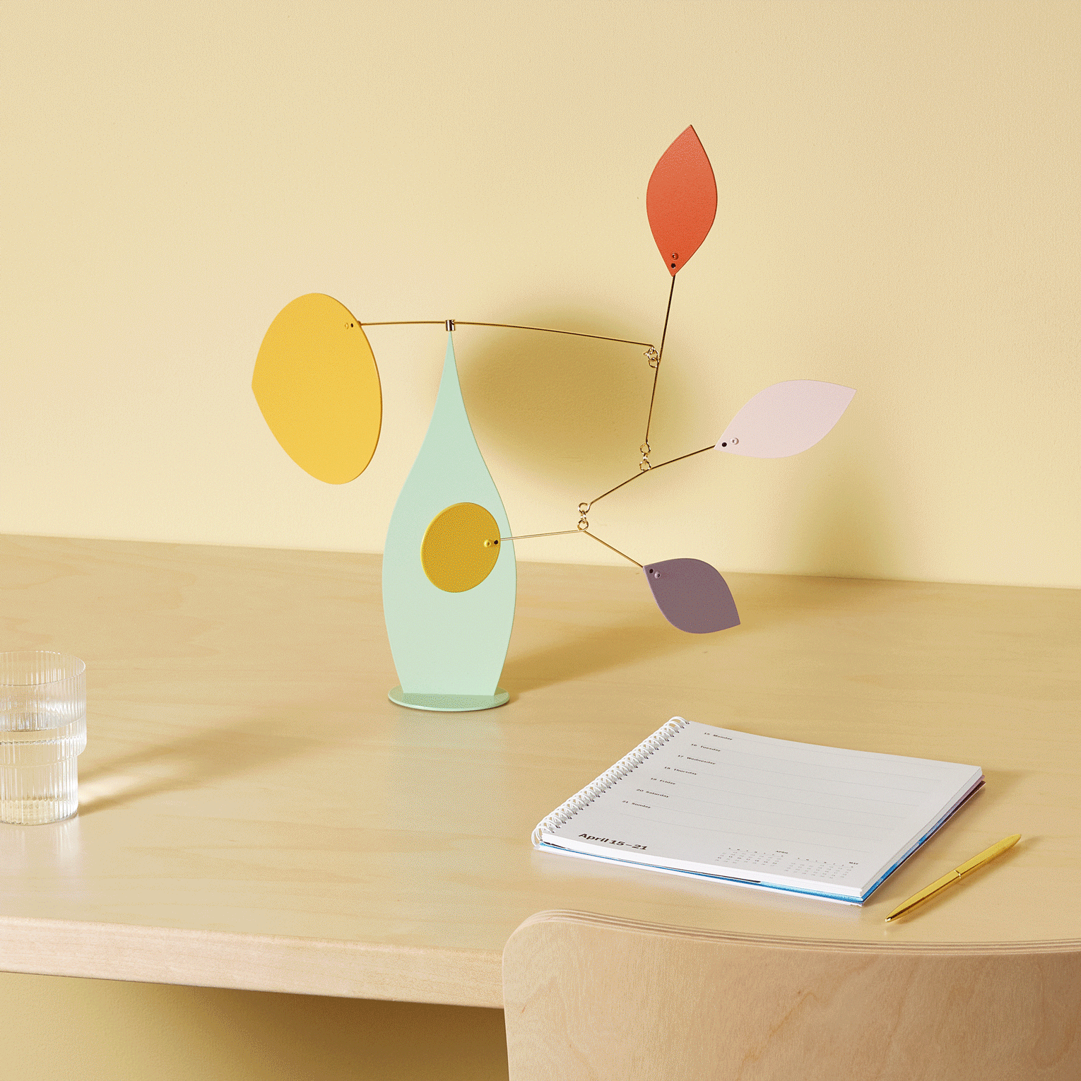 MoMA Exclusive: Handcrafted in Barcelona. Spain. this graceful mobile is inspired by the shapes of a vase showcasing delicate spring flowers that swirl and float like leaves caught in a gentle breeze. The Brasilia Desktop Mobile is made from colorful high-quality aluminum alloy and mounted on hand-shaped rods. The steel base provides stability. It measures 16.15h x 21.65w x 2.4d.