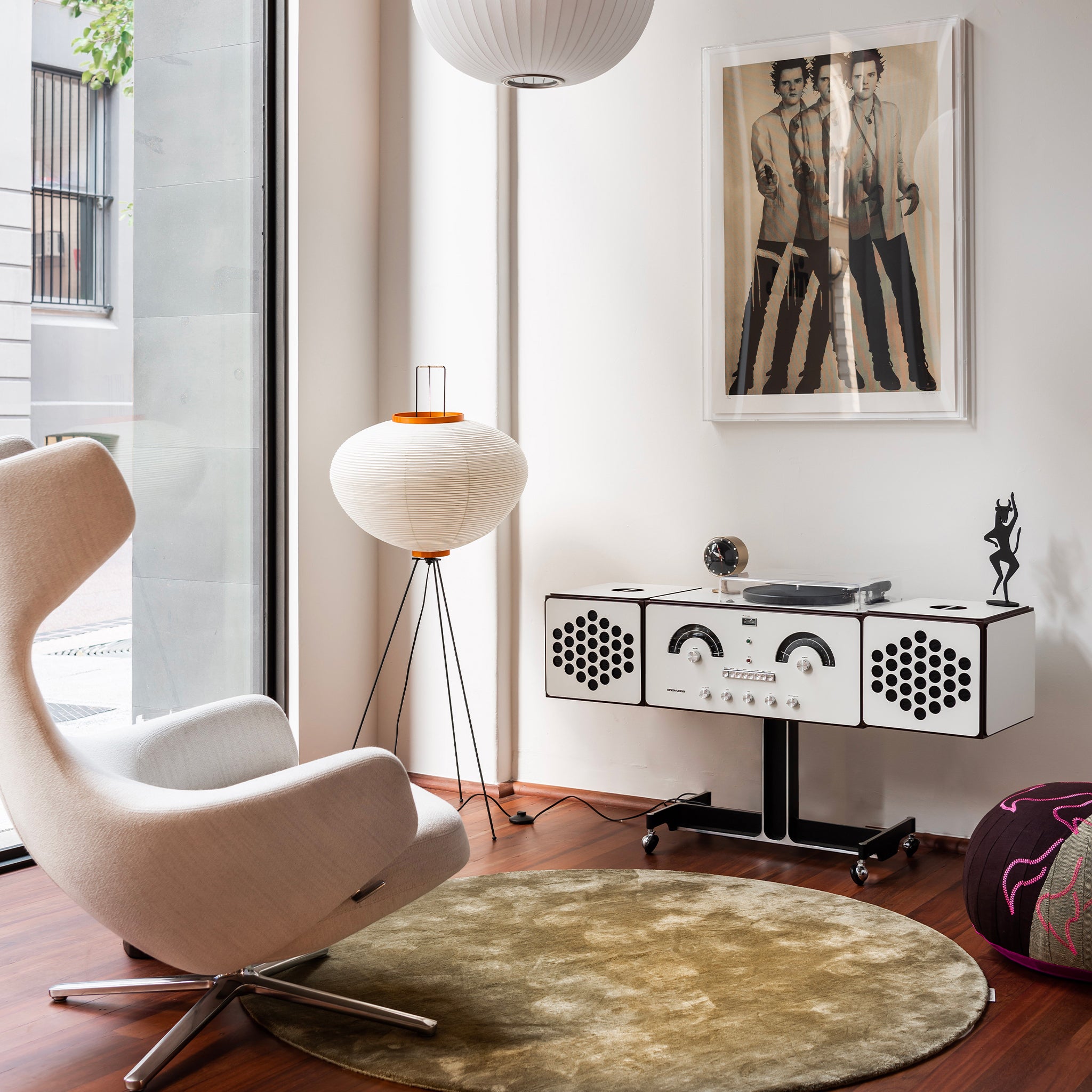 A superb work of modern industrial design. the Brionvega Radiofonografo Radio and Turntable is an AM/FM radio and turntable handcrafted in Italy according to its 1965 specifications. including a single-piece molded aluminum stand and hand-lacquered wood. The pleasingly modular shape of the Brionvega Radiofonografo. as well as its impeccably retro look and construction. will delight audiophiles as well as those who recall the golden age of hi-fis in the 1960s and ’70s. The uniquely styled speakers can be configured three ways for unparalleled sonic definition. The designers. brothers Achille and Pier Giacomo Castiglioni. have work in MoMA’s collection.