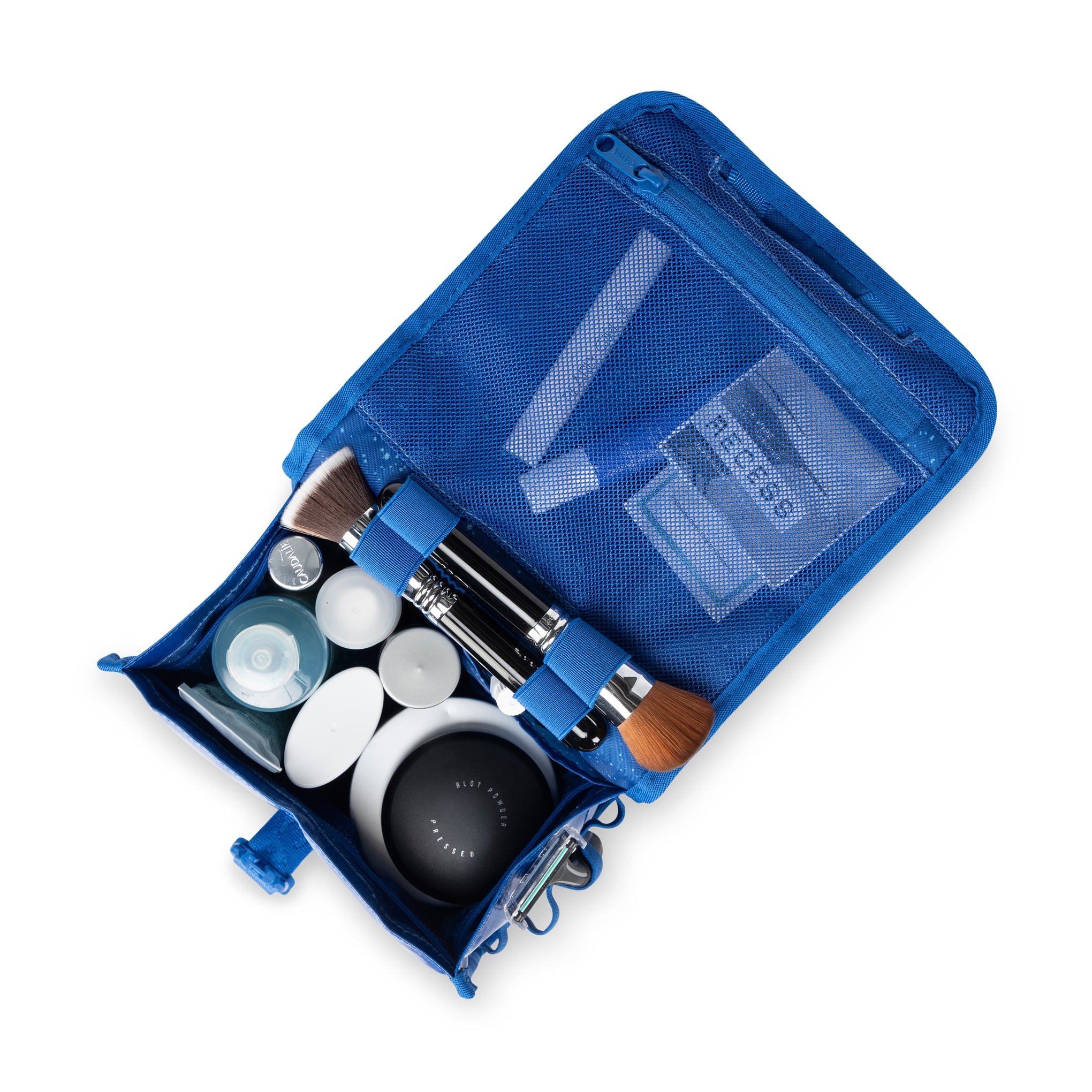 Whether heading for a quick weekend getaway or jetting off to a proper vacation. you’ll be glad you brought the Terra Hanging Toiletry Bag by Calpak. a cult-favorite brand founded in Los Angeles by Edward and Judy Kwon. Made from recycled ripstop polyester (made from six plastic water bottles per bag) with TPU coating. this travel necessity is both sustainable and durable. Keep your toiletries organized and accessible thanks to a spacious water-resistant main compartment. two zippered mesh pouches. multiple pockets. and several toothbrush holders. Short on bathroom counter space? Easily hang it up anywhere by the collapsible hook. The Calpak Terra Hanging Toiletry Bag measures 6h x 8w x 4d.