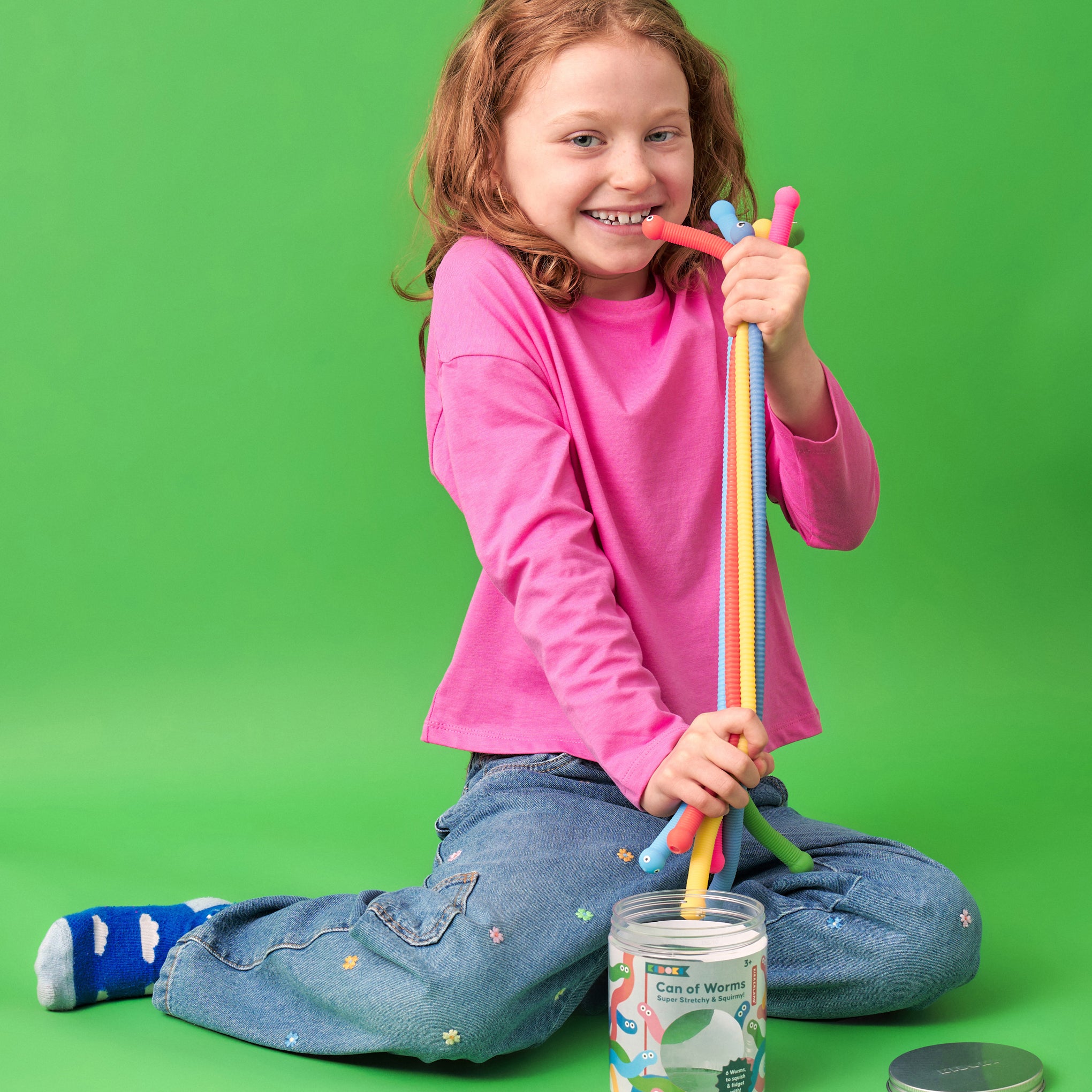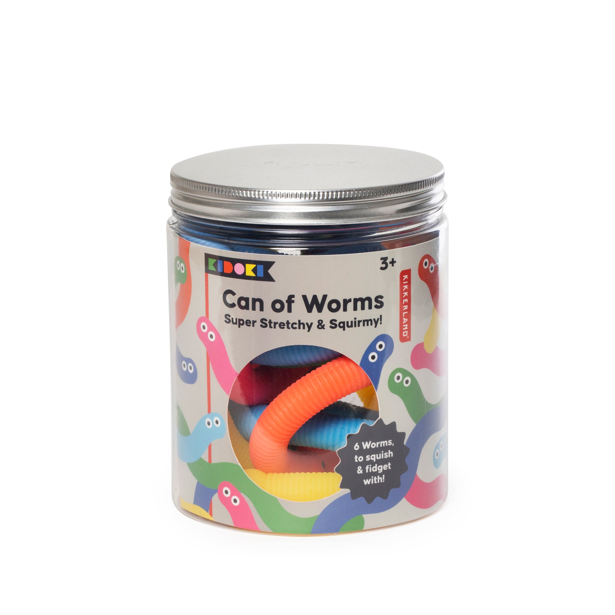 If you’ve never opened a can of worms just to see what will happen. now’s your chance to do it and experience the consequences: pure fun! Inside the innocuous can are six stretchy. googly-eyed worms designed to be squeezed. pulled. fidgeted with and played with by kids three and up. Crafted from safe. non-toxic materials. the worms provide tactile stress relief. sensory stimulation and hours of fun for all who encounter them. Made of TPR and PET plastic with an aluminum lid and a label made from FSC paper. the Can of Worms measures 4.5h x 3.75 diam. Each worm measures 12.25l x 0.5 diam. For ages 3+.
