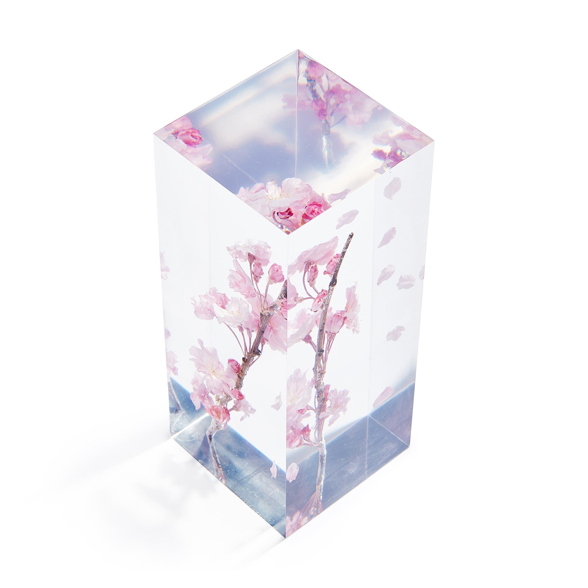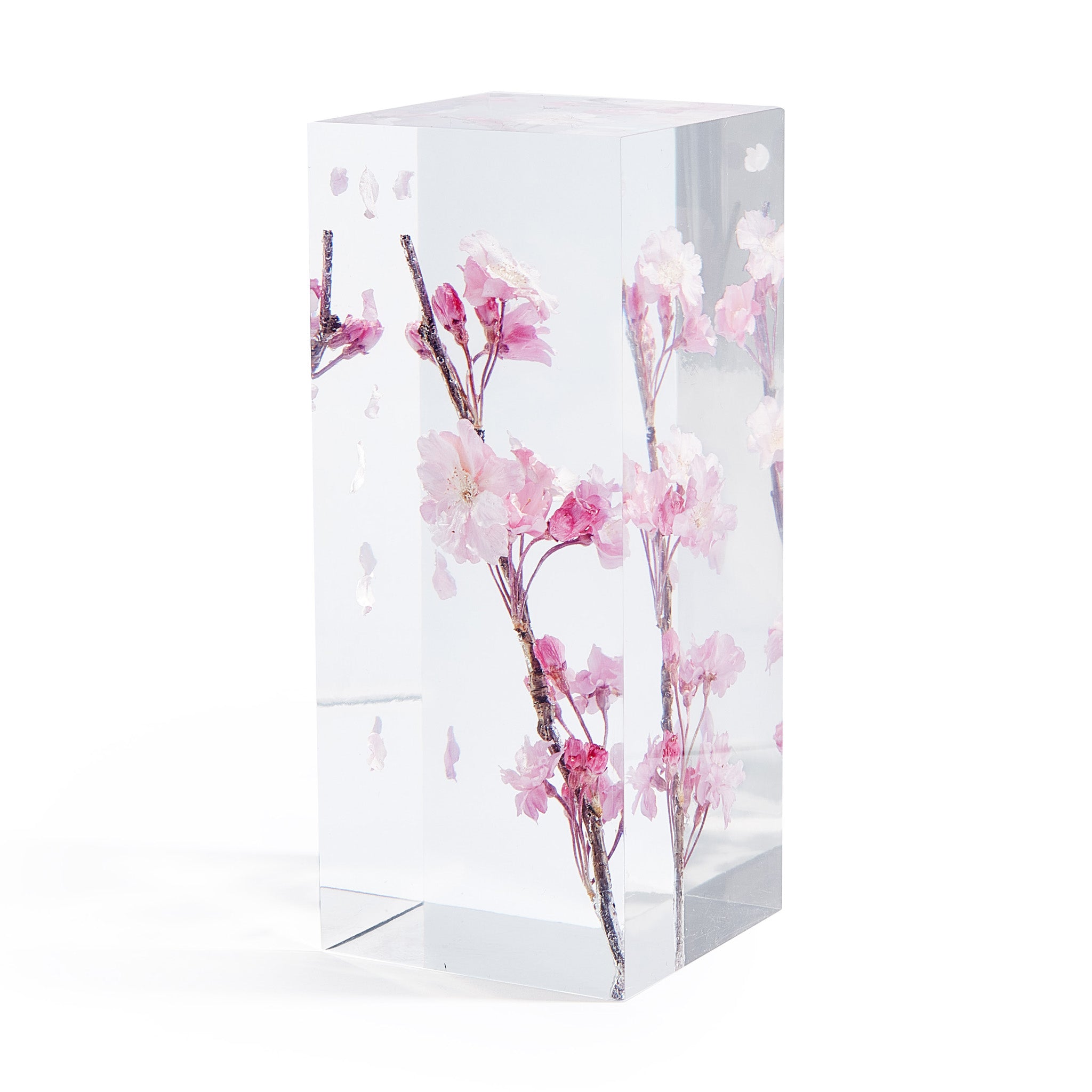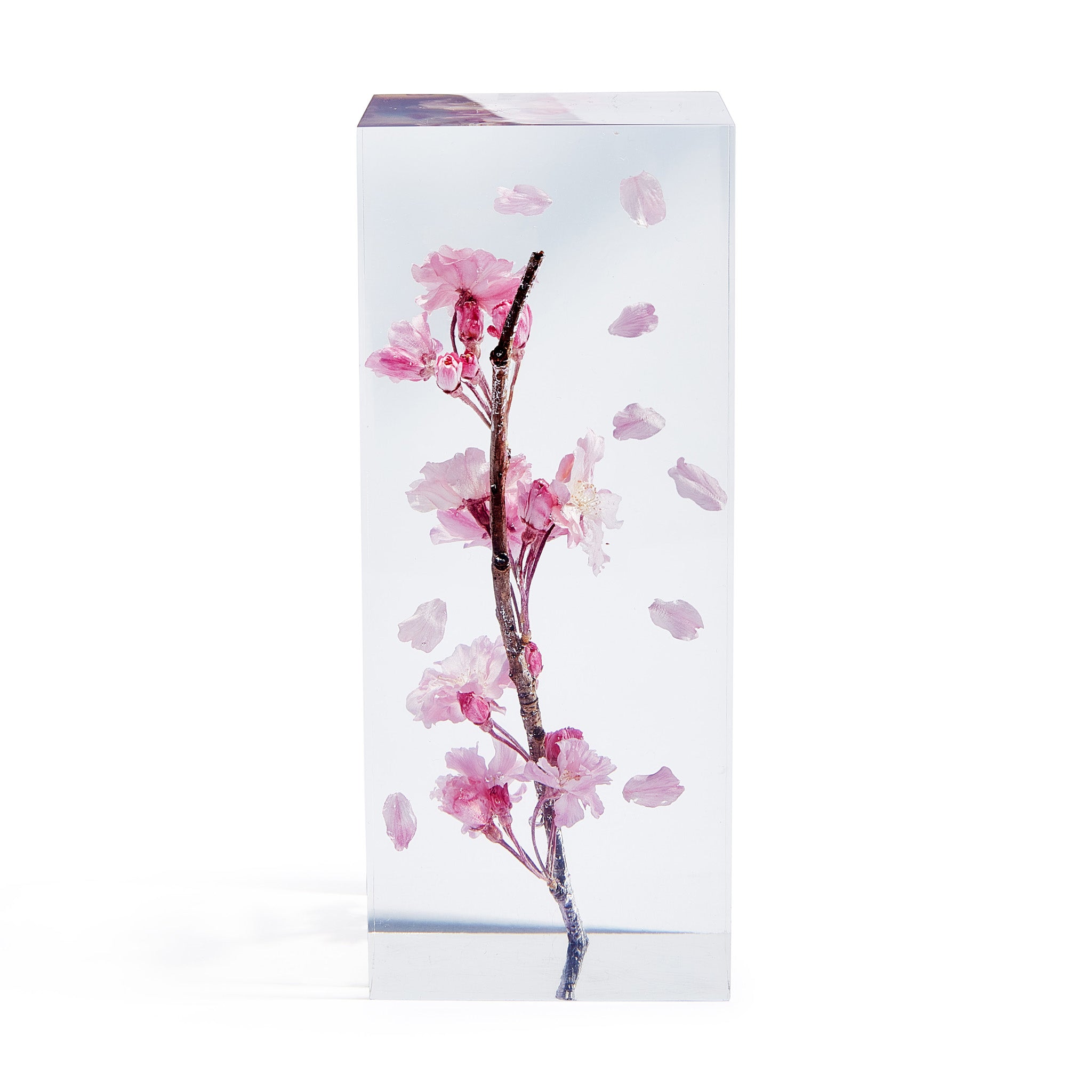 MoMA Exclusive: A branch from a cherry blossom tree. grown and harvested in Japan. is captured in acrylic and resin to create a permanent moment of beauty in your home. The Cherry Blossom Objet d’Art is the brainchild of artist and cinematographer Takao Inoue. who enjoys capturing simple. ephemeral moments to stare at you [and] make you happy. and is known for creating similar works with dandelions and tulips. Even if the cherry blossoms are in full bloom. once they start to fall. all the petals will fall at once. says Inoue. I’m particularly attracted to the petals when they start to fall. The Cherry Blossom Objet d’Art is made in Japan and measures 6.75h x 2.75w x 2.75d.