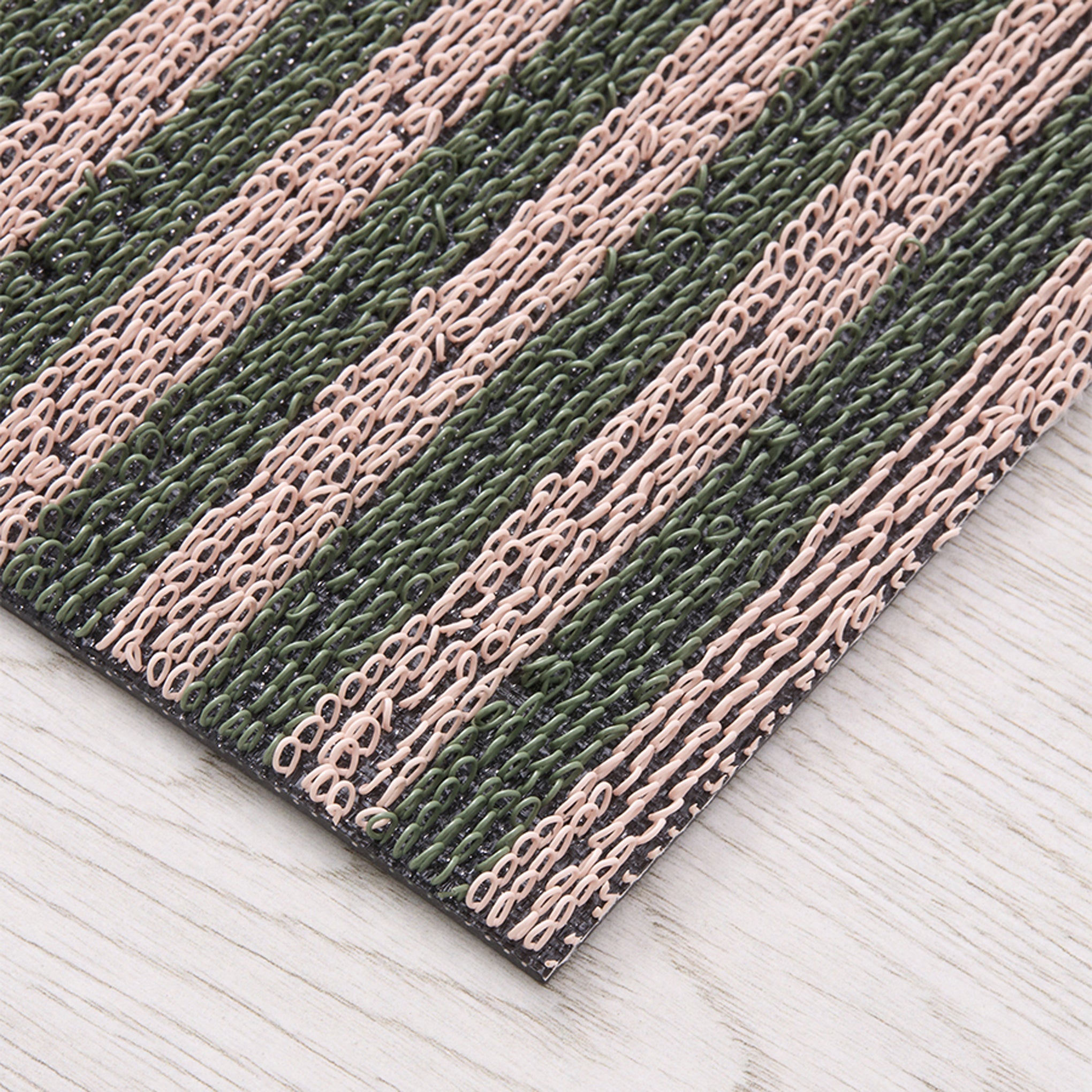 An everyday design for your home and outdoor space. this shag mat from Chilewich features a pattern inspired by the classic Breton uniform worn by French navy seamen in northern France. The high-contrast knit shirt was first made chic by fashion designer Coco Chanel. and its classic stripe is reimagined for this shag mat through a tufted texture. With a backing of hardworking vinyl. the Chilewich Breton Stripe Shag Mat is ideal for entryways. kitchens. bathrooms. outdoor spaces and pool areas. Resistant to mold. mildew. and chlorine. the Breton Stripe Shag Mat is made in the USA with 70% vinyl. 30% polyester TerraStrand? and Microban? that are free of phthalates.