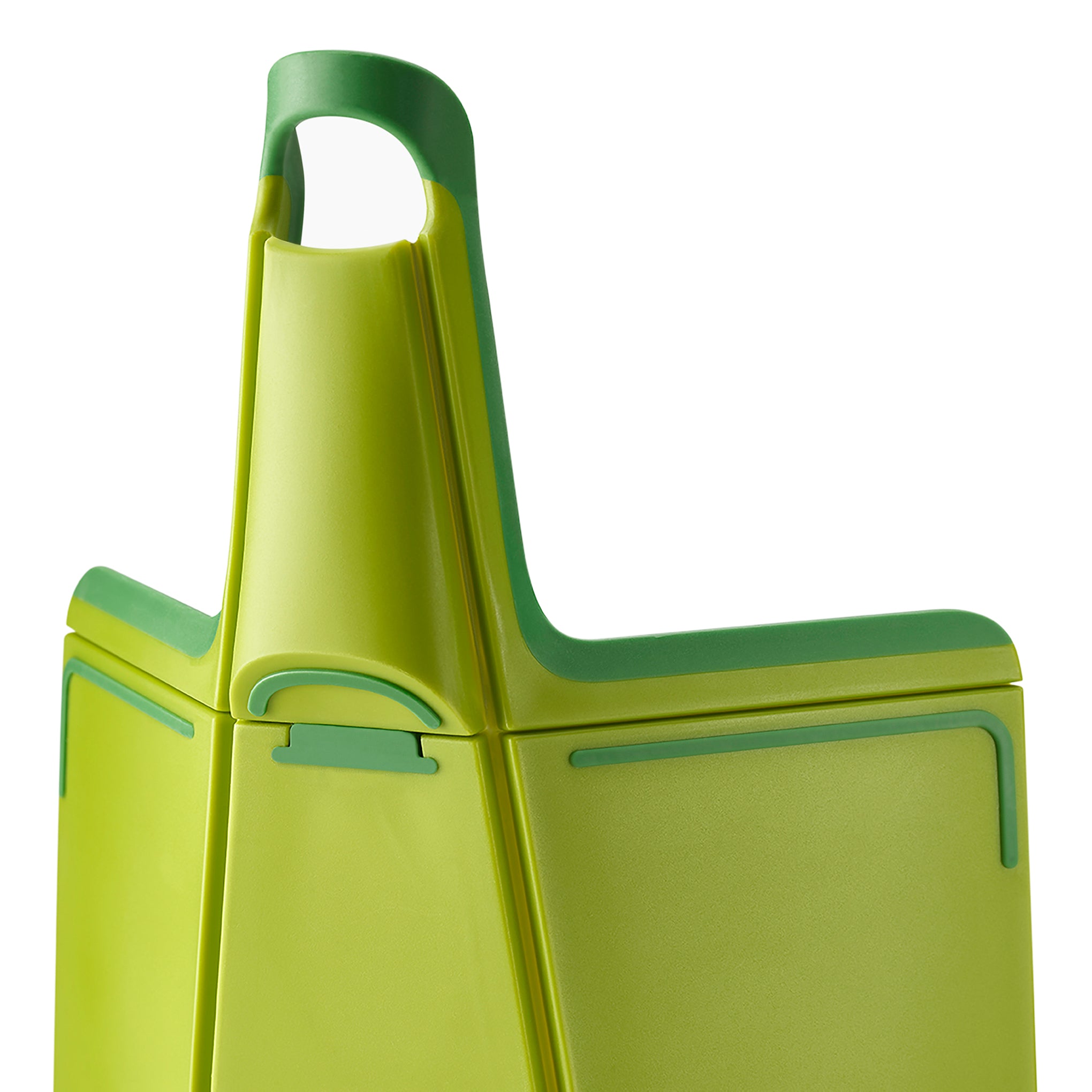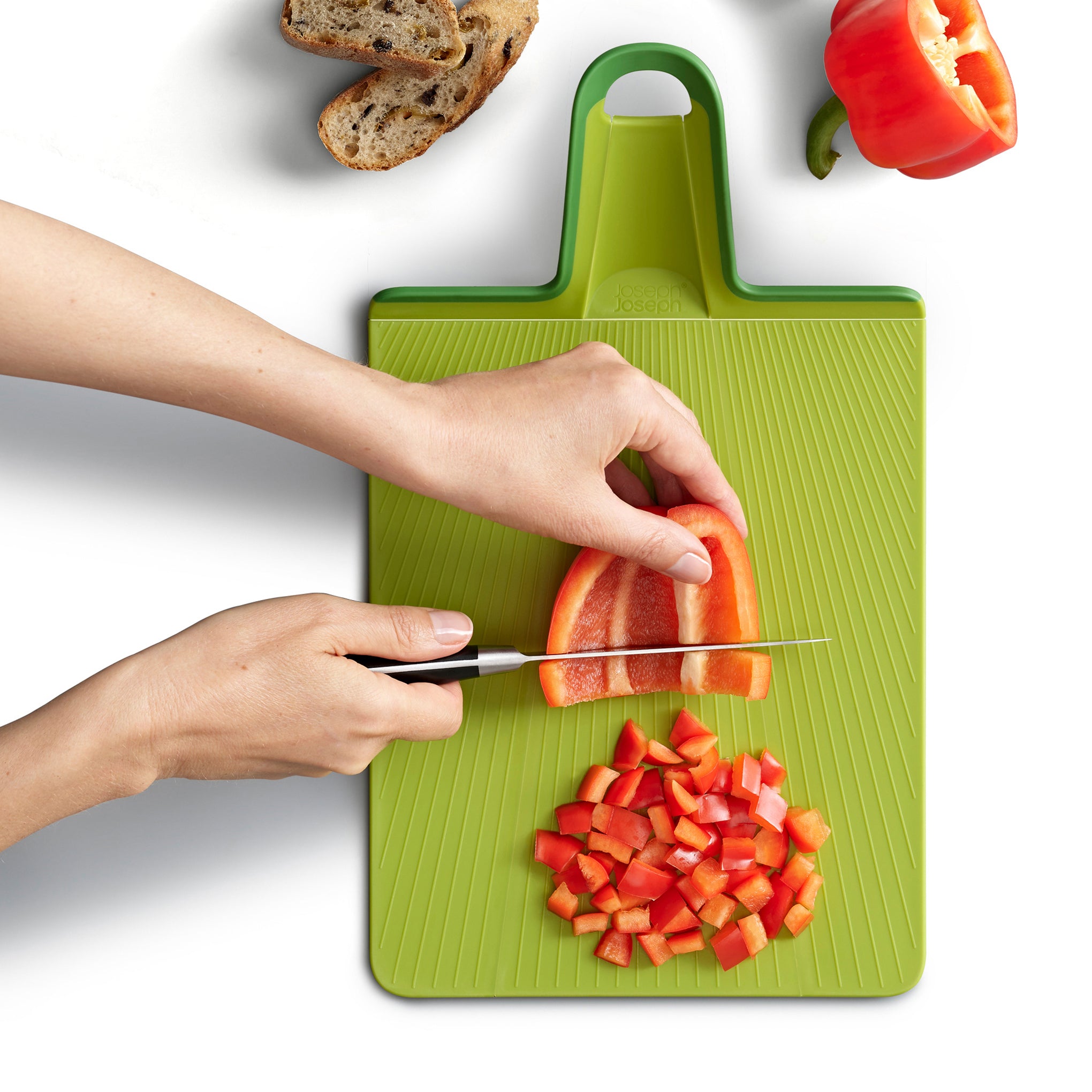 Say goodbye to messy kitchen counters with the Chop2Pot™ Folding Cutting Board. the ultimate culinary companion. Its innovative folding design allows for seamless food transfer. saving you time and effort. The textured cutting surface is gentle on your knives. while the soft-grip handle and non-slip feet ensure stability and precision. Available in vibrant Green and Pale Blue. this cutting board comes in two sizes to accommodate your needs. Get ready to chop. slice. and dice like a pro with this game-changing kitchen essential. Dishwasher-safe.