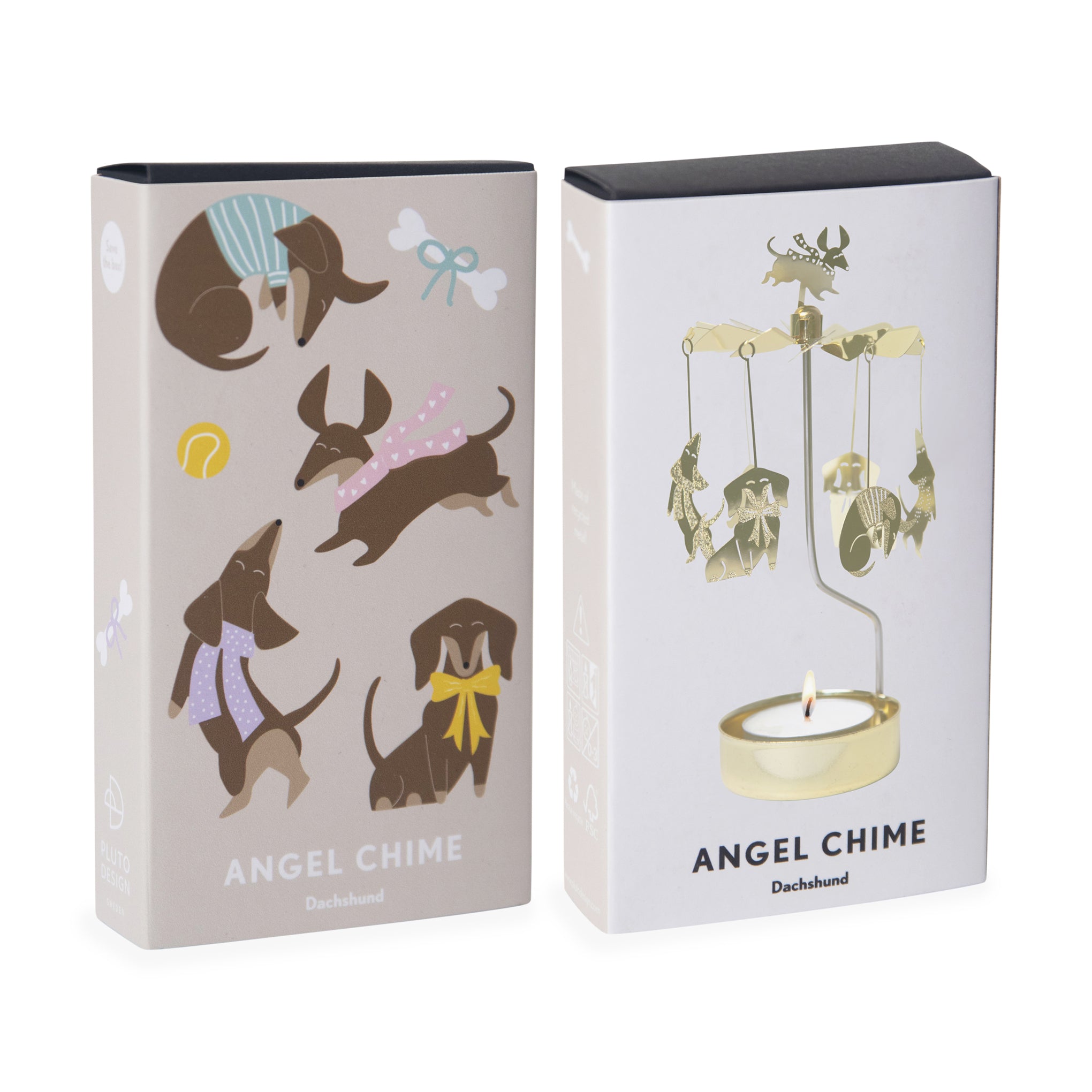 This whimsical Dachshund Dogs Rotary Tea Light Candle Holder features a tree-inspired mobile that rotates when a lit votive candle is placed in the stand’s holder. The tree is adorned with various dachshund dog motifs. Candles not included. The Dachshund Dogs Rotary Tea Light Candle Holder is made in Sweden from plated iron and measures 6h.