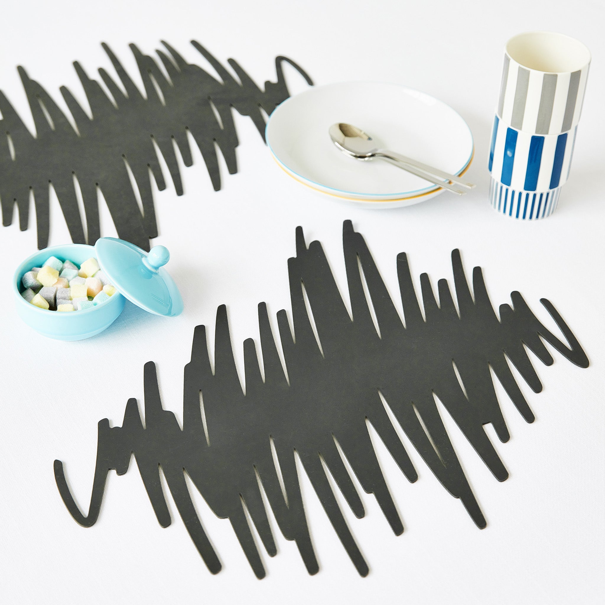 Naoki Ono and Yuuki Yamamoto’s silicone coasters and placemats mimic the scribbles that are often the starting point of great ideas. Ono and Yamamoto make up YOY. a Tokyo-based design unit that creates products that spark conversations and encourage storytelling. Set your table with these placemats featuring designs that mimic charcoal and pencil scribbles. Hand-wash.