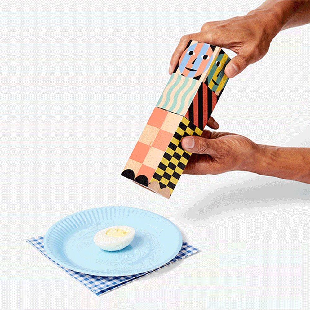This pepper grinder has a dual mission: to grind your peppercorns and to bring big. happy vibes to your table. Conceived by Brooklyn-based designer Ellen Van Dusen. this blocky beech wood grinder is adorned with Dusen Dusen’s famous smile motif and a riot of patterns and colors. based on the designer’s research into color theories. The Dusen Dusen Everybody Pepper Grinder has an inner mechanism of stainless steel. ceramic and plastic. It’s designed in collaboration with Areaware and measures 8h x 2w x 2d.