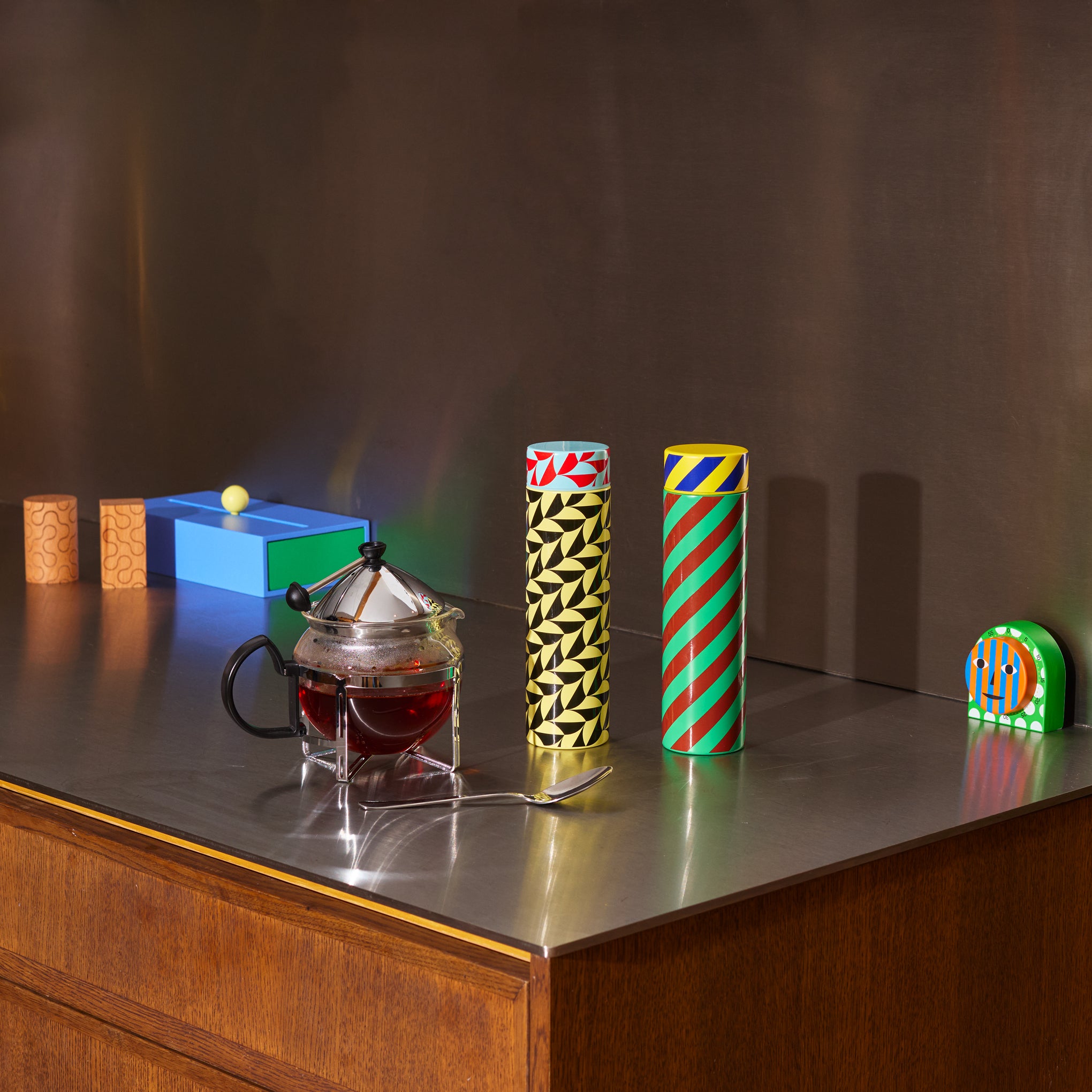 MoMA Exclusive: Sporting the patterns and unexpected color combinations that Brooklyn-based designer Ellen Van Dusen is known for. this thermal bottle brings happy vibes to your daily beverage needs. The bottle will keep hot drinks warm and cold drinks cool for at least 12 hours. Use this thermal bottle for hot coffee or cocoa. water. your favorite cold beverages. even soup. The Dusen Dusen Pattern Thermal Bottle is designed in collaboration with Areaware and measures 8.25h x 2.25diam. and holds 13.5oz.