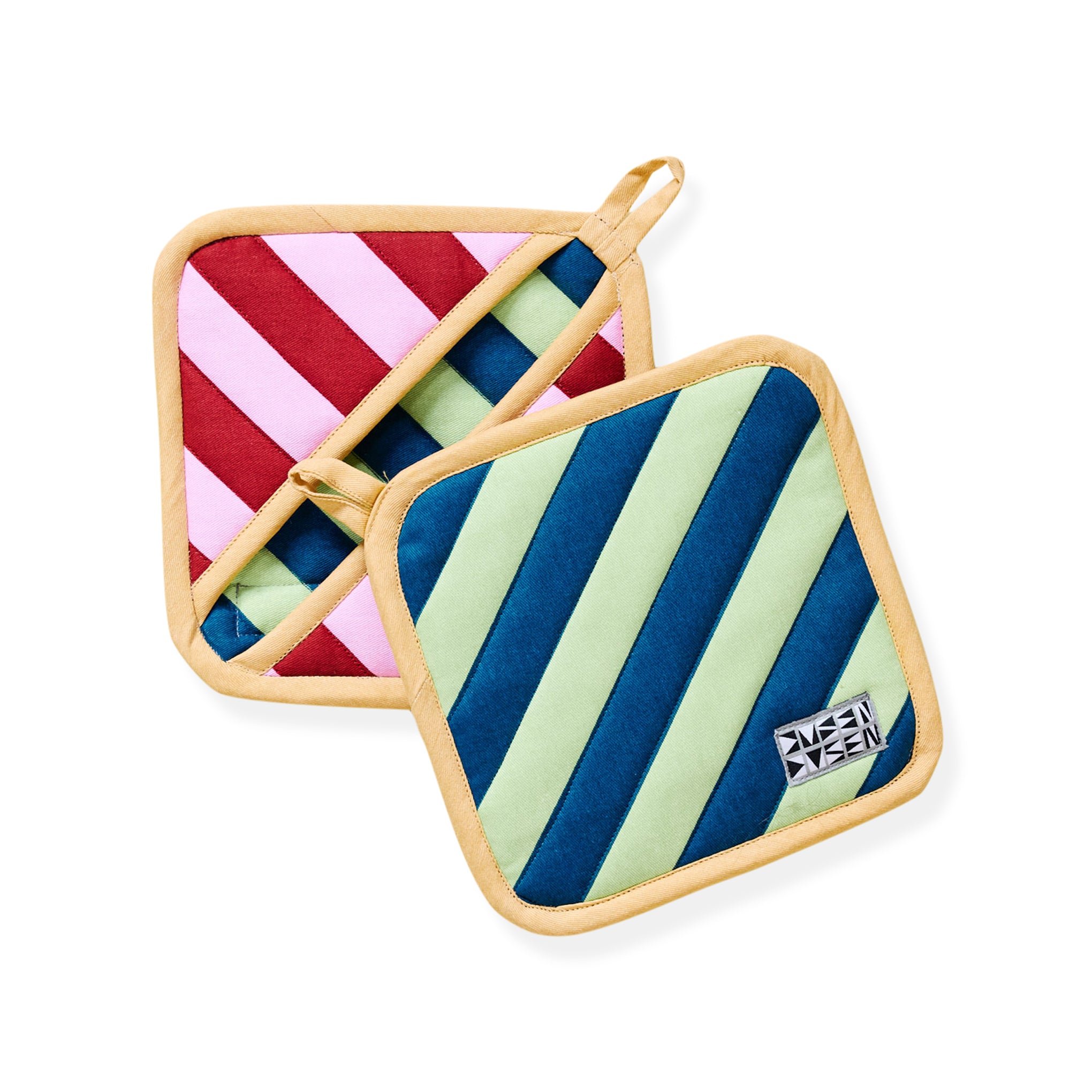 Distinguished by Brooklyn designer Ellen Van Dusen’s keen eye for vibrant color combinations and stripes. this padded potholder from Dusen Dusen is designed in a classic shape. Each holder features varying widths of stripes and will bring mood-lifting color to your time in the kitchen. from baking cookies to lifting that homemade lasagna out of the oven and bringing it to the table. The Dusen Dusen Potholder is made from 100% quilted cotton canvas in contrasting-color stripes with a polyester fill to protect your hand from heat. and measures 8l x 8w. Sold individually.
