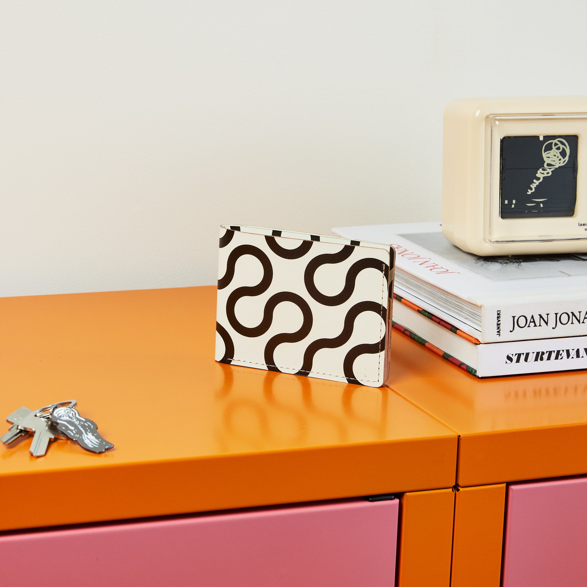 MoMA Exclusive: As if you needed another reason to get excited about vacation. Brooklyn-based line Dusen Dusen has collaborated with MoMA on an exclusive collection of recycled leather travel accessories. Responsibly crafted in Spain. the Recycled Leather Billfold Wallet has a main compartment to hold bills and slots to store cards. Dusen Dusen is inspired by the brain’s reaction to color. movement. and contrast–which explains the bold. graphic pattern printed on this piece. The Dusen Dusen Recycled Leather Billfold Wallet measures 3.25h x 4.41w x 0.35d when closed and 3.25h x 8.82w x 0.16d when open.
