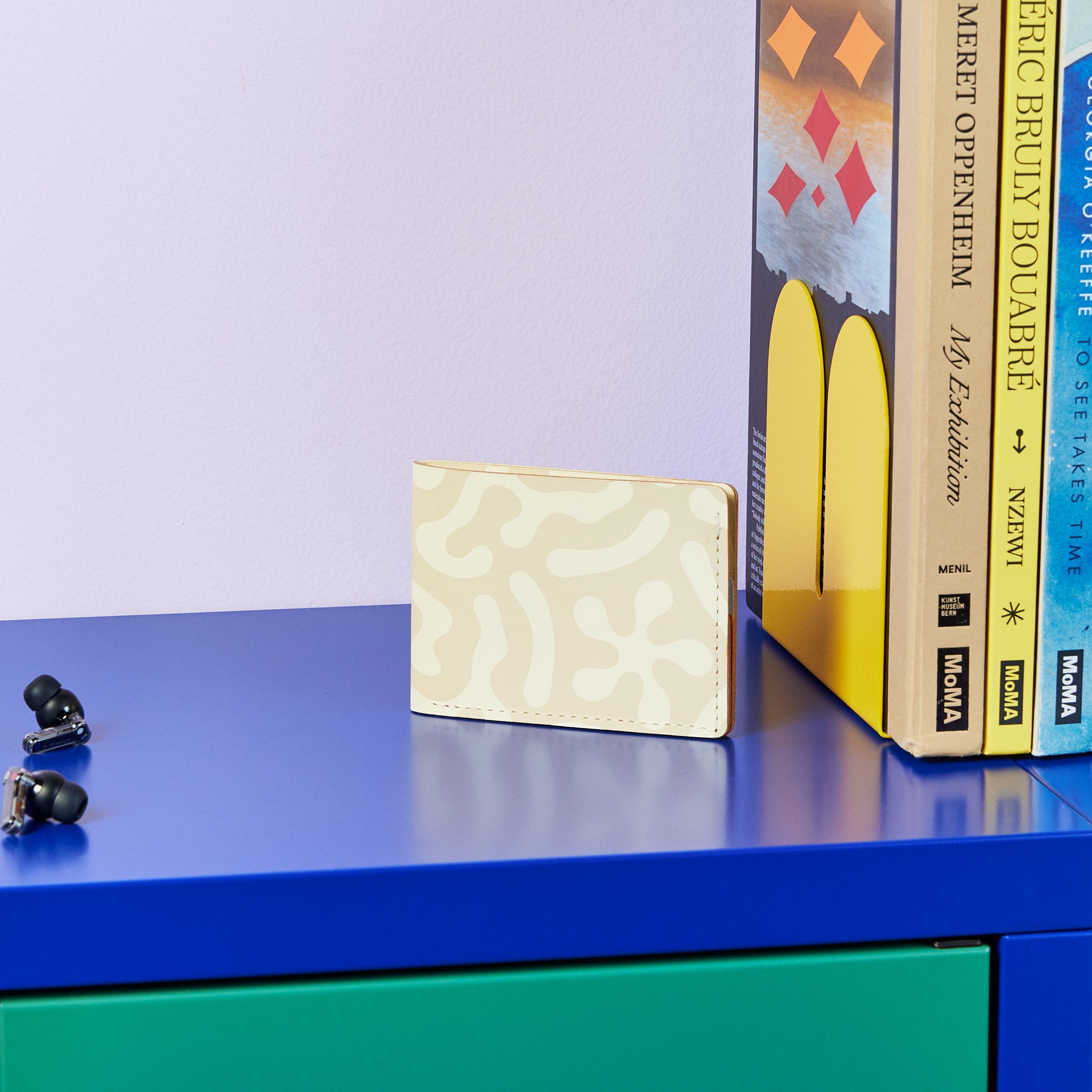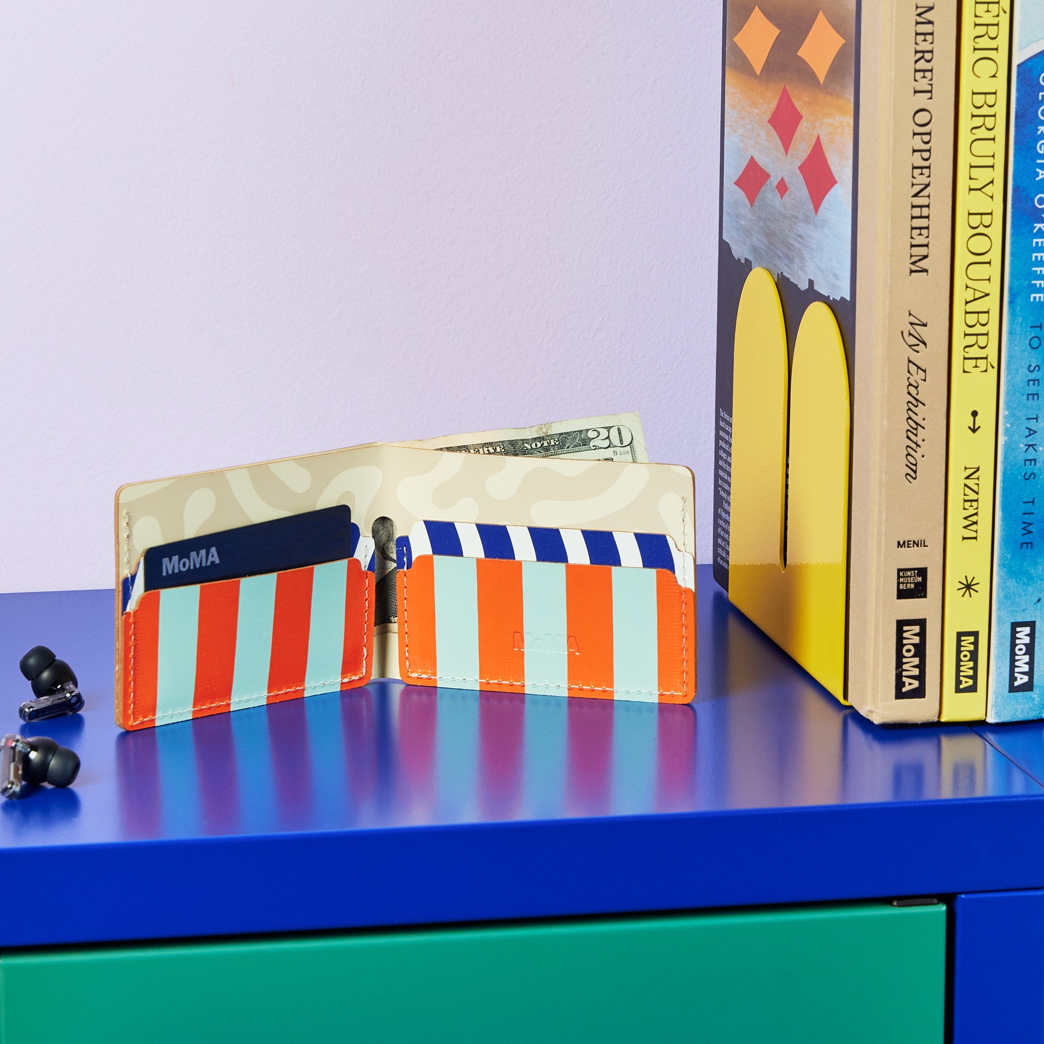 MoMA Exclusive: As if you needed another reason to get excited about vacation. Brooklyn-based line Dusen Dusen has collaborated with MoMA on an exclusive collection of recycled leather travel accessories. Responsibly crafted in Spain. the Recycled Leather Billfold Wallet has a main compartment to hold bills and slots to store cards. Dusen Dusen is inspired by the brain’s reaction to color. movement. and contrast–which explains the bold. graphic pattern printed on this piece. The Dusen Dusen Recycled Leather Billfold Wallet measures 3.25h x 4.41w x 0.35d when closed and 3.25h x 8.82w x 0.16d when open.