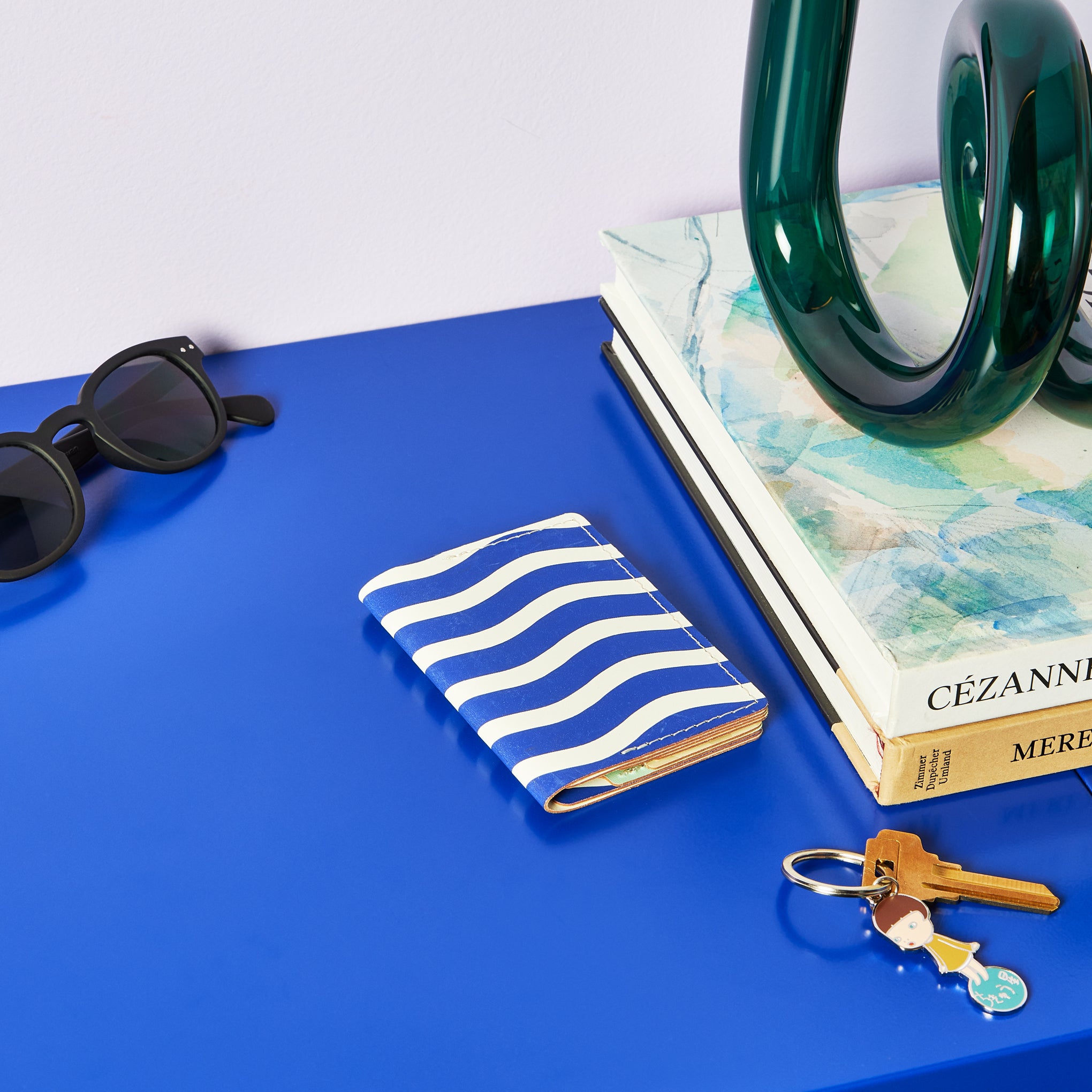 MoMA Exclusive: As if you needed another excuse to go on vacation. Brooklyn-based line Dusen Dusen has collaborated with MoMA on an exclusive collection of recycled leather travel accessories. Responsibly crafted in Spain. the Recycled Leather Double Card Holder stores all your essentials while being extra easy to find inside a getaway bag. Dusen Dusen is inspired by the brain’s reaction to color. movement. and contrast–which explains the bold. graphic pattern of this piece. The Dusen Dusen Recycled Leather Double Card Holder measures 4.12h x 3w x 0.35d when closed and 4.12h x 6.1w x 0.16d when open.