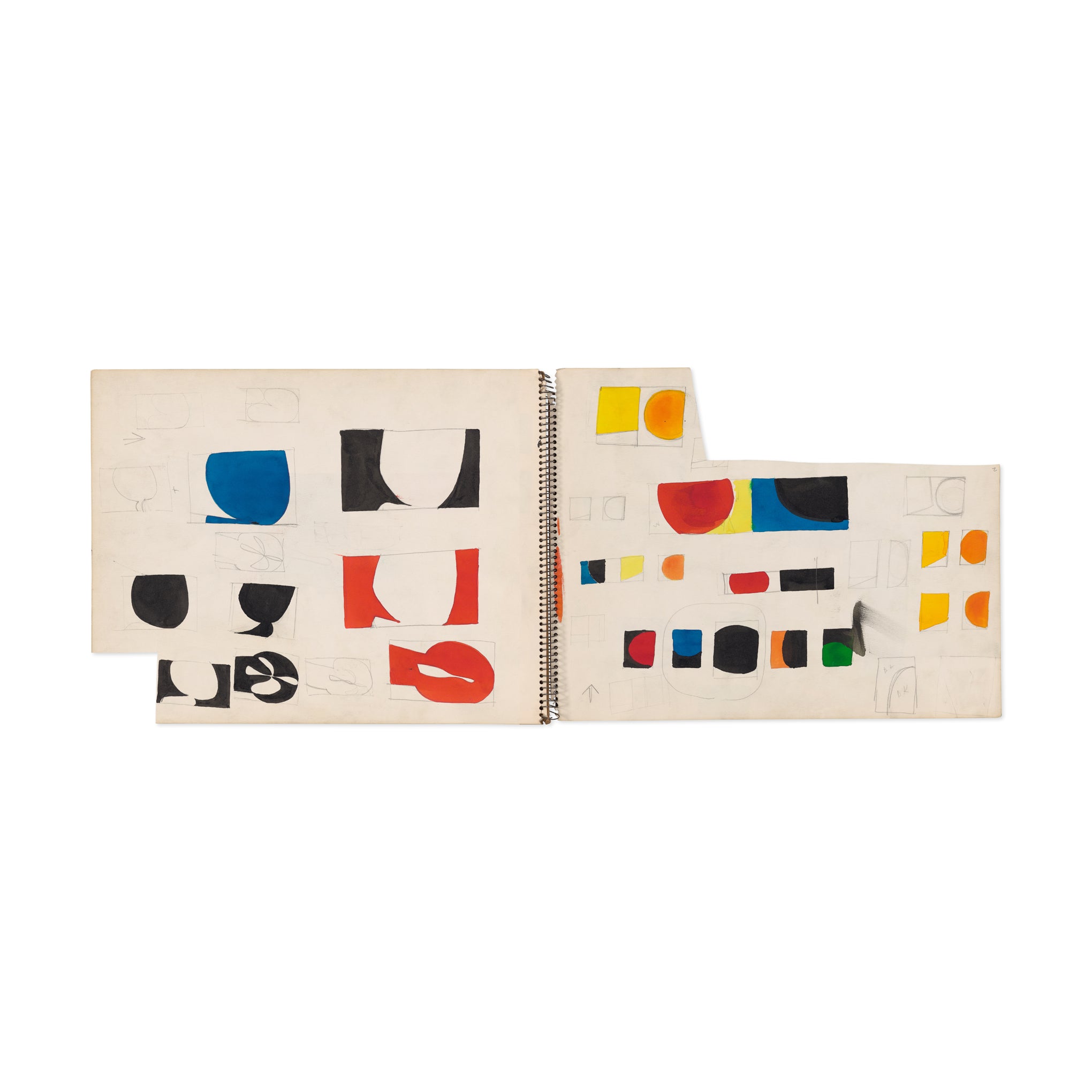 Over his renowned. six-decade career. Ellsworth Kelly experimented with the sparest of lines. forms. and uninterrupted planes of color. Yet while his works appear strikingly simple. they changed our very understanding of artistic form—and of composition. or making. itself. Kelly’s extraordinary sketchbooks. which remained largely private throughout the artist’s lifetime. reveal the intricacies of his unique process. Made between 1954 and 1956—when Kelly returned to New York after six formative years in France— represents the artist at his most iconic. Across thirty-six pages of a spiral-bound Strathmore sketchbook. he wielded pencil and felt-tip pen in a bold. saturated palette to explore forms that are at once geometric and idiosyncratic.