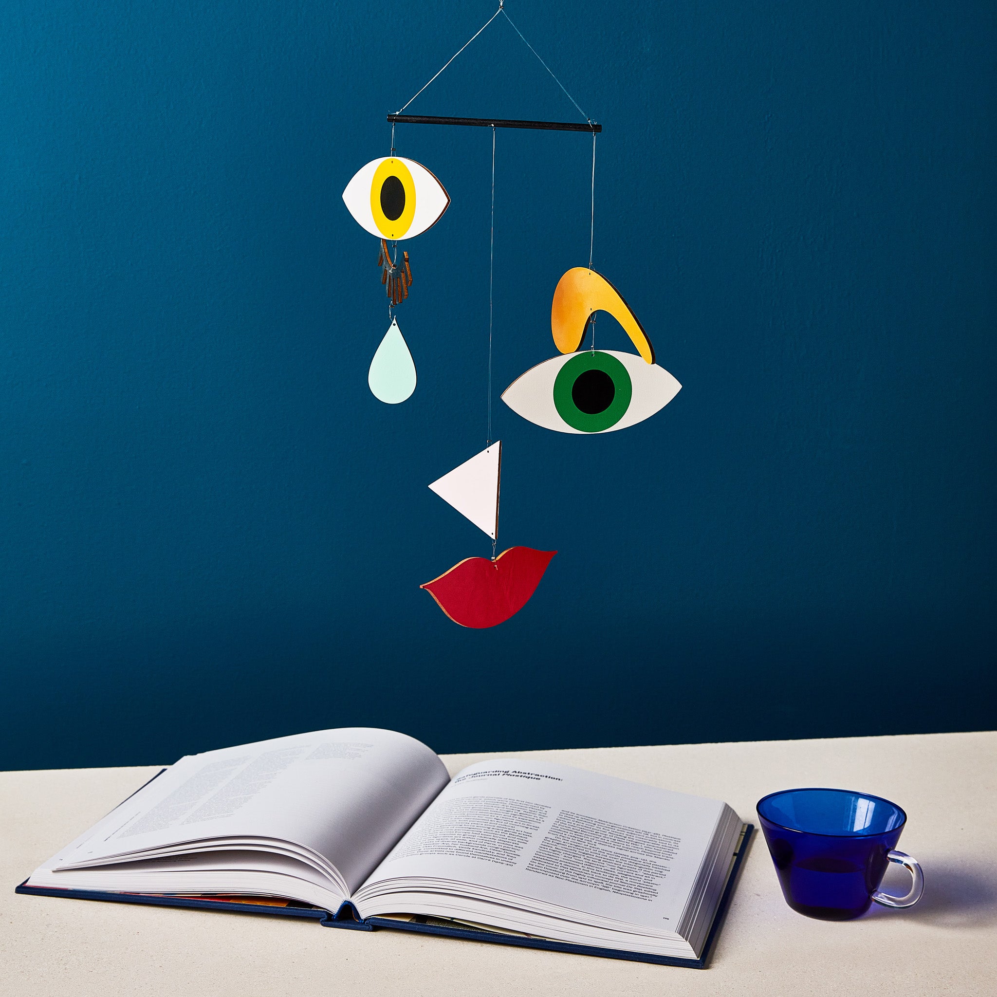 MoMA Exclusive: The Expression Mobile displays an ever-shifting array of winking eyes. smiling mouths. sharp noses. and dynamic eyebrows and lashes. Each colorful wooden piece in the Expression Mobile is arranged to capture human interest??from tiny babies to adults. Hang this well-made mobile over a baby or toddler’s crib. in a child’s room. or use it in your workspace to provide a point of meditative cheer where your eyes can rest between tasks.