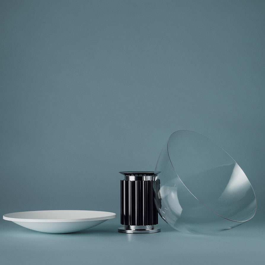Inspired by the illusion of an oversized. upside-down hanging light. Achille and Pier Giacomo Castiglioni created this table lamp to play with our preconceived perspectives. Their 1962 design features a concave. spun-aluminum reflector with a matte white finish. Perfect for a credenza or large end table. its light can be adjusted simply by repositioning the blown glass diffuser. Its handsome base is made of anodized. matte black aluminum. Made in Italy. Both the designers and the manufacturer. Flos. are represented in MoMA’s collection. Designed by Achille Castiglioni for FLOS.