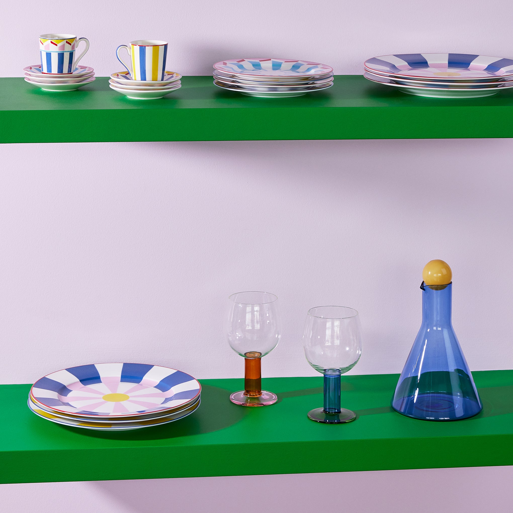 MoMA Exclusive: Create a dazzling tablescape. Designed in Italy by a heritage brand founded in 1876. these Geocromia porcelain dinnerware pieces will delight your guests and bring joy to everyday meals. The designs are characterized by a mix of colors. stripes and geometric shapes?? a visual symphony of vibrant and delicate shades. which are intertwined in a harmonious play of lines and figures.?