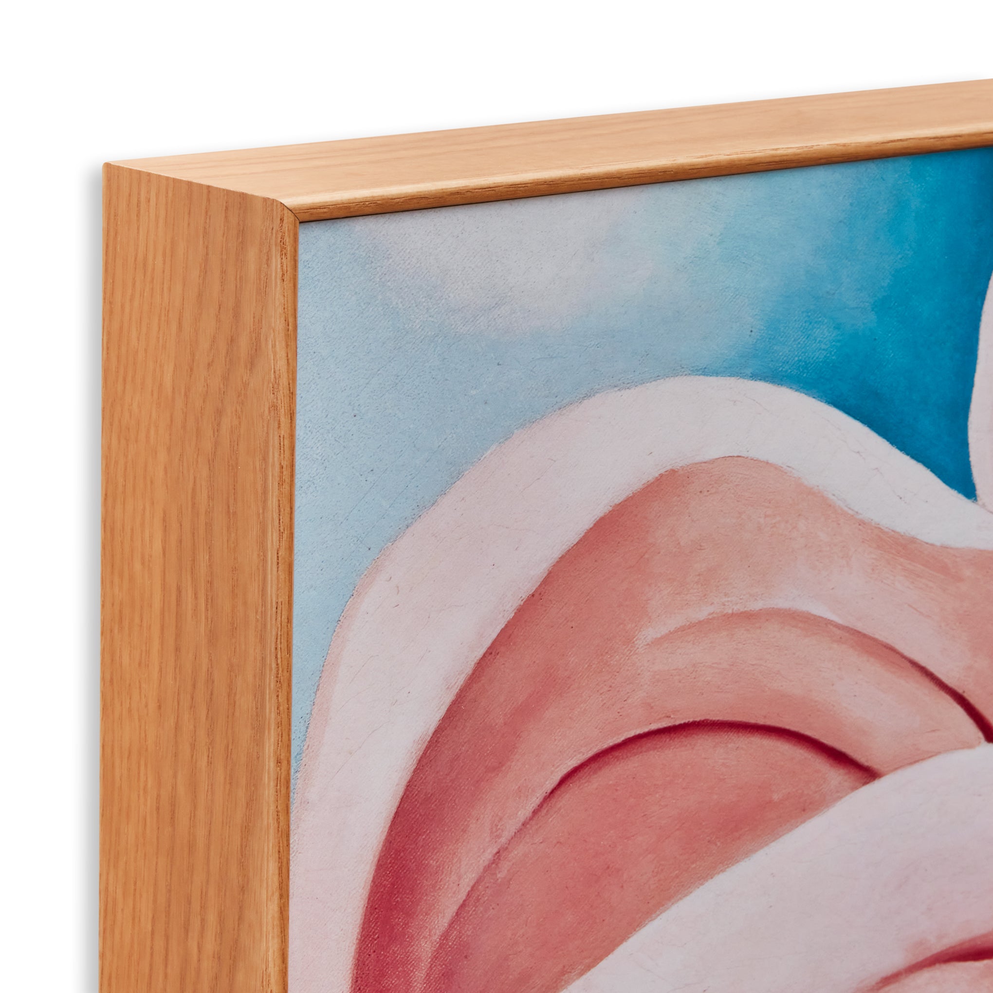 This print features a reproduction of Hibiscus with Plumeria (1939) by Georgia O’Keeffe. an artist with work in MoMA’s collection. It’s mounted and laminated for protection from dust and UV rays. and floated in a hand-stained. natural. 2-deep frame made from ash wood grown in sustainable forests. Hanging kit included. The Georgia O’Keeffe Hibiscus Framed Print measure 26h x 19w x 2d.