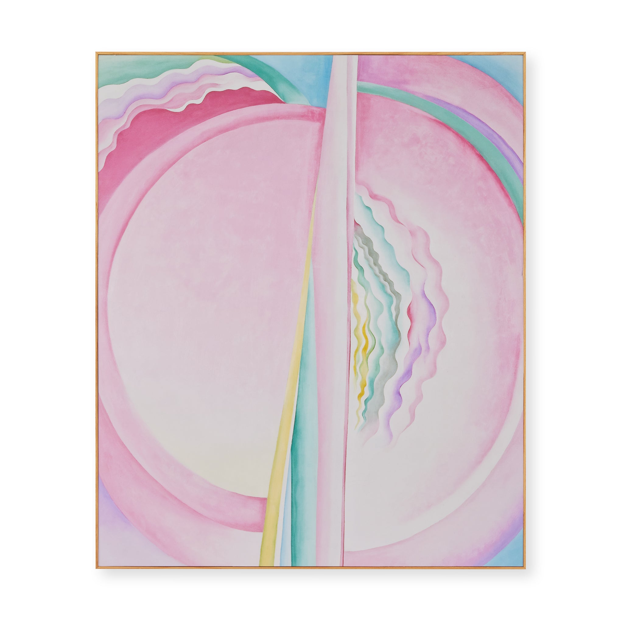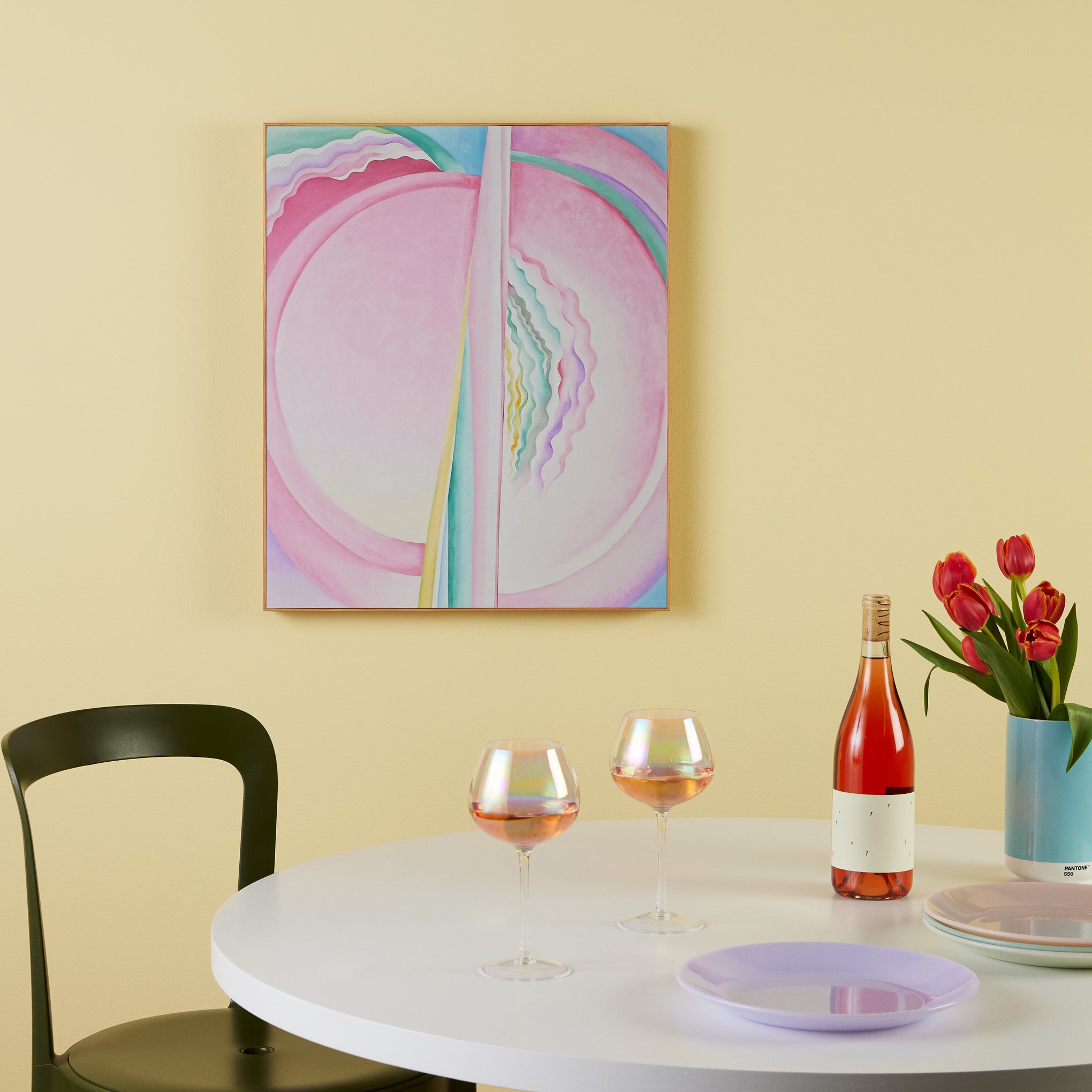 This print features a reproduction of Pink Abstraction (1929) by Georgia O’Keeffe. an artist with work in MoMA’s collection. It has a natural ash wood frame and measures 24h x 20w.