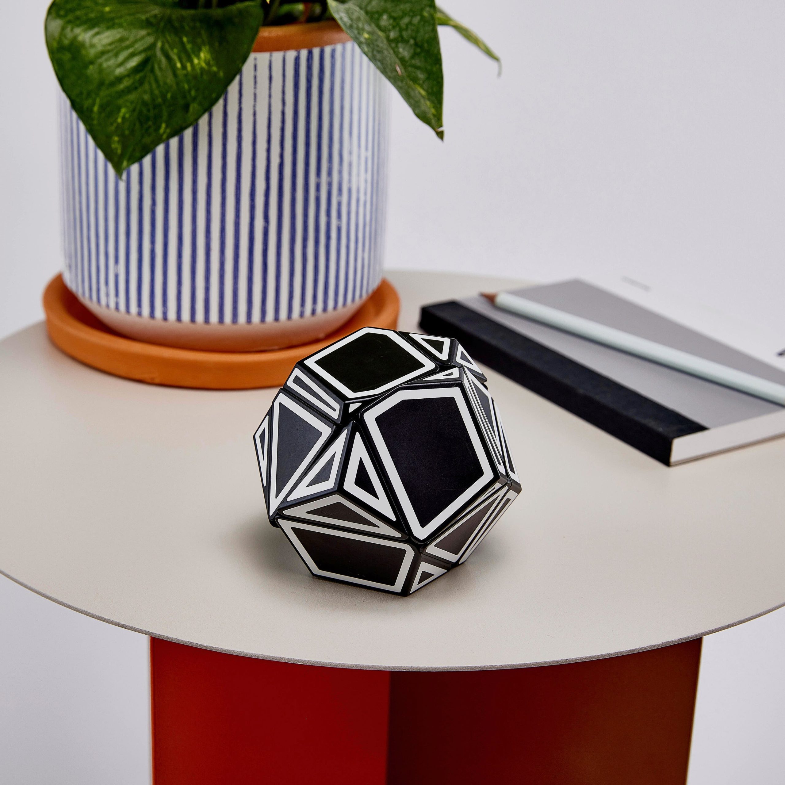 The twisty Ghost Xtreme Brainteaser Toy starts out as a 12-sided dodecahedron. but quickly morphs into a jumble of interesting geometric shapes once you start interacting with it. What makes the black-and-white Ghost Xtreme puzzle extra-challenging is the absence of multi colors to act as guides. and the way the sides move on an irregular axis. For ages 14+.The Ghost Xtreme Brainteaser Toy is made of plastic and measures 4h x 5w x 4d.