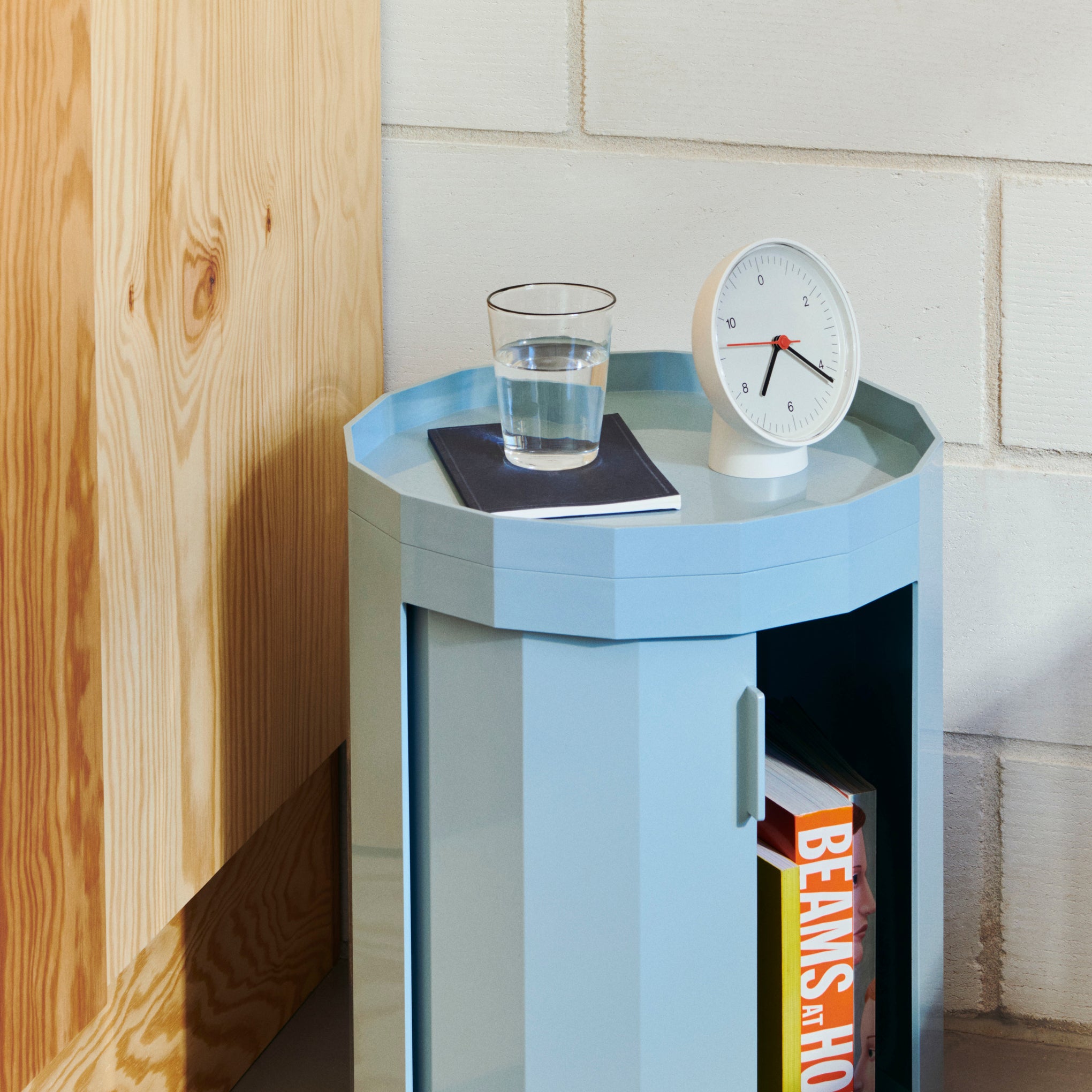 A tabletop version of designer Jasper Morrison’s iconic wall clock. this design is made to live on your bedside table or desk. As with the original. Morrison leverages industrial design to create a beautiful and functional everyday object. (The clock face can be removed from the base and hung on the wall.) Requires one AA battery (not included). Designed for Danish brand HAY. the Jasper Morrison Table Clock is made from PS. Acrylic. Aluminium and measures 6h x 5w x 3.25d. Both Jasper Morrison and the manufacturer HAY have work in MoMA’s collection.