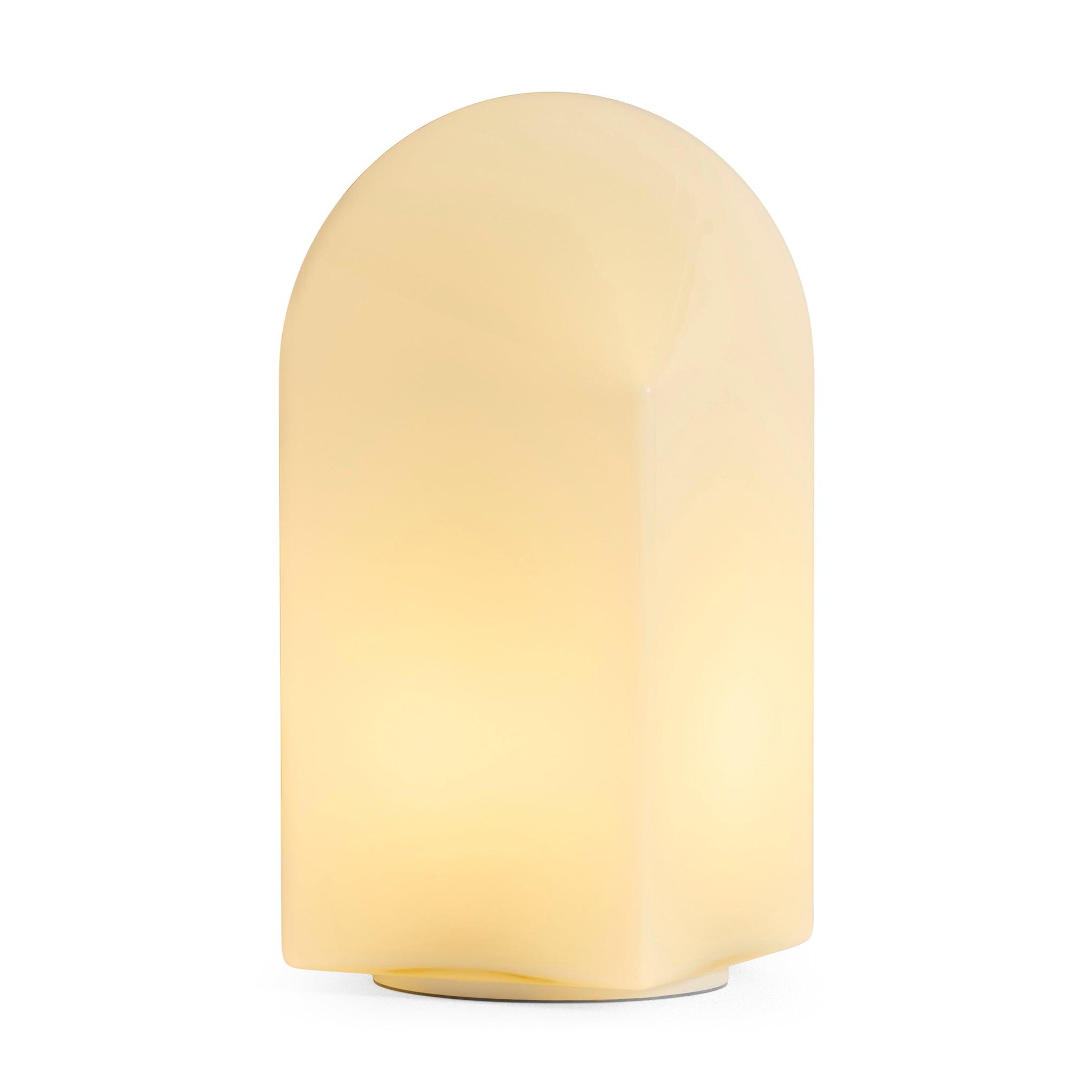 Designed by Viola Heyn-Johnsen and Jonas Trampedach. the Parade Portable Lamp from HAY features a distinctive geometric shape that changes the lamp’s expression whichever angle it’s turned. Crafted from hand-blown glass. it features a square base and arched top with the light source and battery concealed inside. creating a compact. independent unit that is easy to move around. Distinguished by HAY’s sophisticated muted color palette. the Parade Portable Lamp is beautiful on its own or grouped together for a statement-making. multi-color display. The lamp can be moved to various rooms around the house or taken outside to create an ambient glow on your balcony and at your outdoor gatherings.