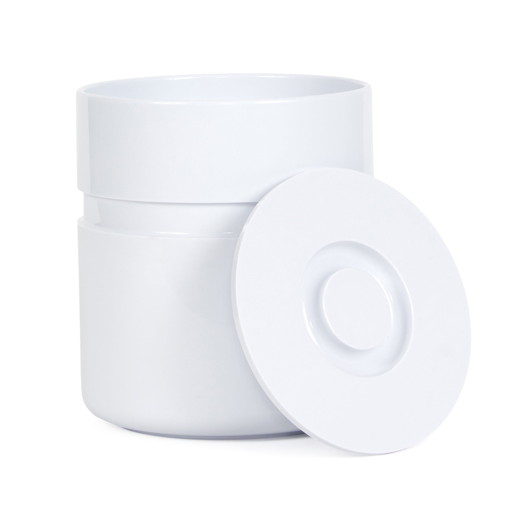 Conceived in 1972 by Sergio Asti. a designer represented in MoMA’s collection. the Asti Ice Bucket is a timelessly modern object. Distinguished by a cylindrical. pill-box-like design. the Asti brings minimalist chic to your gatherings. Alan Heller tasked Sergio Asti to create a minimalist. highly functional ice bucket that could become a logical extension of the iconic Max dinnerware collection. Its enduring popularity speaks to the timeless appeal of its design. embodying a balance of form and function. Sought after by mid-century design collectors. this lidded ice bucket is made from post-consumer recycled ABS plastic. with a white plastic insert. The Asti’s 100oz capacity provides plenty of room for ice and a bottle of your favorite white wine. Champagne. Prosecco or spirit—or it can simply be used to serve ice for your guests’ mixed drinks. It’s made by Heller. a manufacturer with work in MoMA’s collection. The Asti Ice Bucket measures 8h x 7diam.