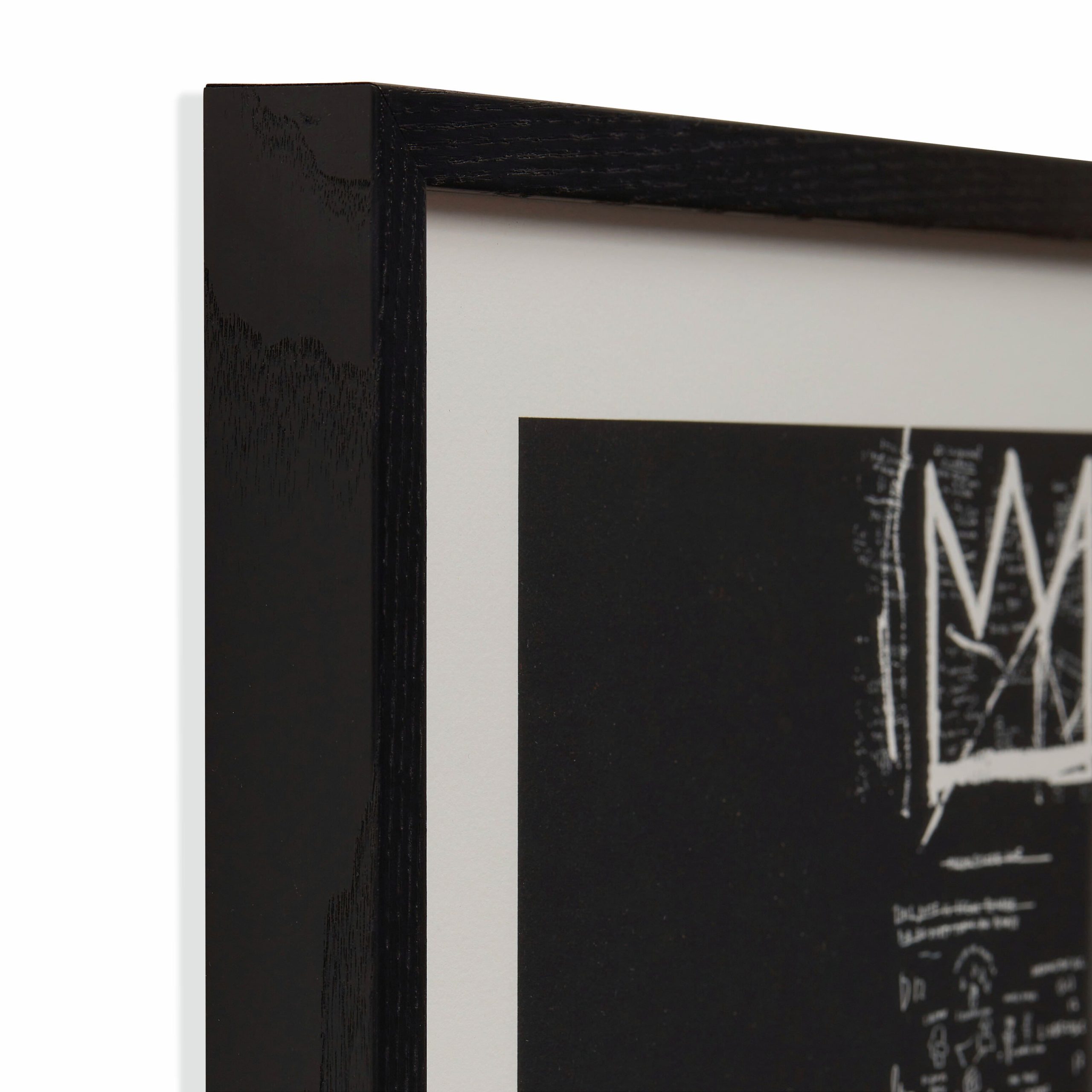This print features a reproduction of Tuxedo (1982?C83) by Jean-Michel Basquiat. an artist with work in MoMA’s collection. It’s framed in sustainably sourced black ash with a gallery acrylic finish. Strung for hanging.