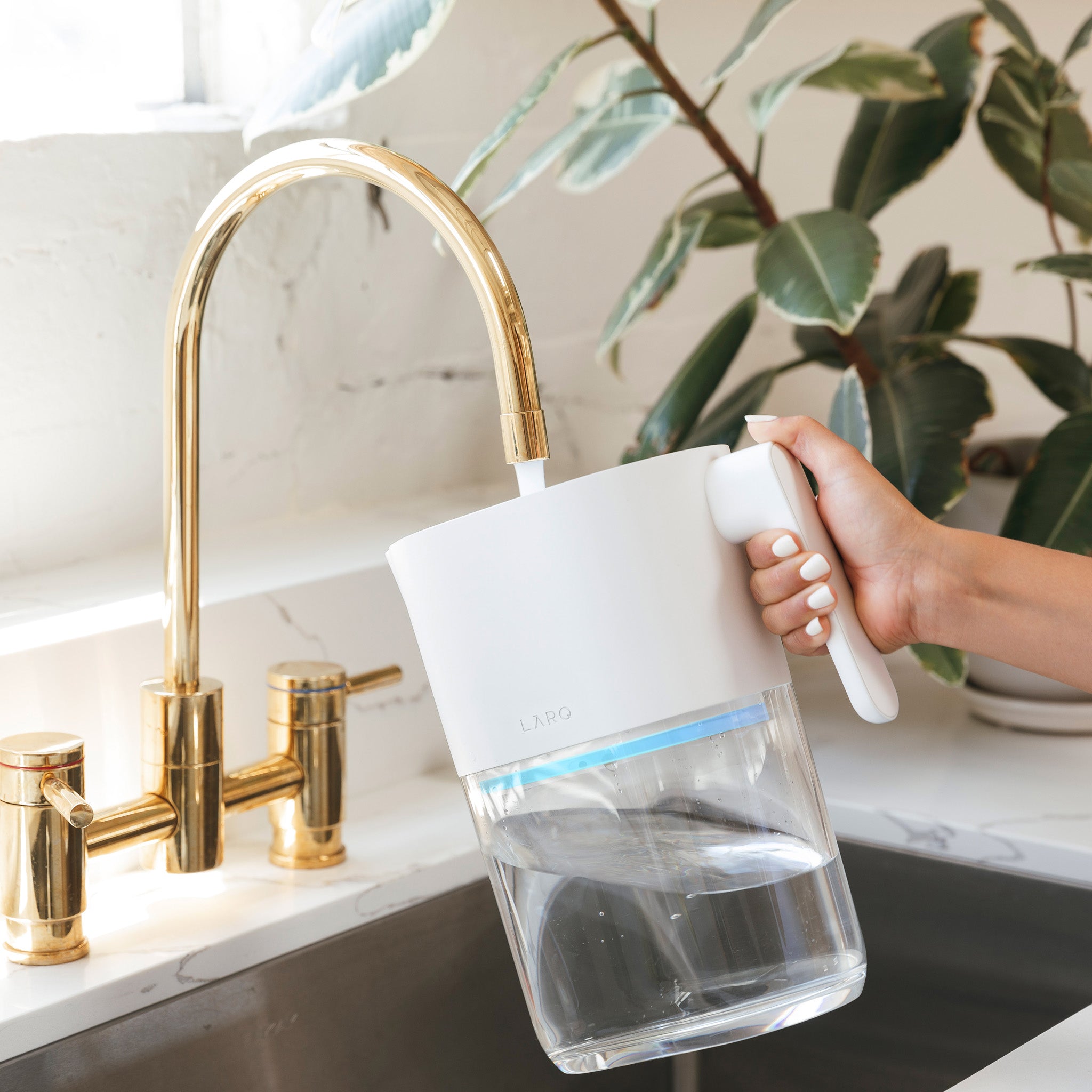 Fresh and clean tasting water. glass after glass. With its two-step filtration process. the LARQ UV Filtration Pitcher removes chlorine. mercury. cadmium. copper. zinc. VOCs and more using a carbon filter. Then. its PureVis UV technology eliminates any bacteria on a molecular level.