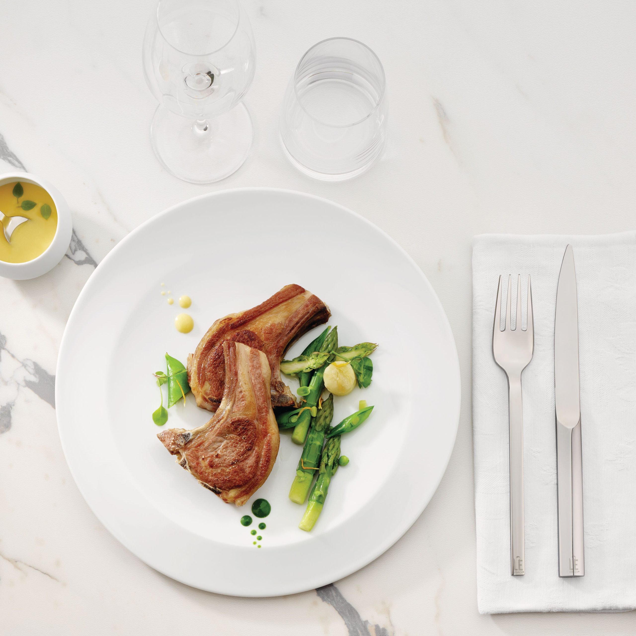 From a collaboration between Phillipe Starck and French heritage tableware brand Degrenne comes this striking 30 piece L’E Flatware Set. (Setting for six with each set containing five pieces) Each piece is made of 18/10 stainless steel and has a balanced weight and an elegant silhouette. The forks and the spoons have a concave design. making it easier to scoop up sauces and also quinoa and other grains. The knife has an oval handle as well as a flat face. allowing it to rest on its edge (it can also be placed flat). This L’E Flatware by Philippe Starck x Degrenne set includes a salad fork. a dinner fork. a knife. a soup spoon and a teaspoon and comes in eco-friendly packaging. Philippe Starck has over 40 designs in MoMA’s collection. Pieces measure: Knife:9l. Dinner Fork: 8l. Dessert Fork: 7.25l. Dinner Spoon: 7.25l. Teaspoon:5.25l. Dishwasher-safe.